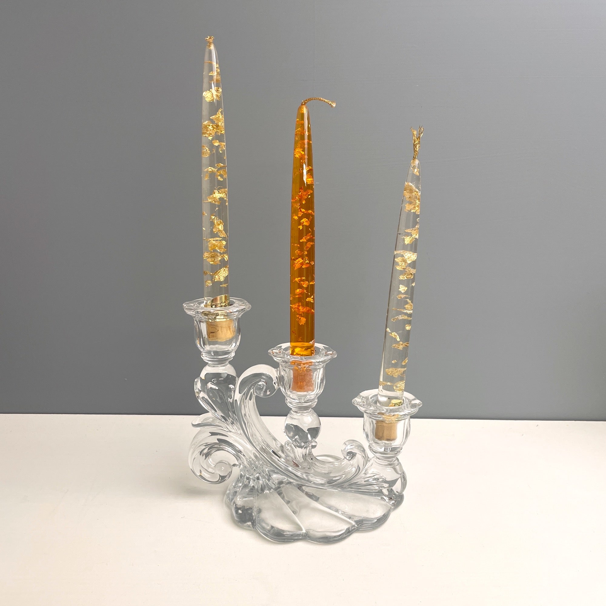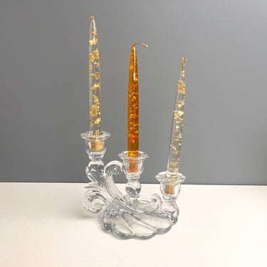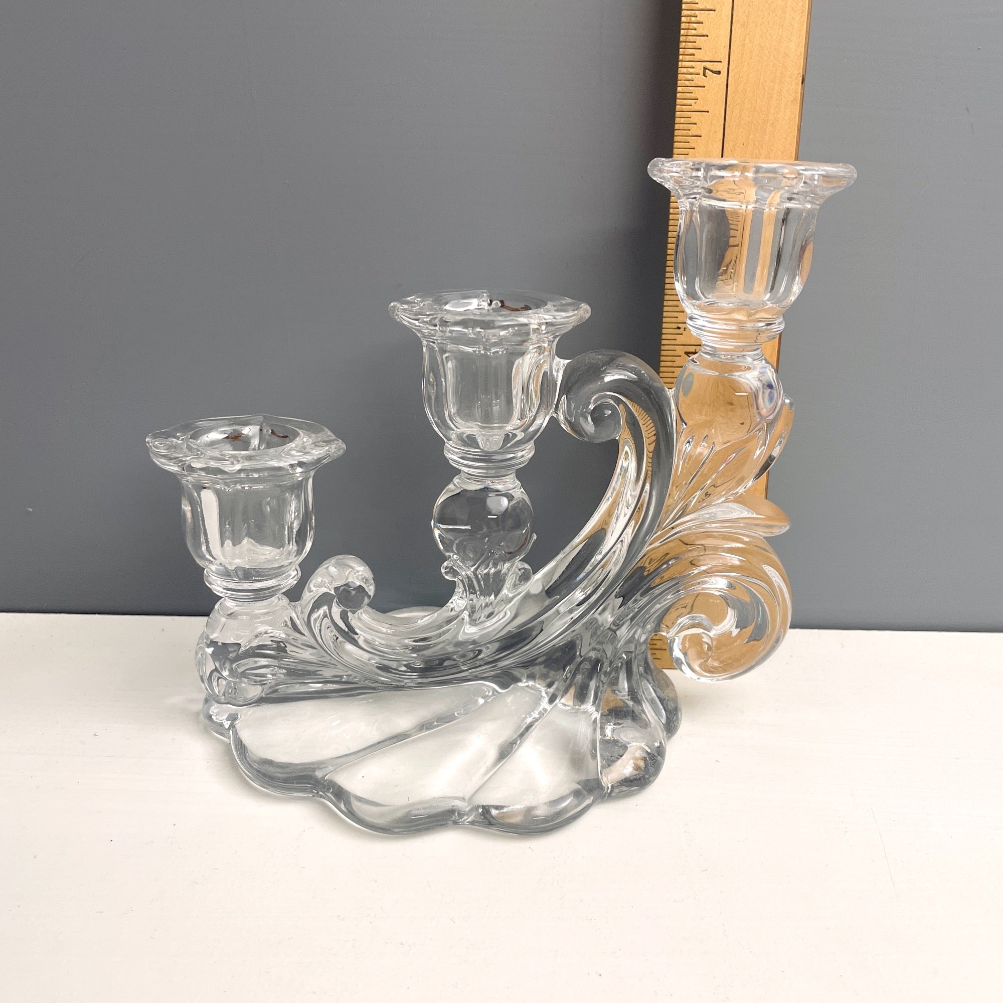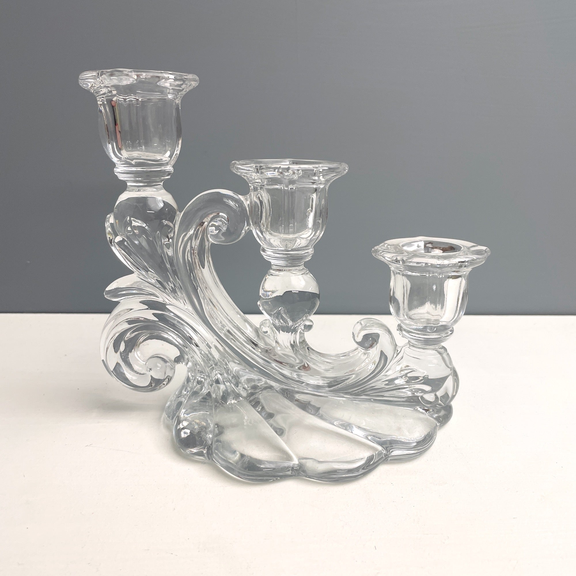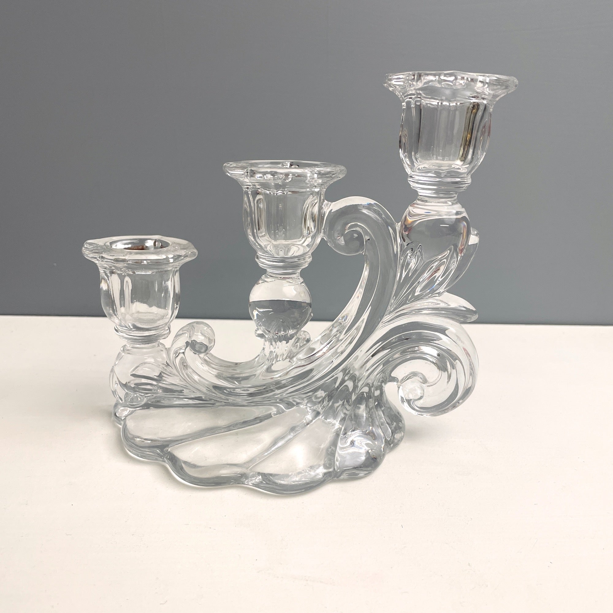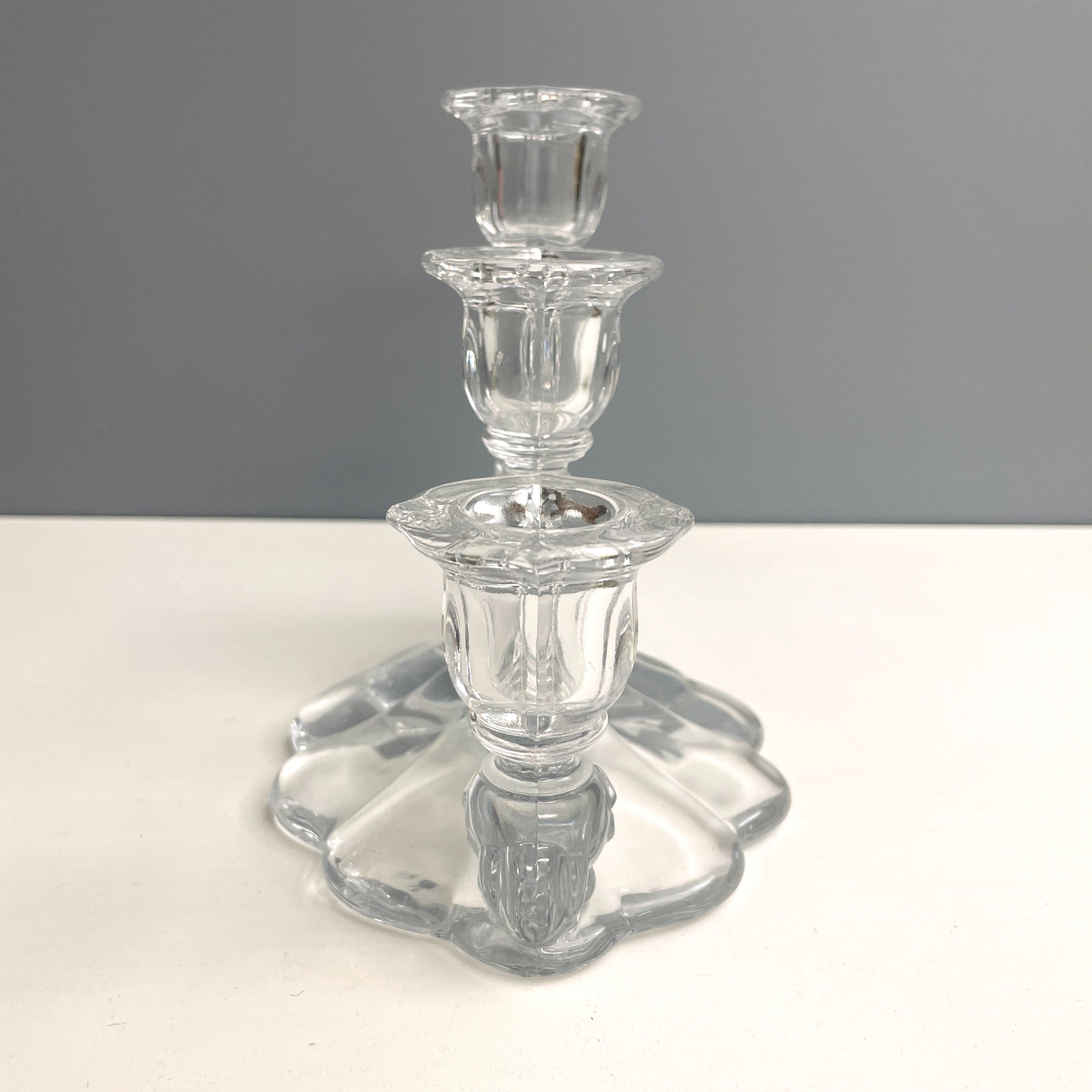 Cambridge Glass Caprice triple candlestick - 1940s vintage