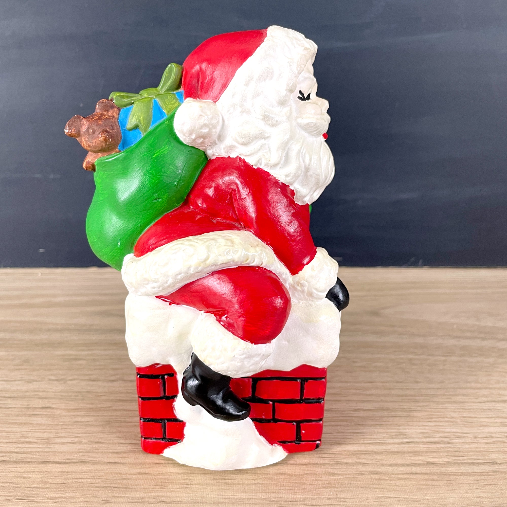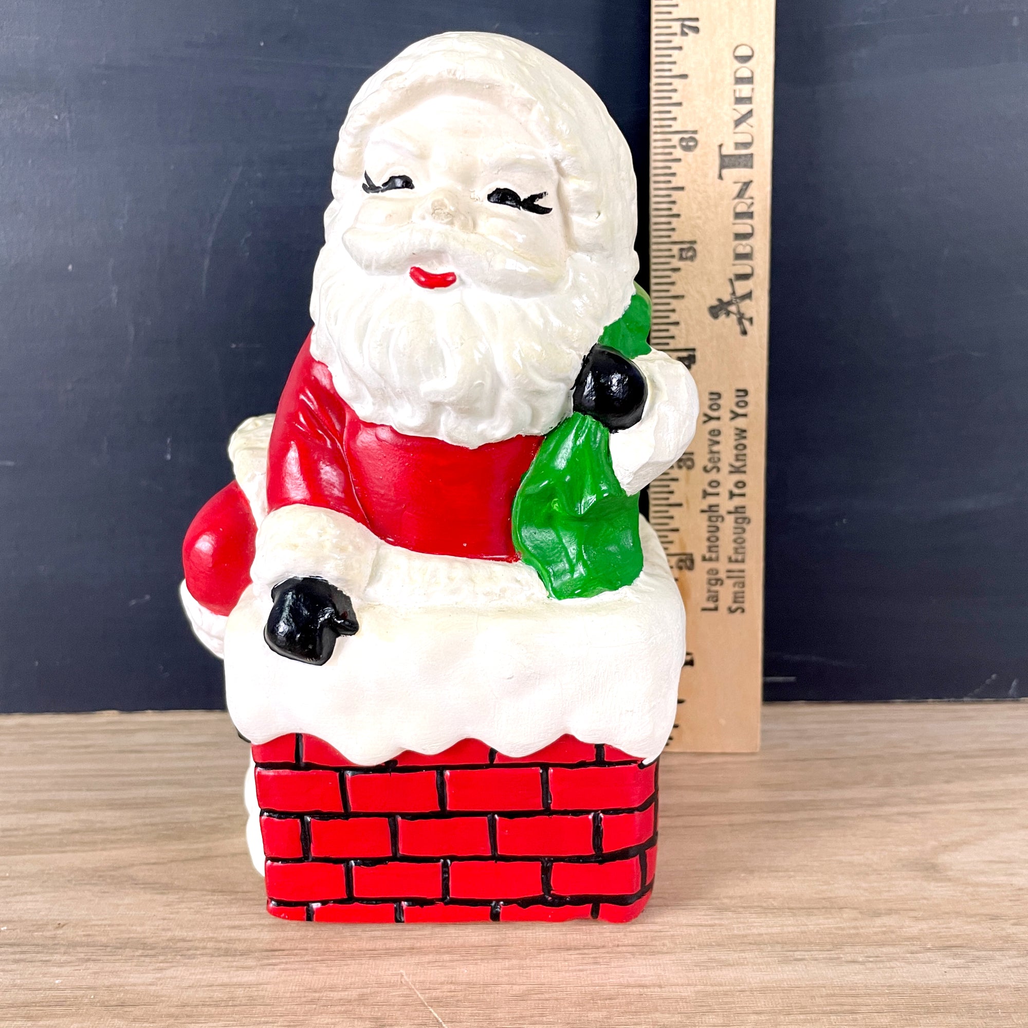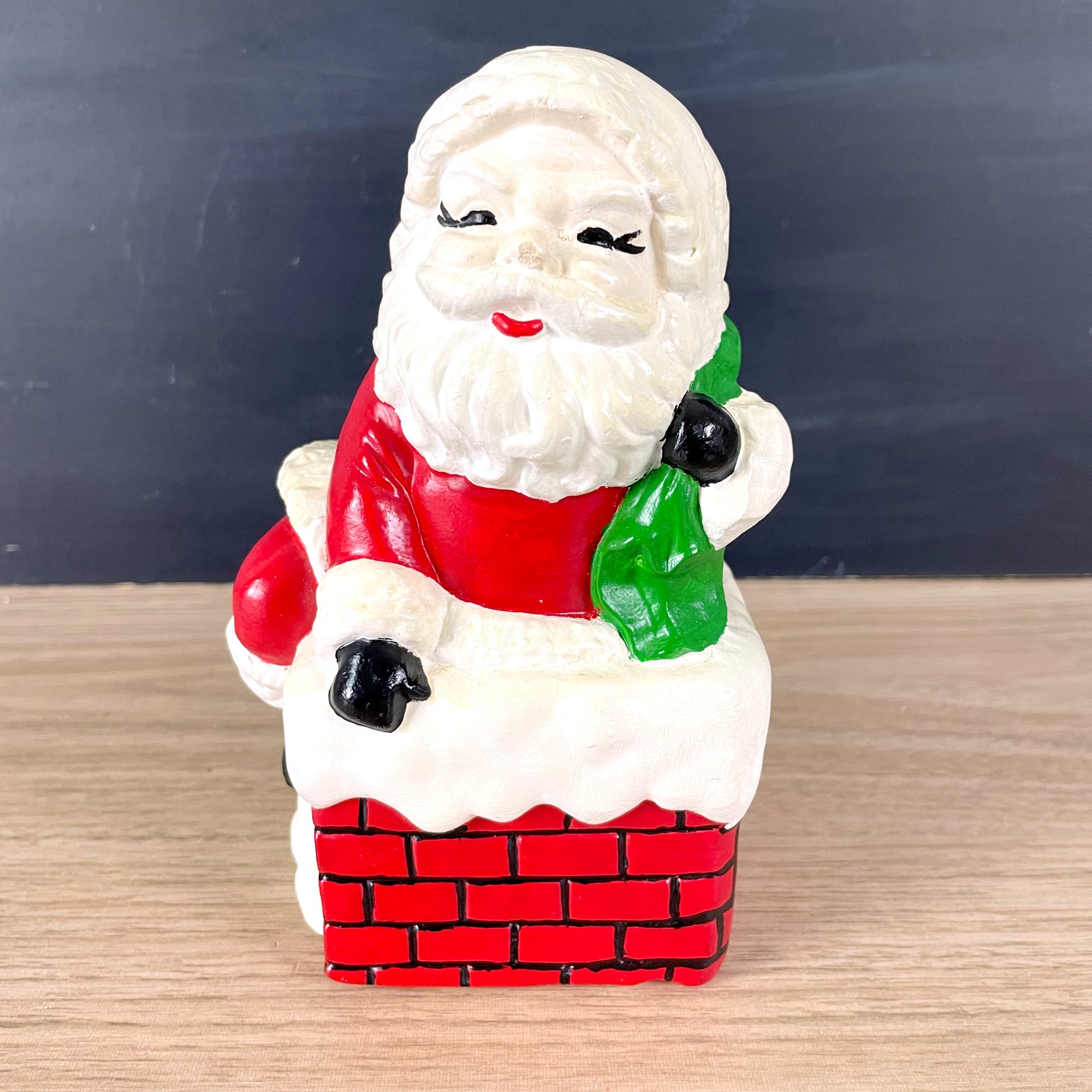 Vintage 1960s cast plaster, cold painted Santa climbing into a chimney with his bag of toys. Well cared for, well stored over the years so there's only minor wear. Get's your retro Christmas started right. Marked "2335" on the bottom of his bag.