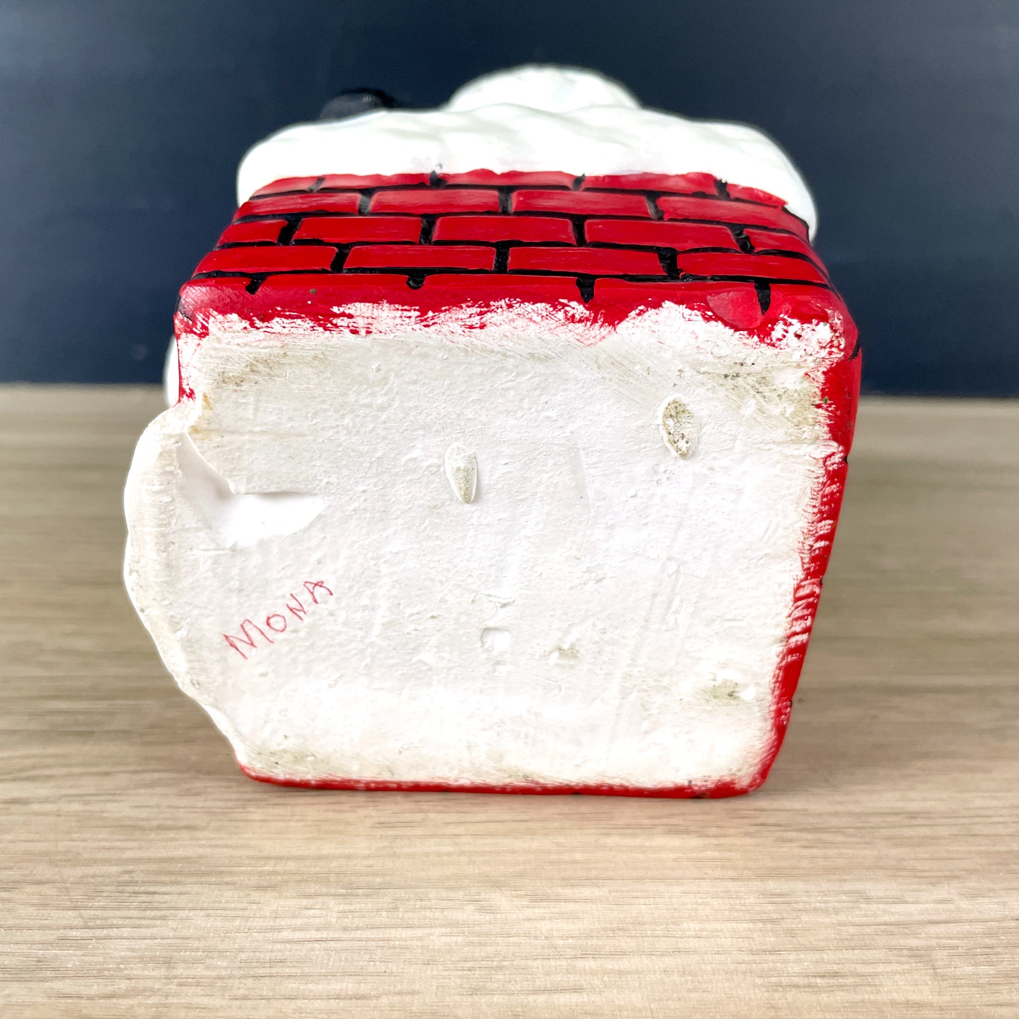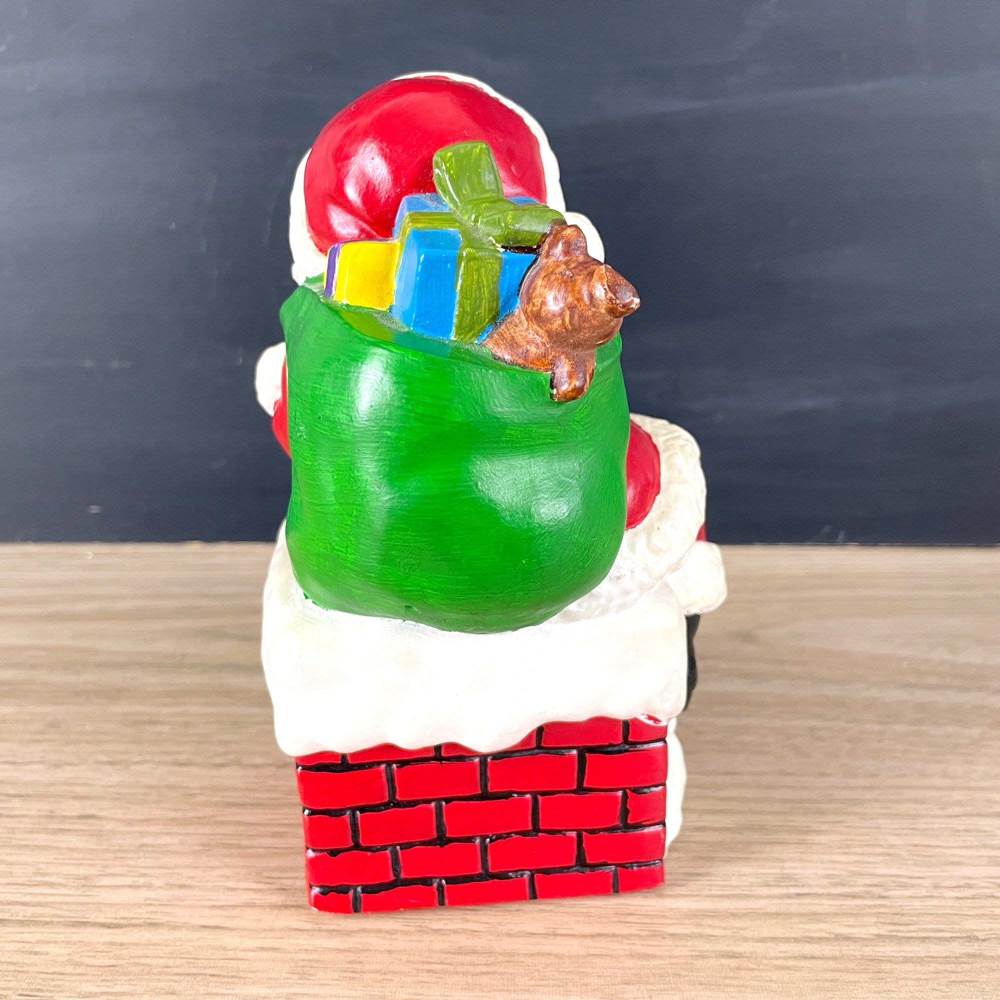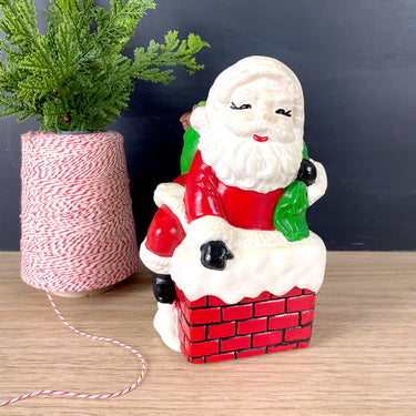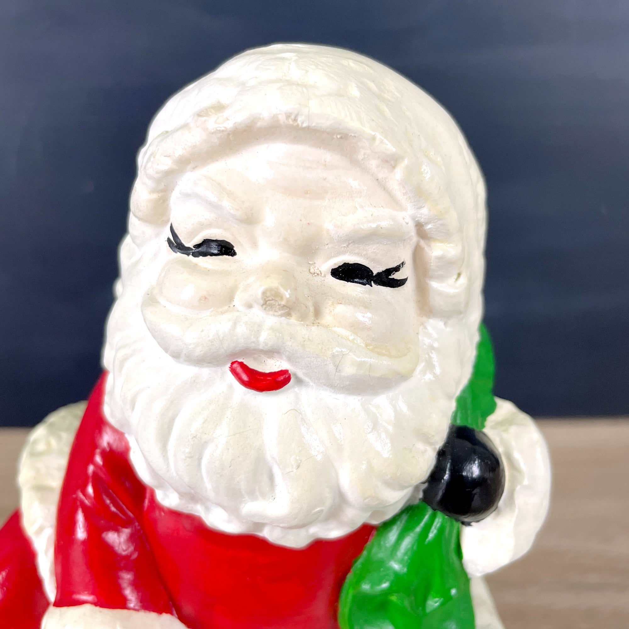 Vintage 1960s cast plaster, cold painted Santa climbing into a chimney with his bag of toys. Well cared for, well stored over the years so there's only minor wear. Get's your retro Christmas started right. Marked "2335" on the bottom of his bag.
