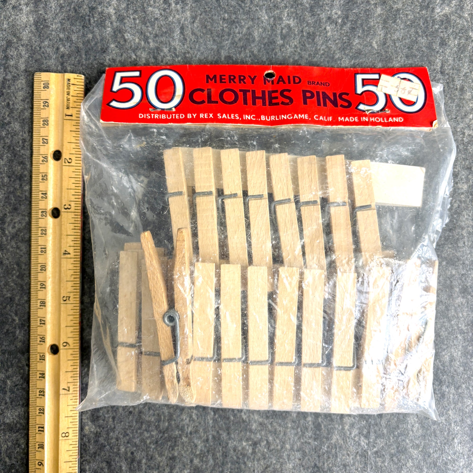 45 vintage 2 3/4" spring clothes pins - original package - Merry Maid