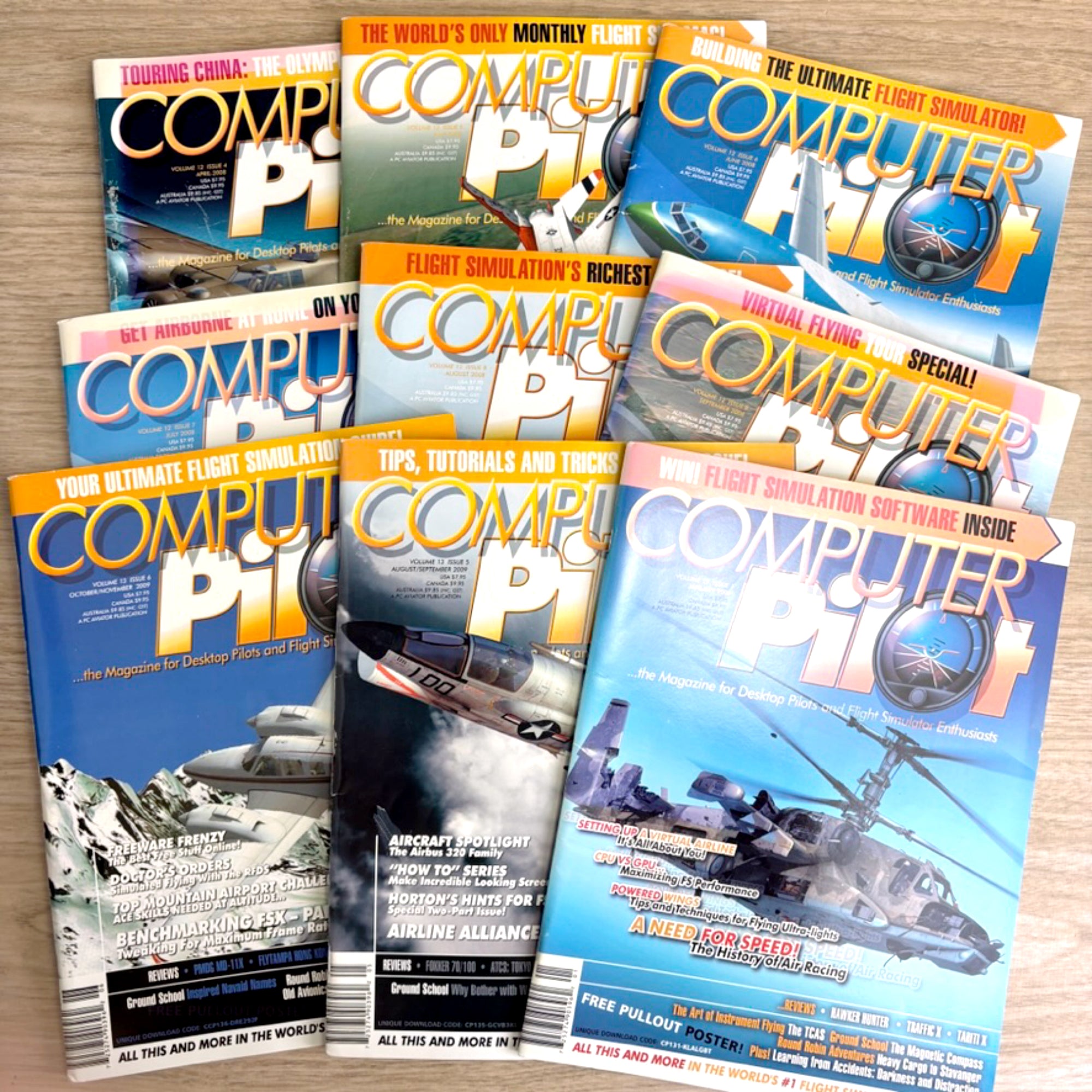 Computer Pilot magazine. The Magazine for Desktop Pilots and Flight Simulator Enthusiasts. Published by PC Aviator - The Flight Simulation Company. Issues include: