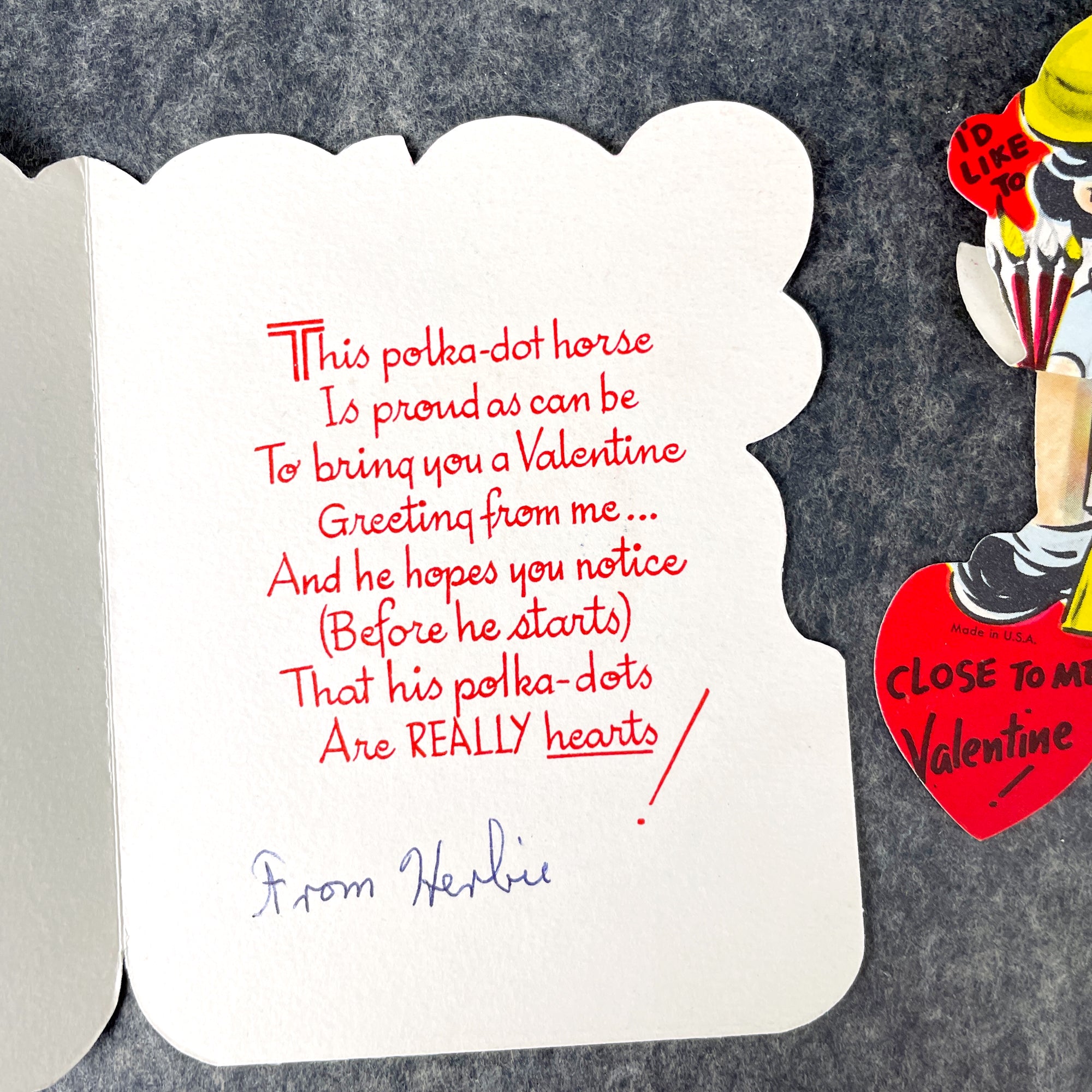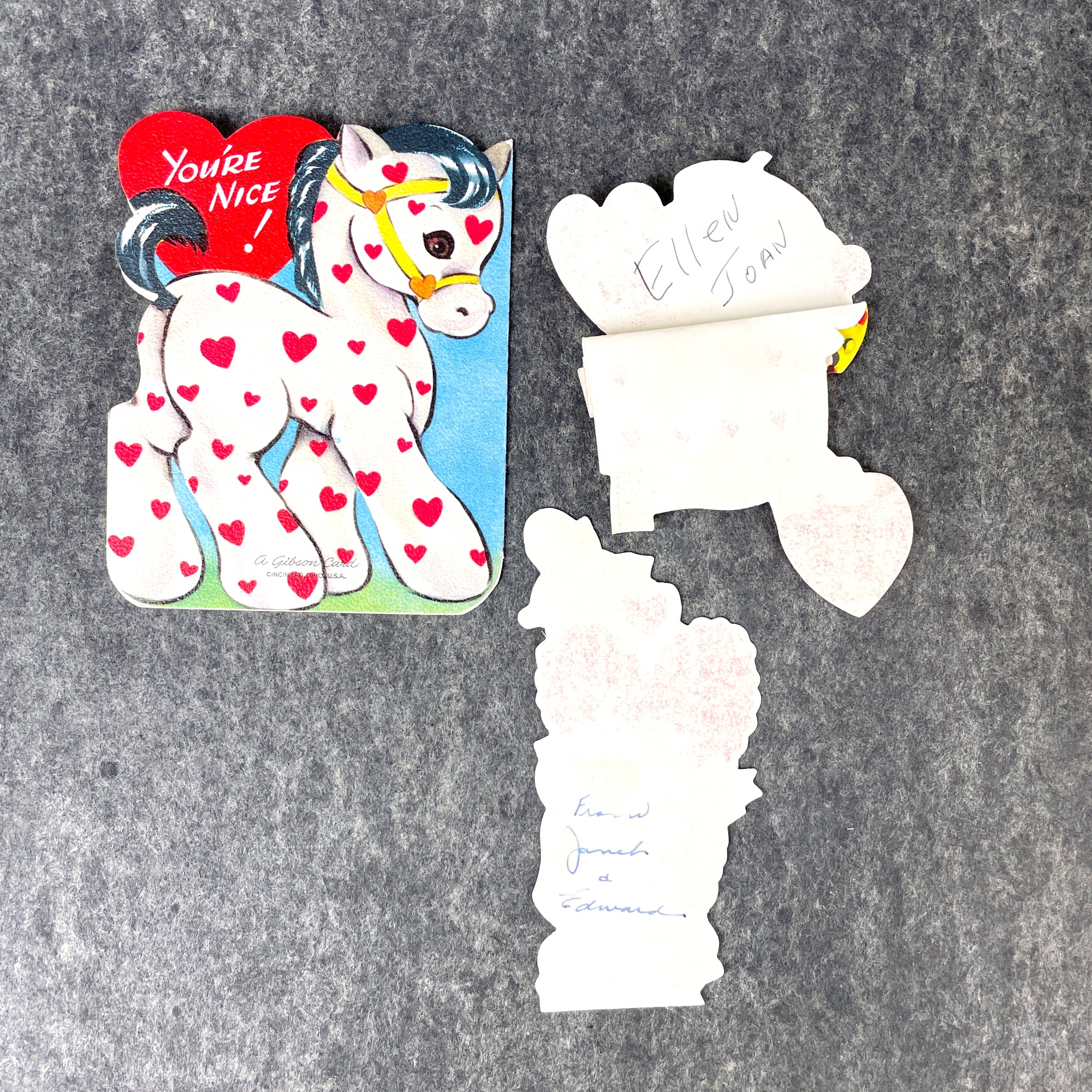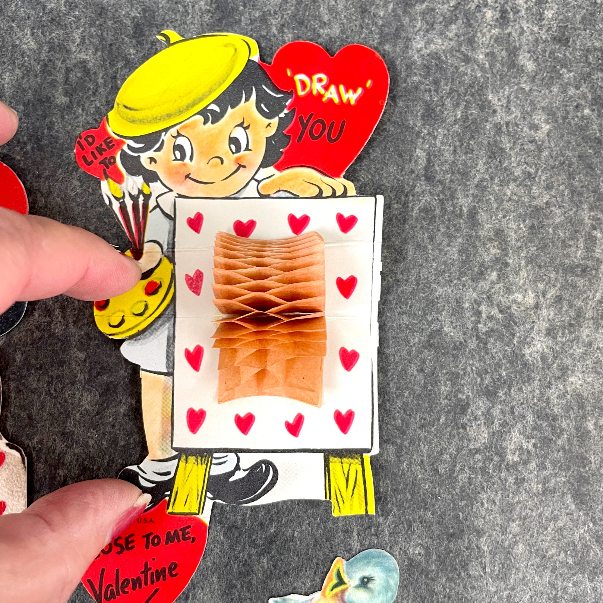 3 charming vintage children's valentines from the 1950s and 1960s for collecting and art projects. One is a notecard, one opens to reveal a honeycomb. All are used, with handwritten messages. No envelopes.