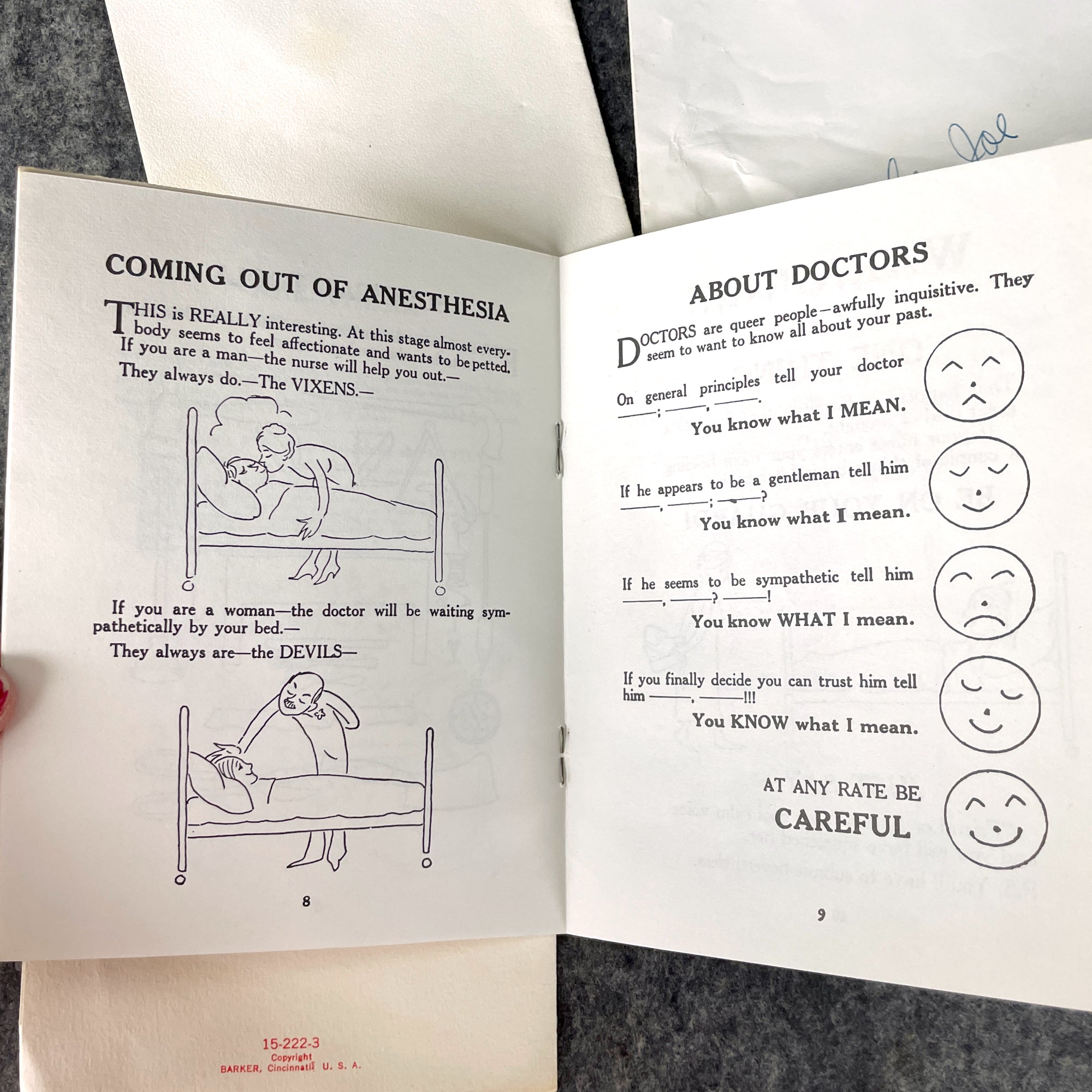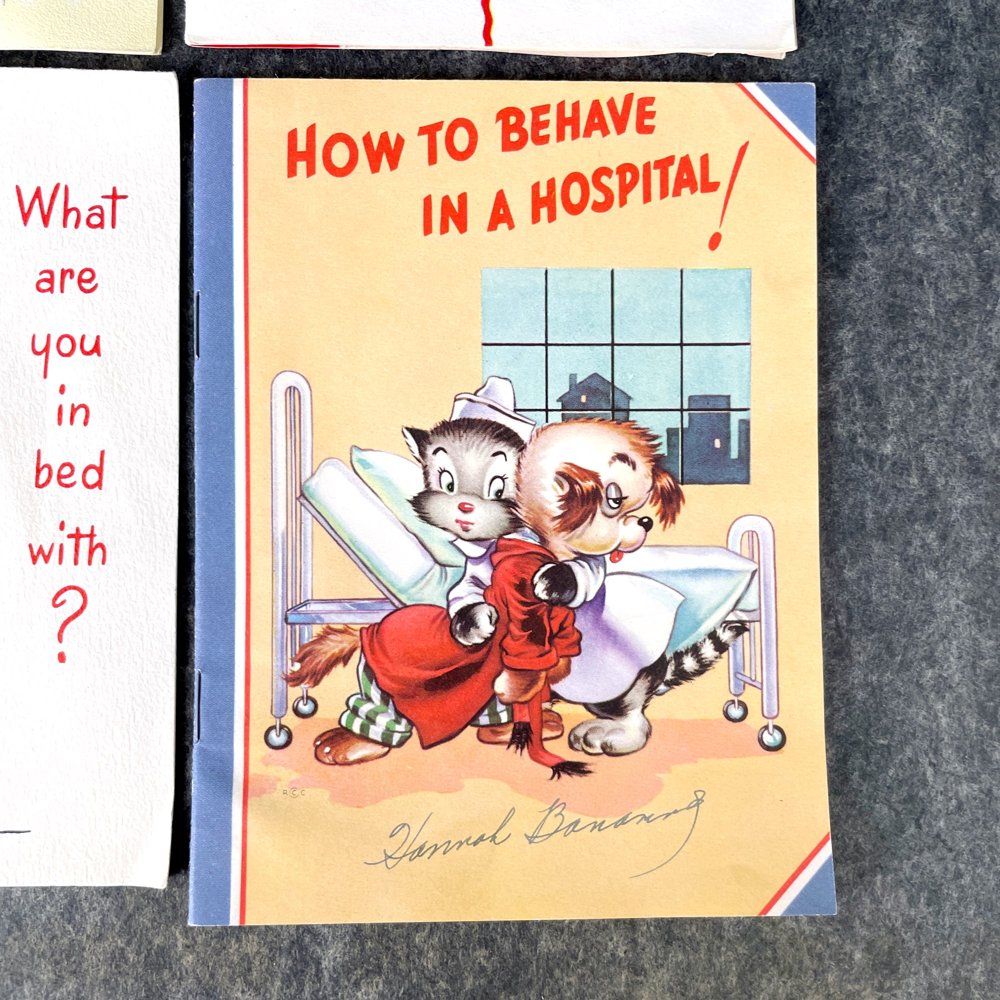 The 'How to Behave in a Hospital' booklet has adorable graphics on the cover, but is somewhat suggestive, some would say creepy, inside.