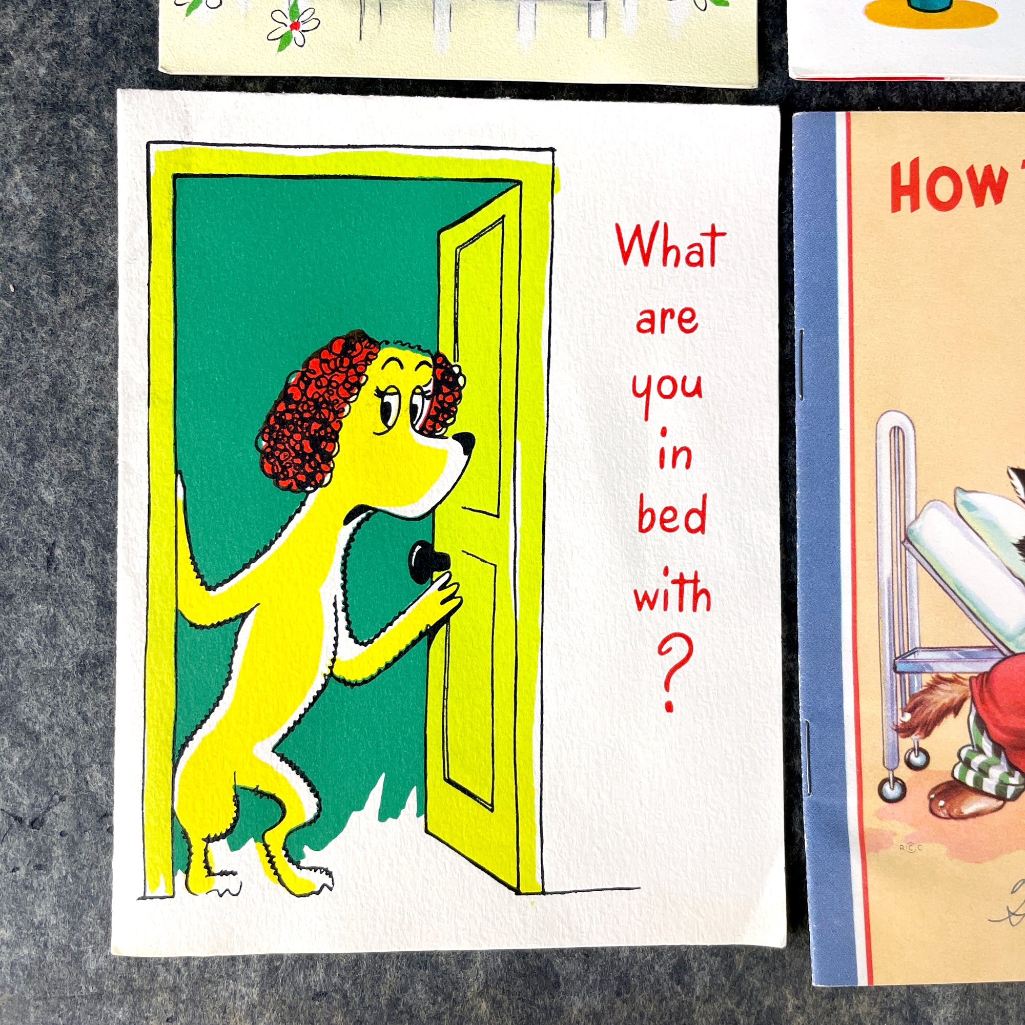 4 vintage 1950s-1960s used Get Well greeting cards - mid century kitsch
