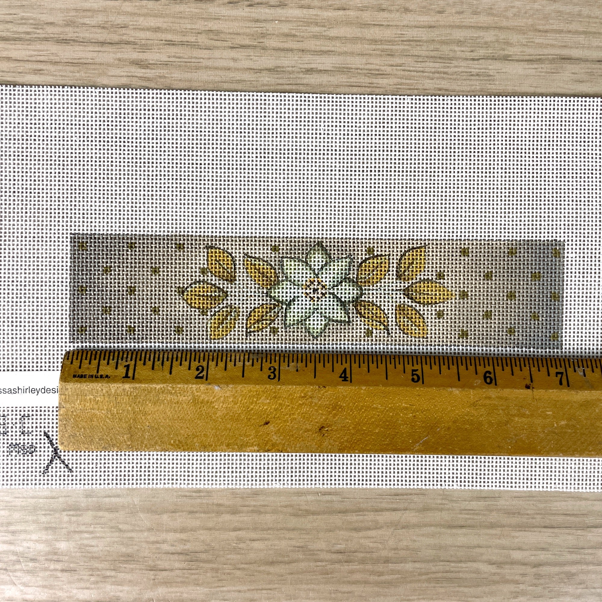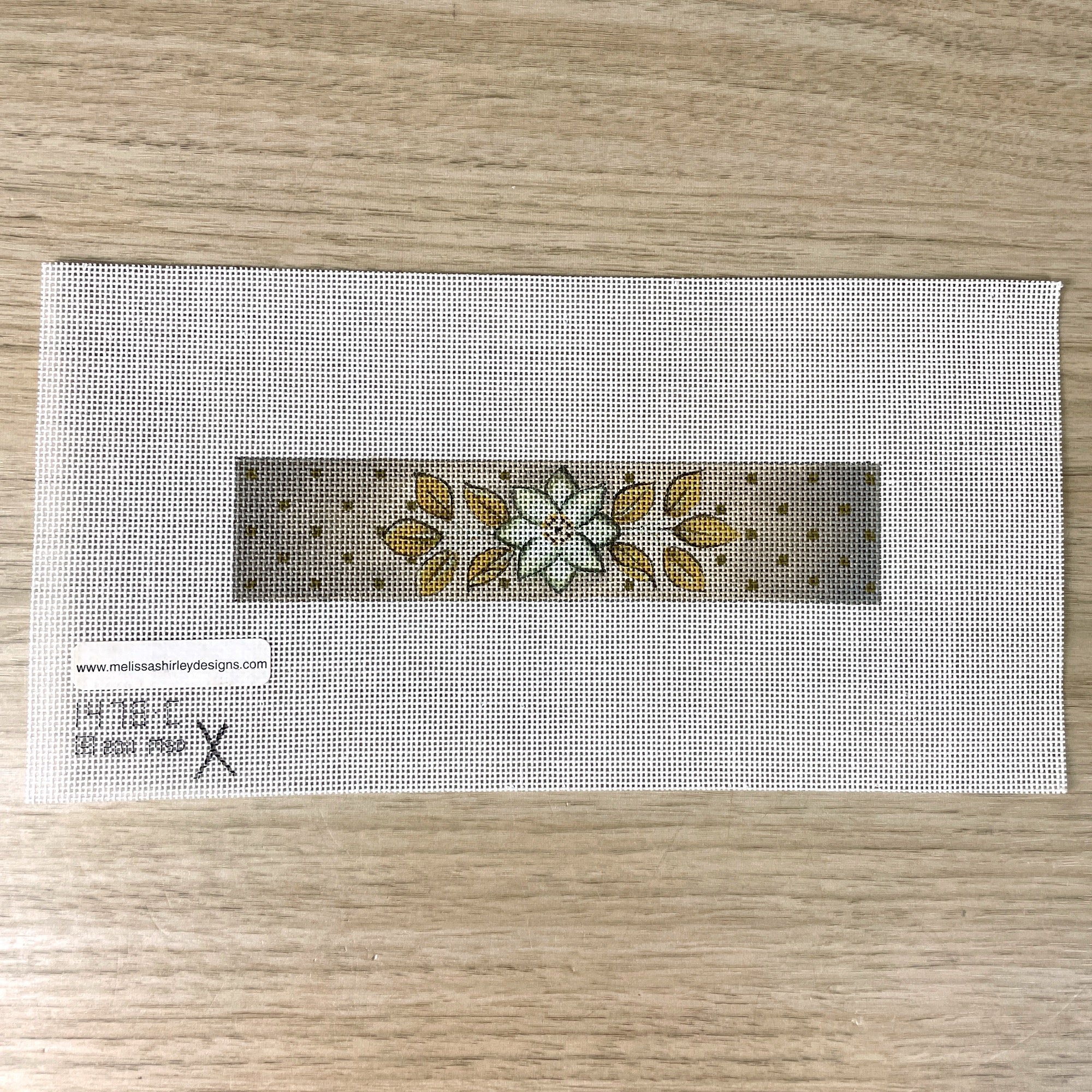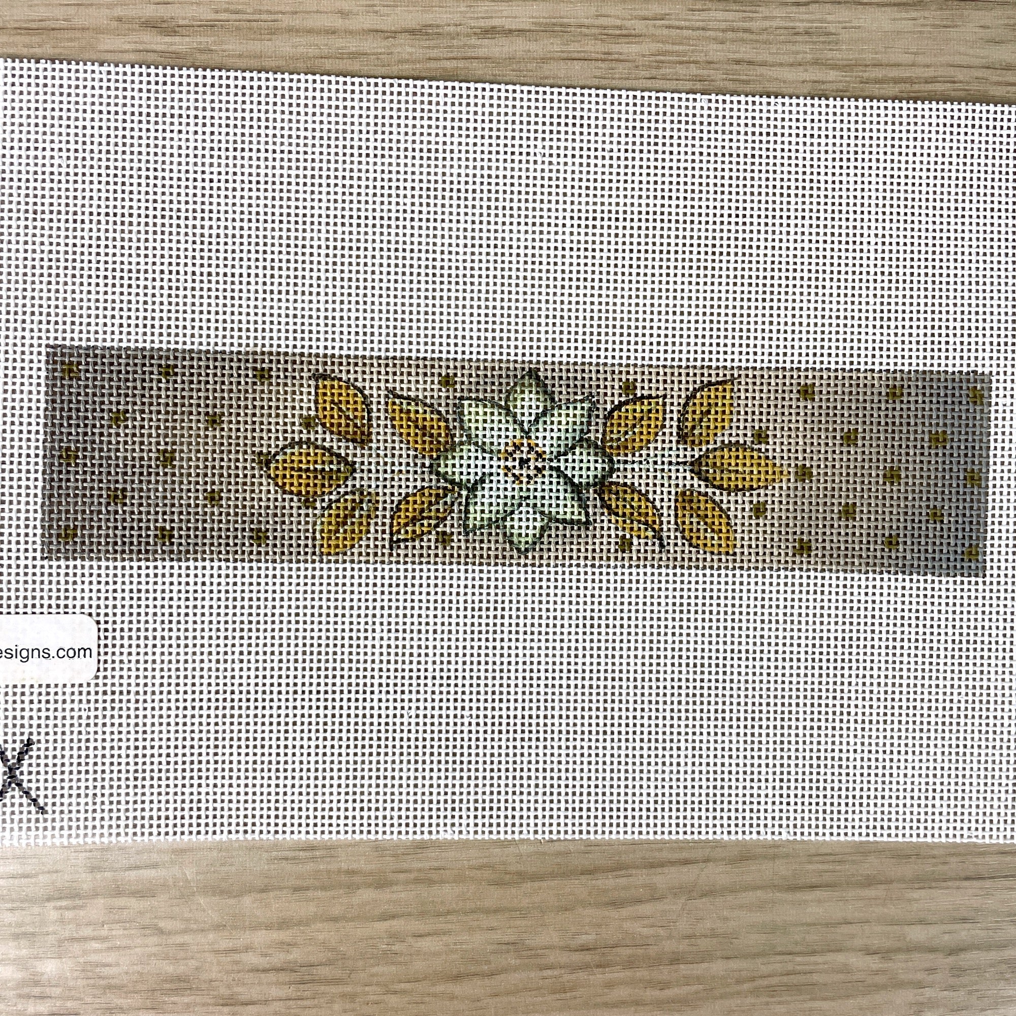 Melissa Shirley Designs handpainted cuff bracelet needlepoint canvas, gold dot/ floral #1478-C.