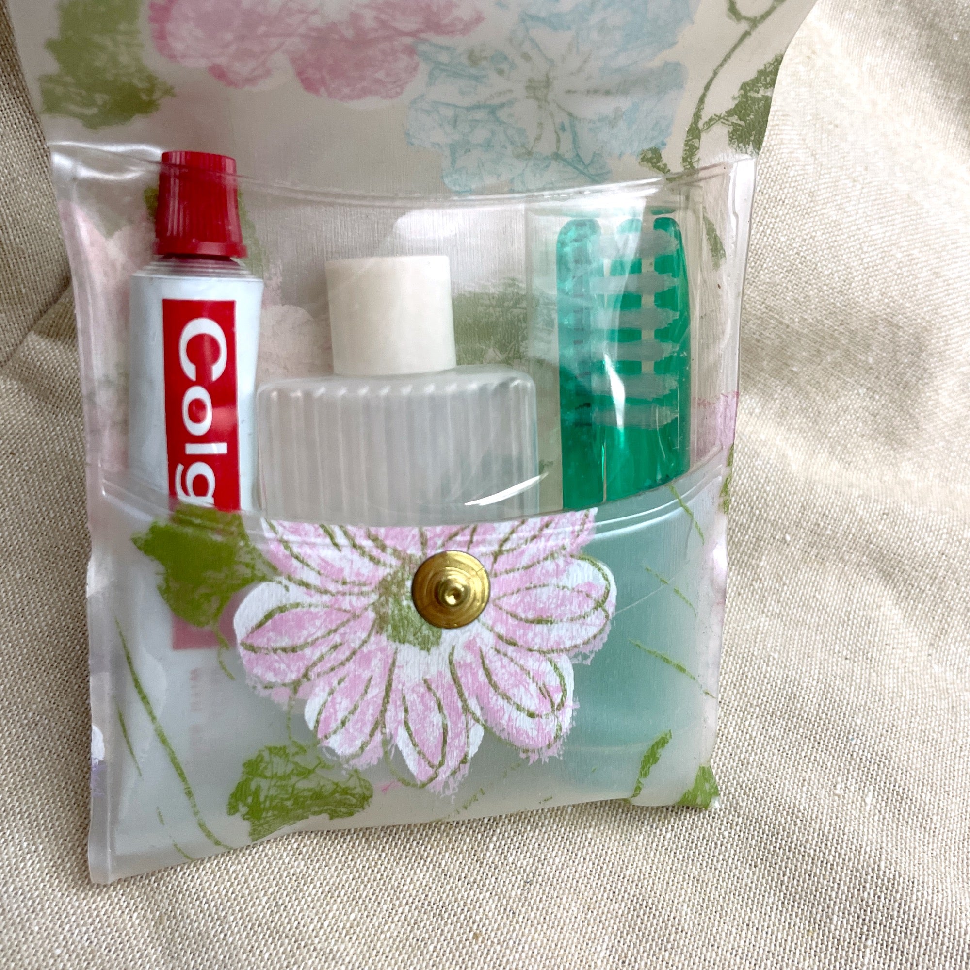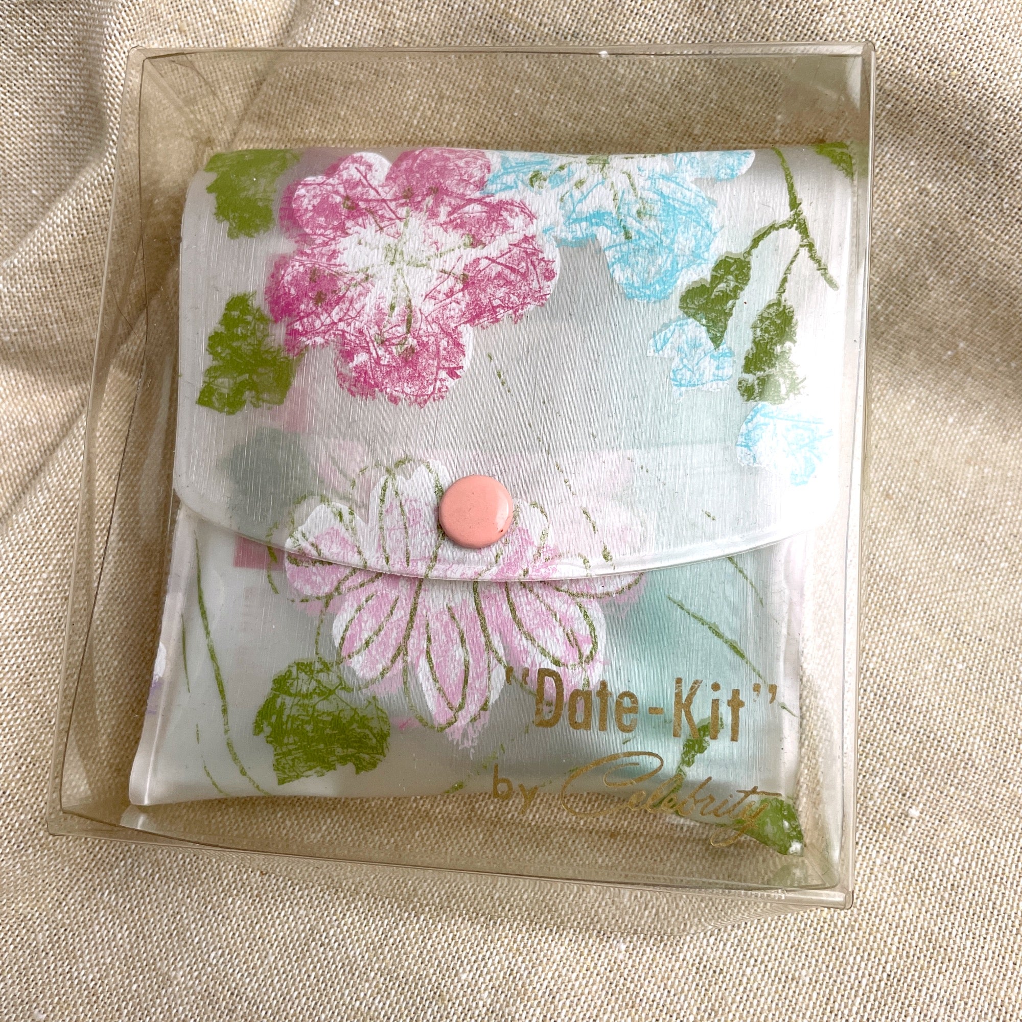 Vintage 1960s "Date-Kit" by Celebrity. Everything you need to freshen up before a date in a little vinyl snap pouch. Includes a very vintage tube of Colgate toothpaste, a little plastic bottle for mouthwash and a folding toothbrush.