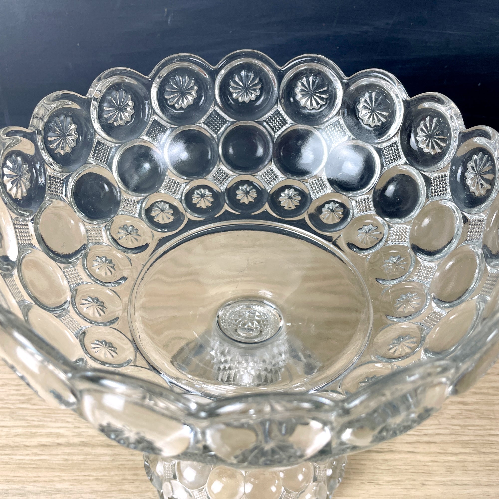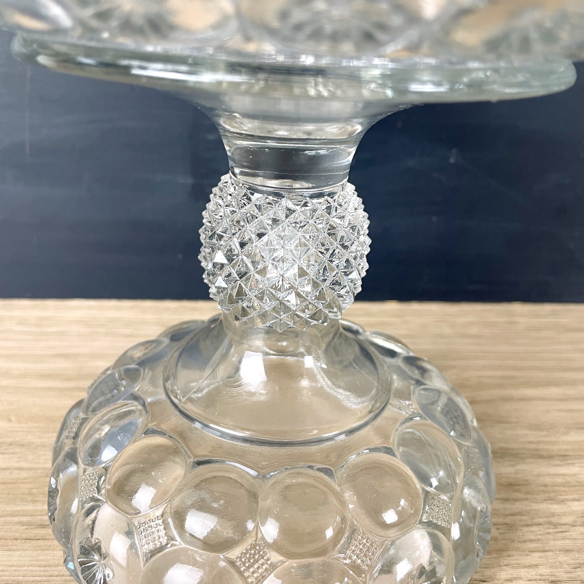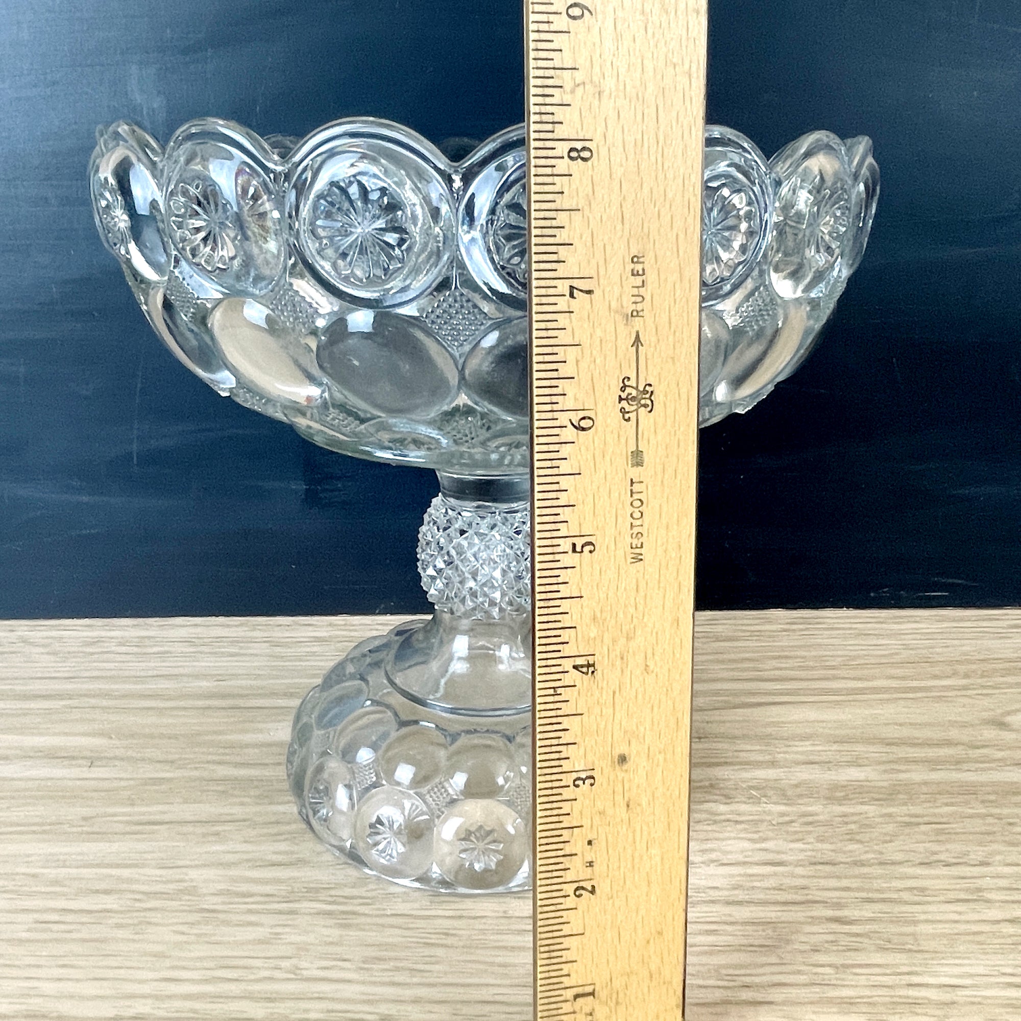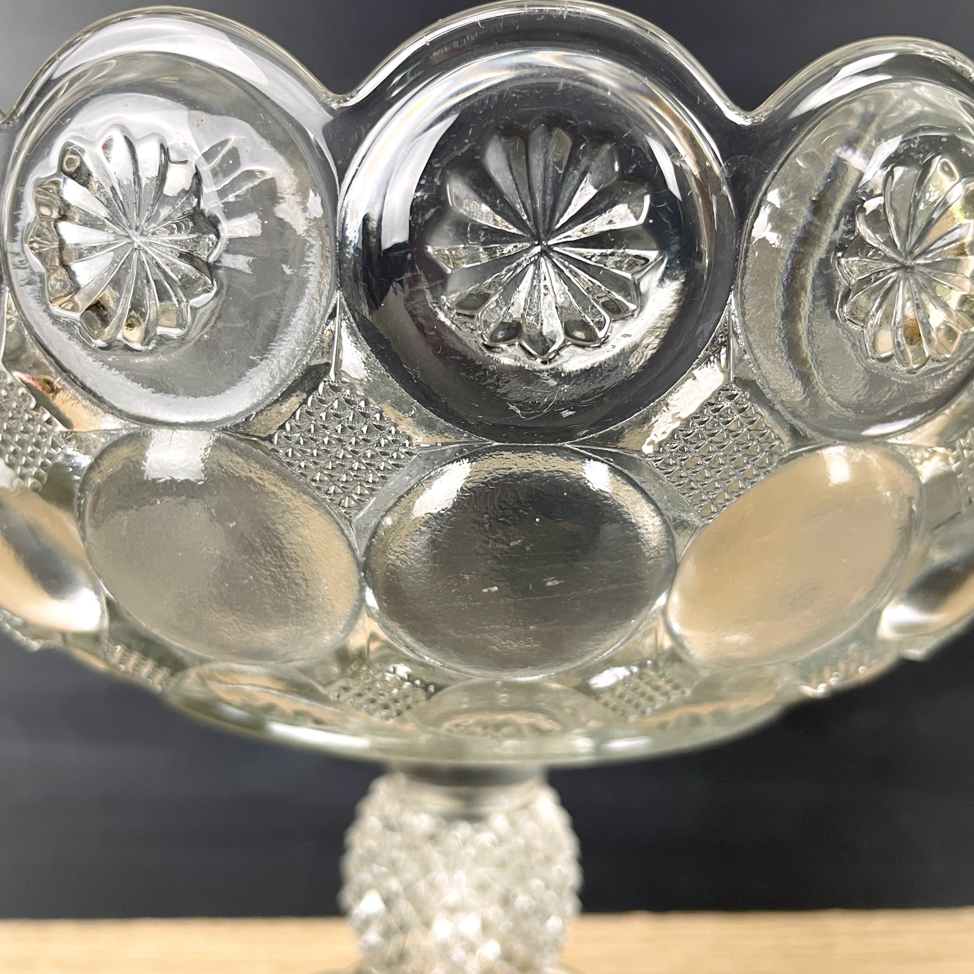 Co-operative Flint Glass Co. antique EAPG Imperial pattern compote, also known as Jeweled Moon and Star. Introduced in 1896. Detailed elegant pattern from the Victorian era.