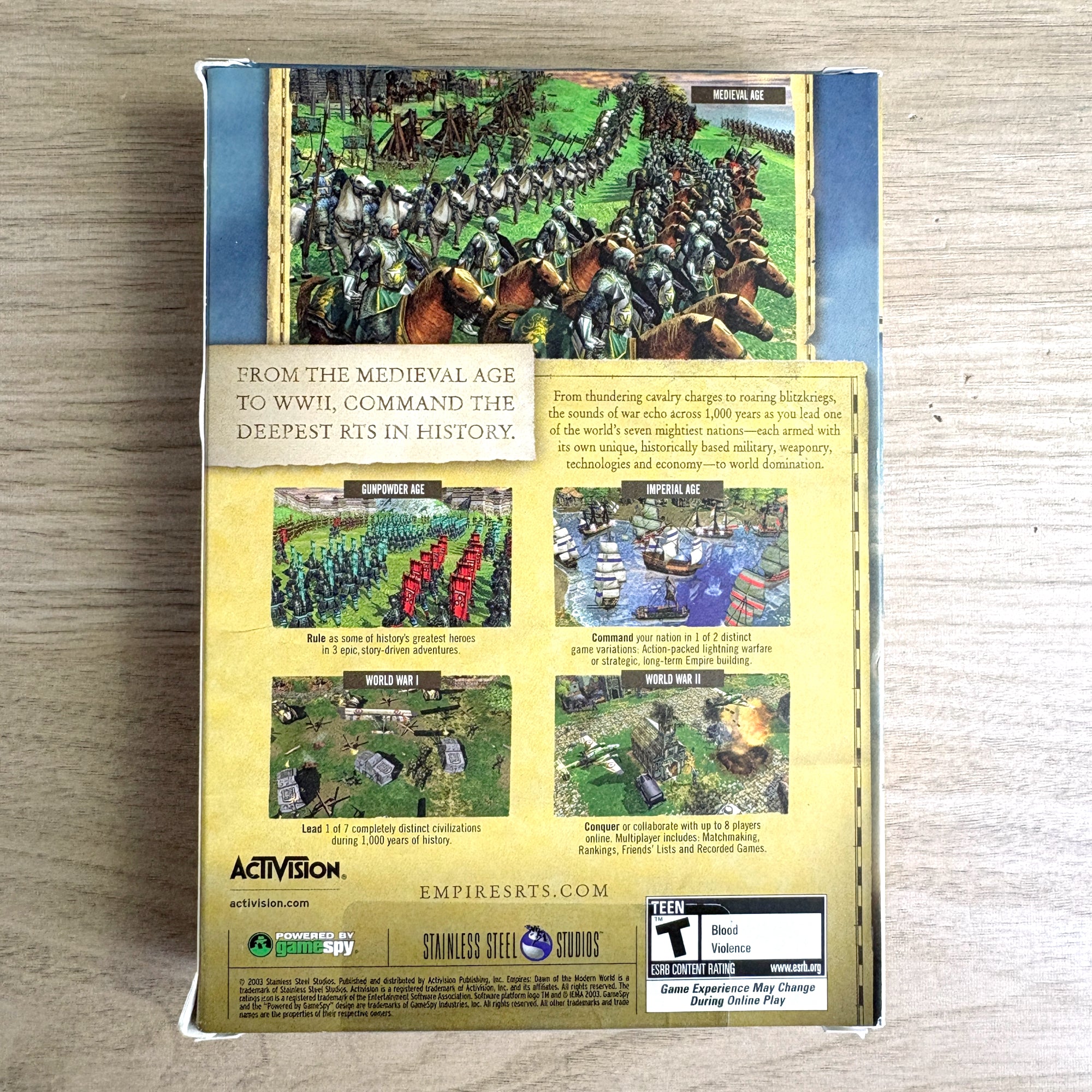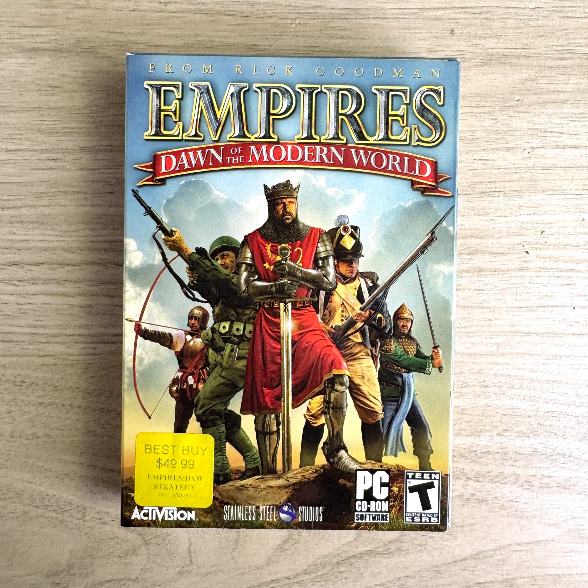 From Rick Goodman, Empires Dawn of the Modern World (2003) by Activision.  Windows 98SE/ME/2000/XP install. In original sealed cardboard box. Rated Teen.