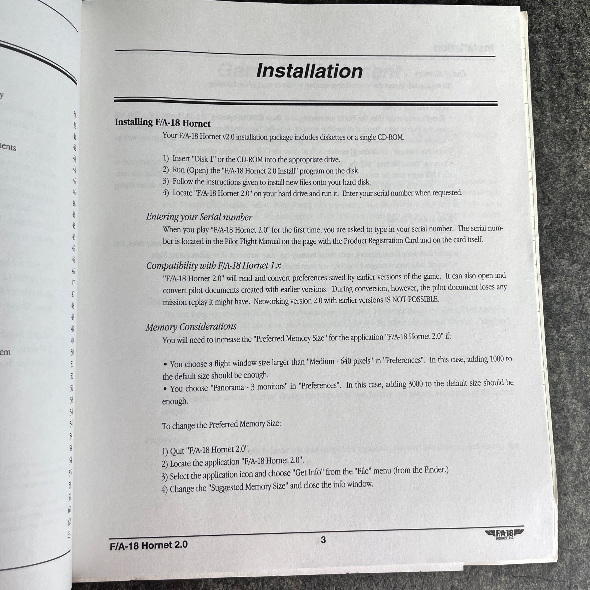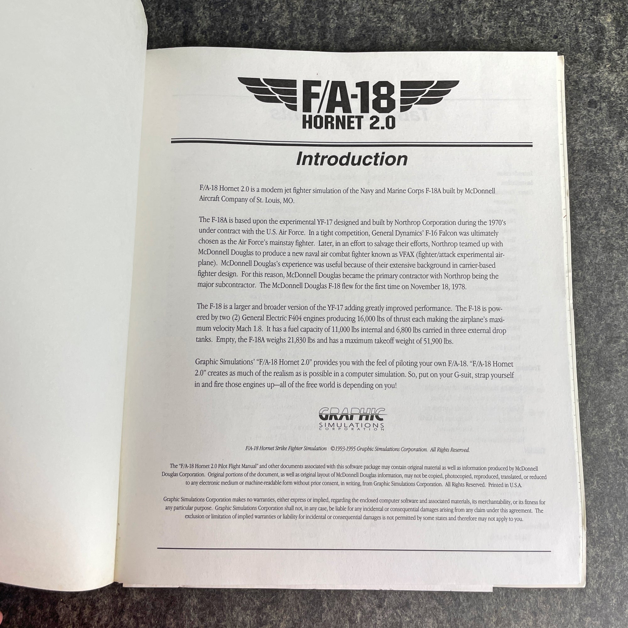 Graphic Simulations Co. F/A-18 Hornet 2.0 Pilot Flight Manual - 1995 softcover, 63 pages. Includes command reference.