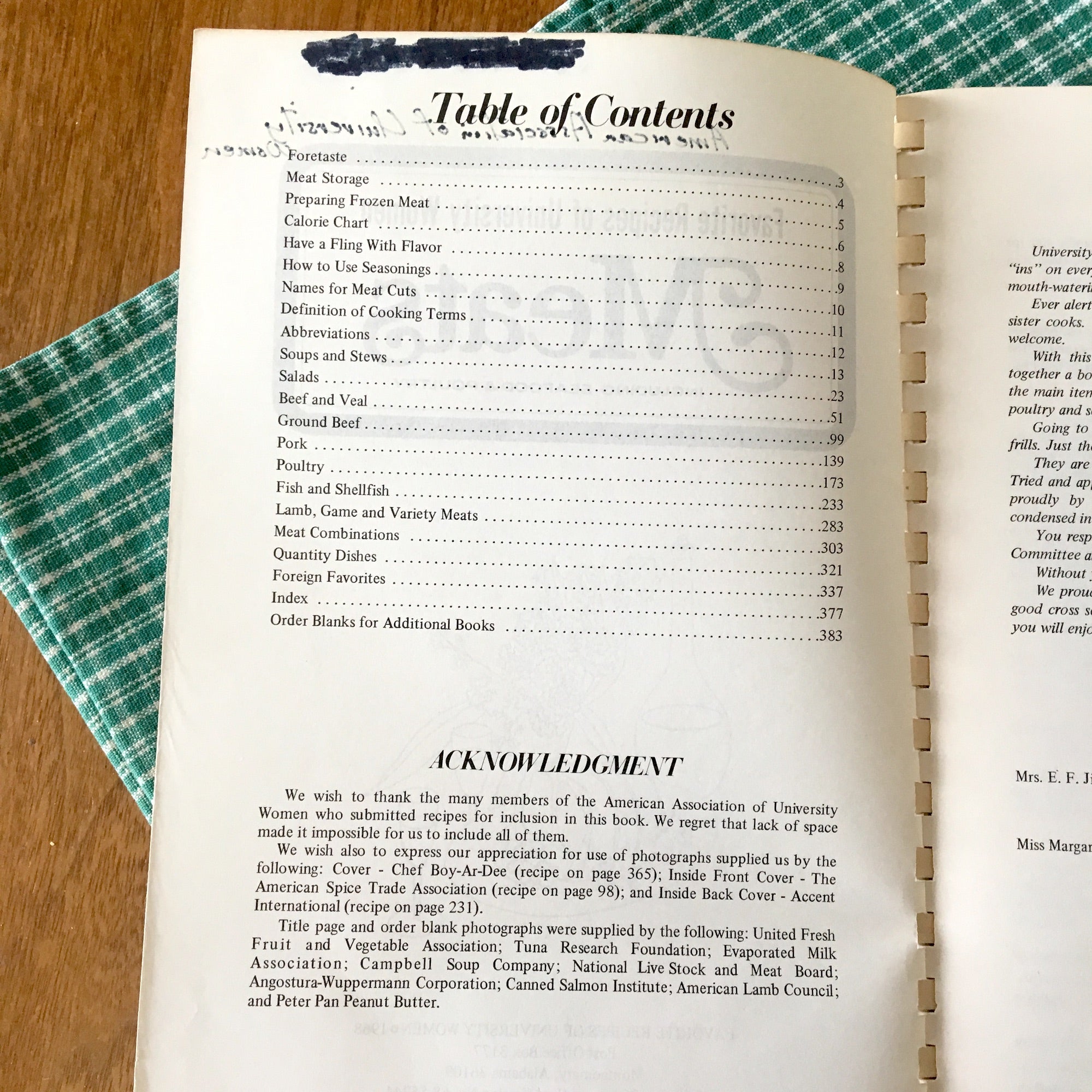 Favorite Recipes of University Women: Meats - compiled by the American Association of University Women - 1960s cookbook