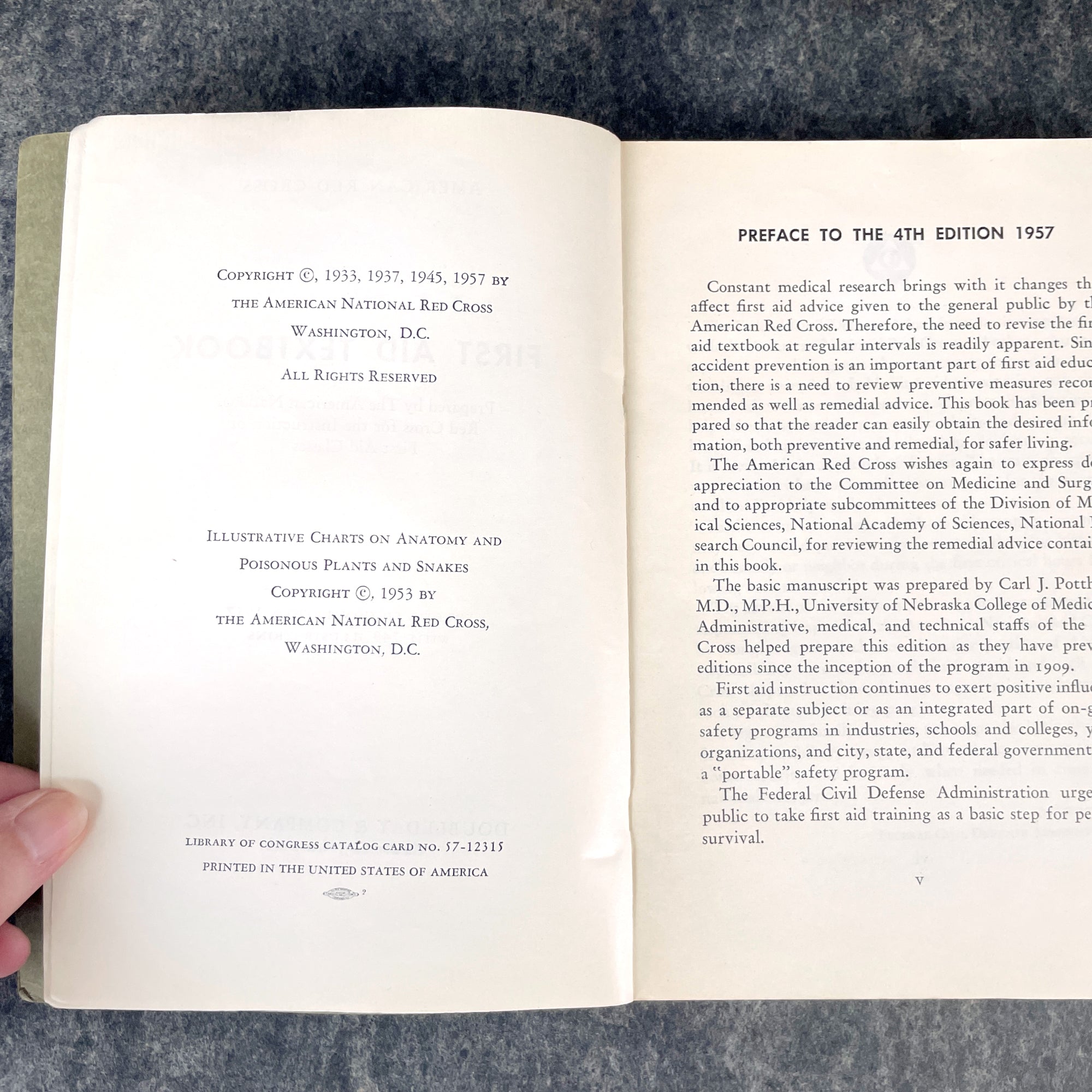 First Aid - Fourth Edition - Red Cross textbook - 1957- green softcover