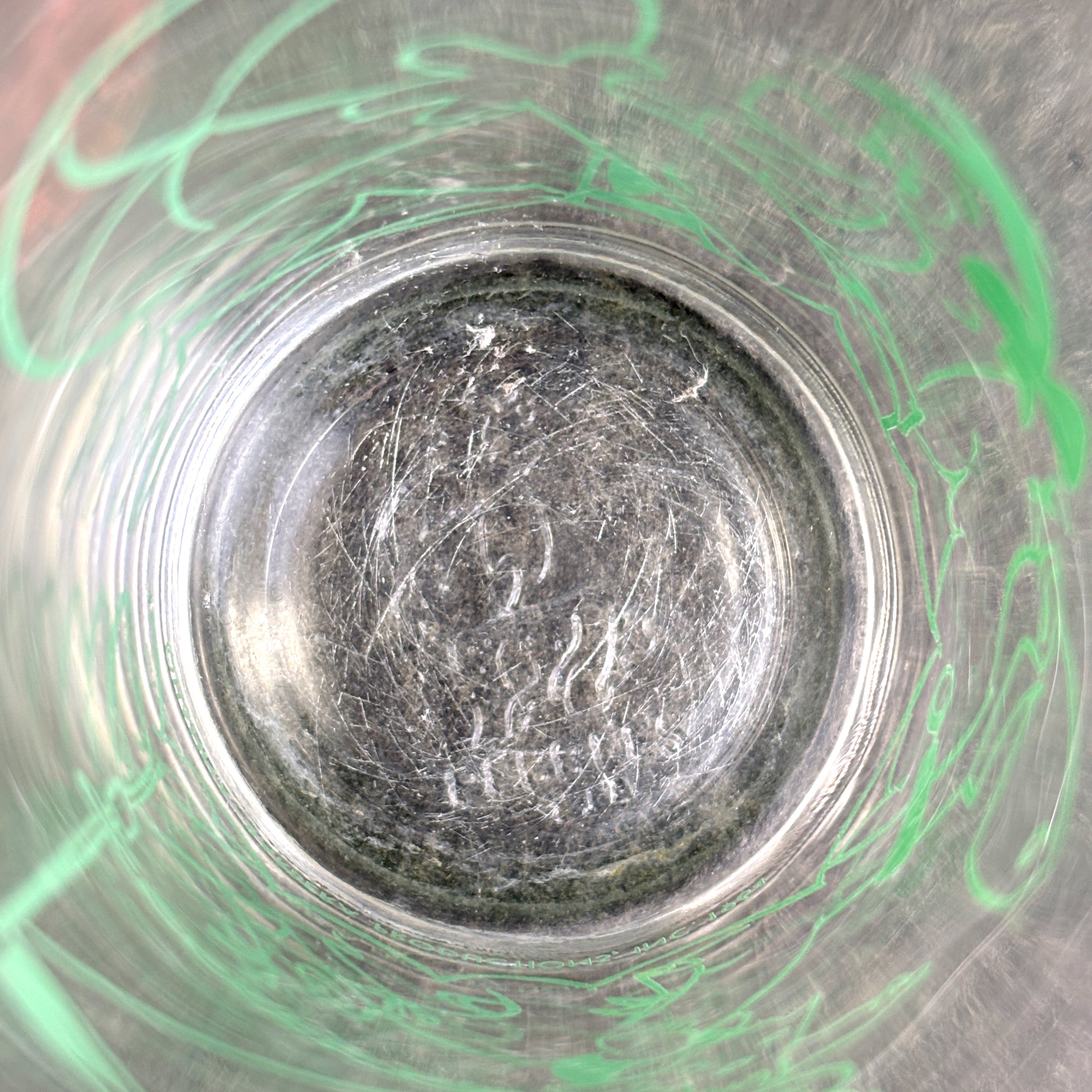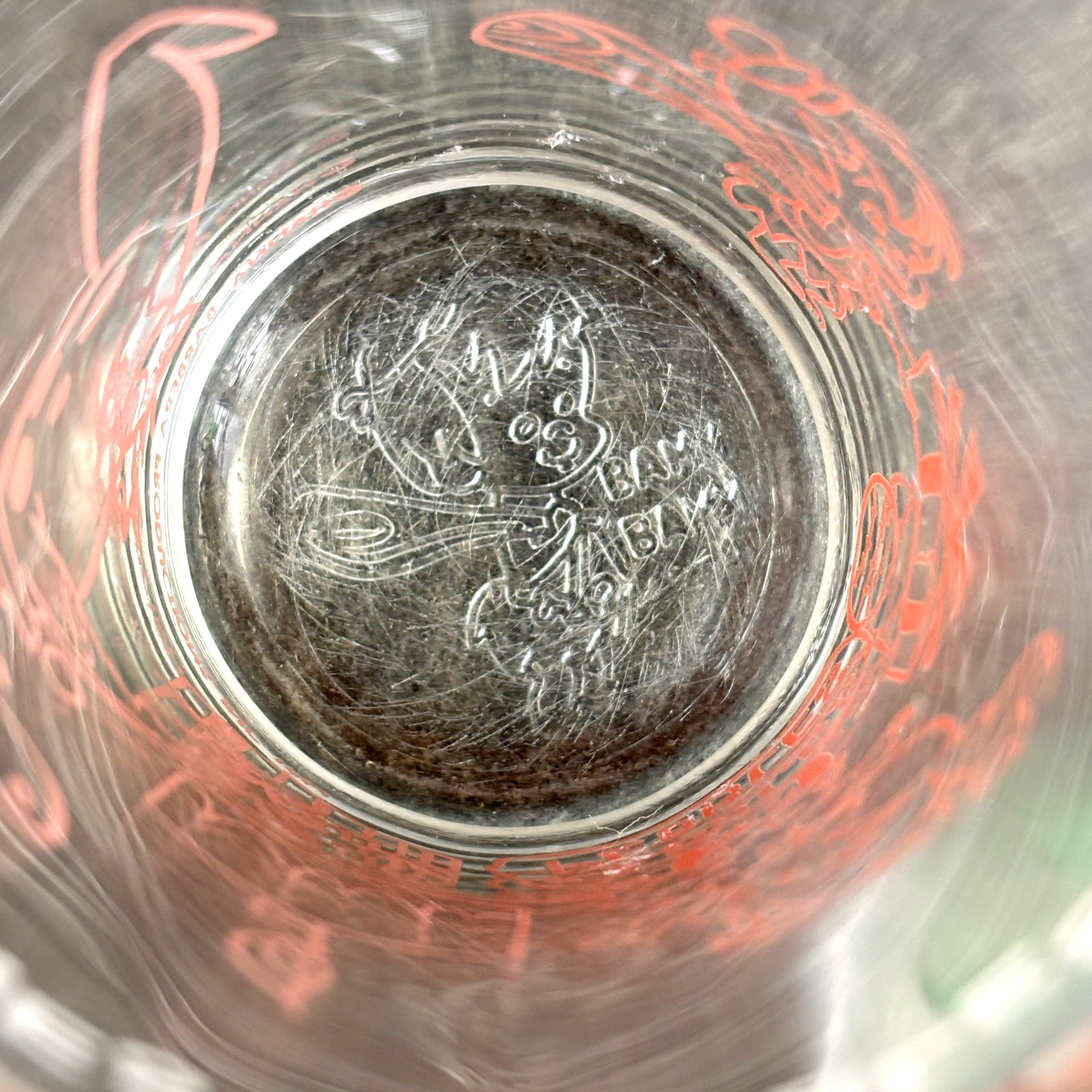 CONDITION Very good. Minimal fading of colored paint. Minor shelf wear on bottom rims. Scratches on bottom inside glass - perhaps from stirring chocolate milk?