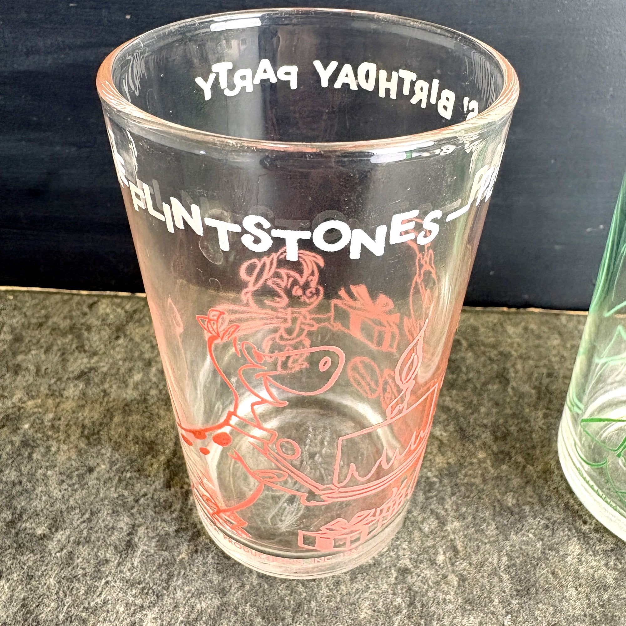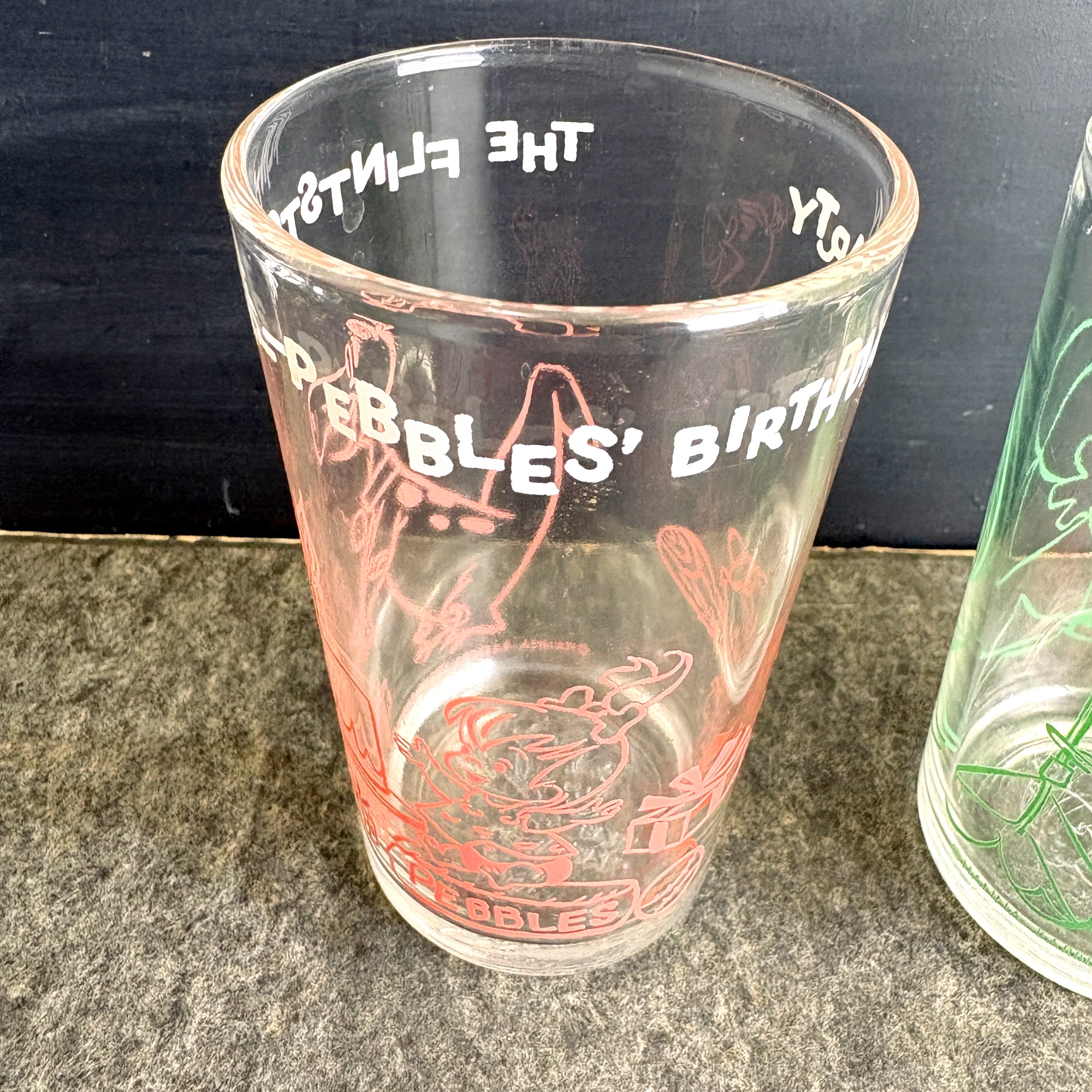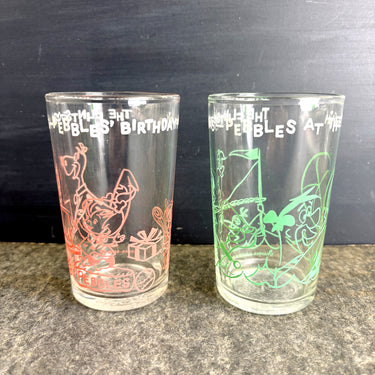 Flintstones Welch's jelly glasses set of 2 - 1964 vintage - Fred Pebbles Dino Bam Bam