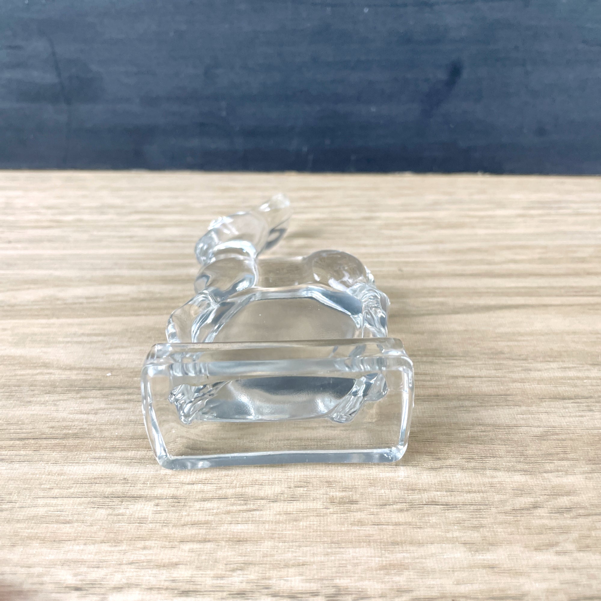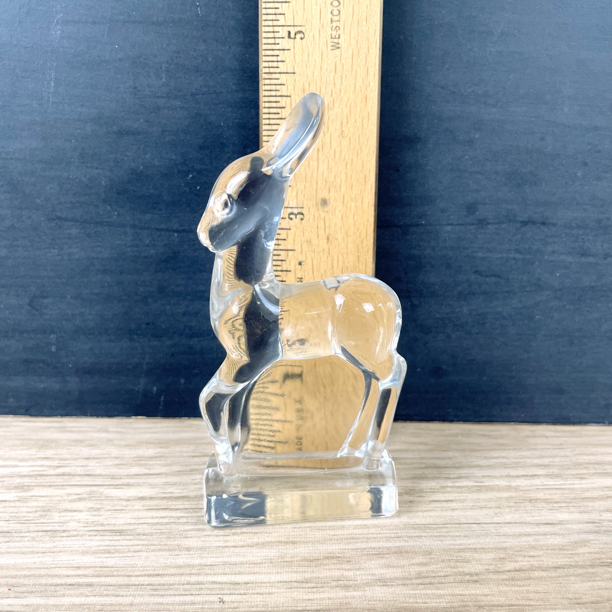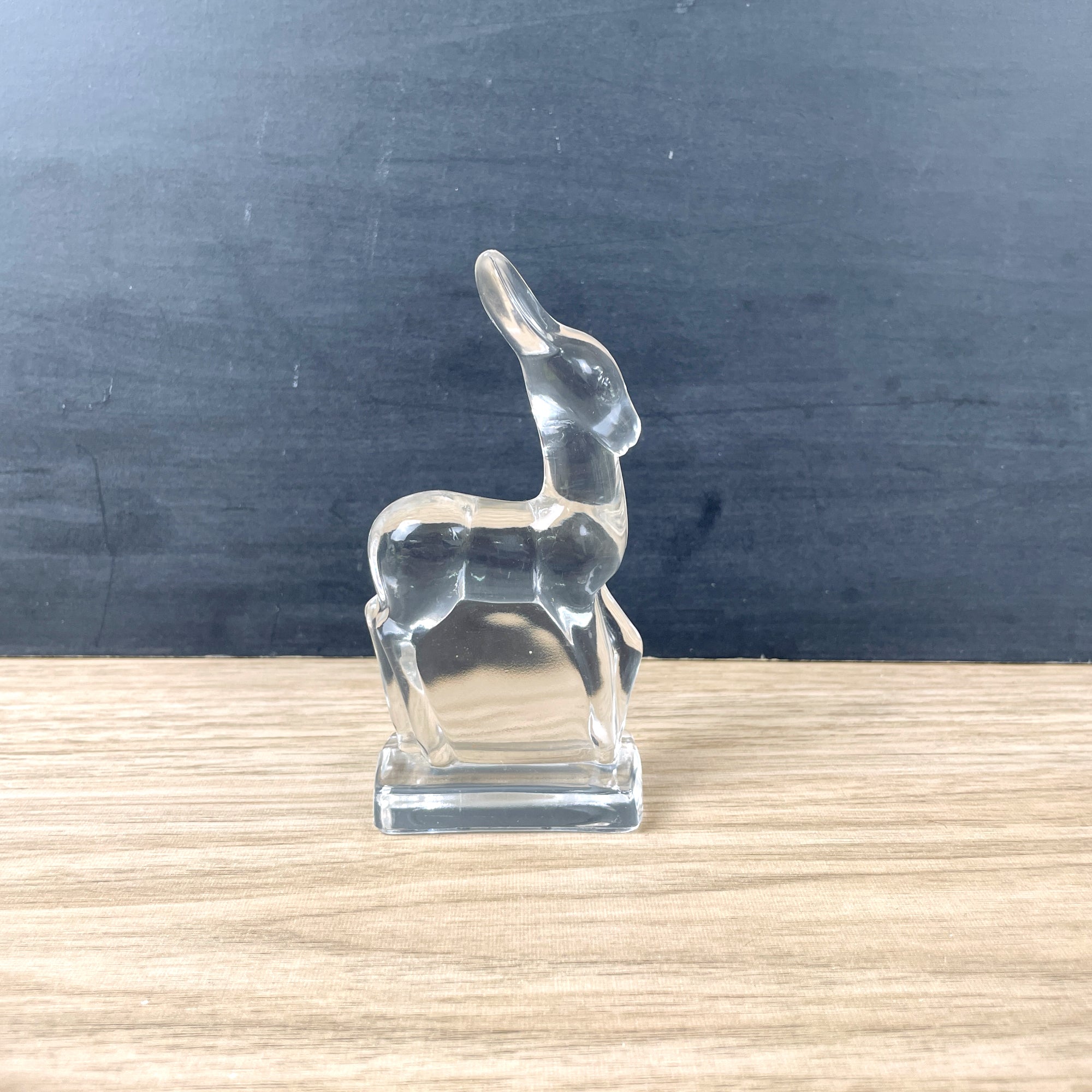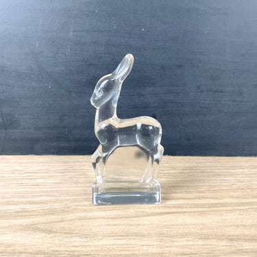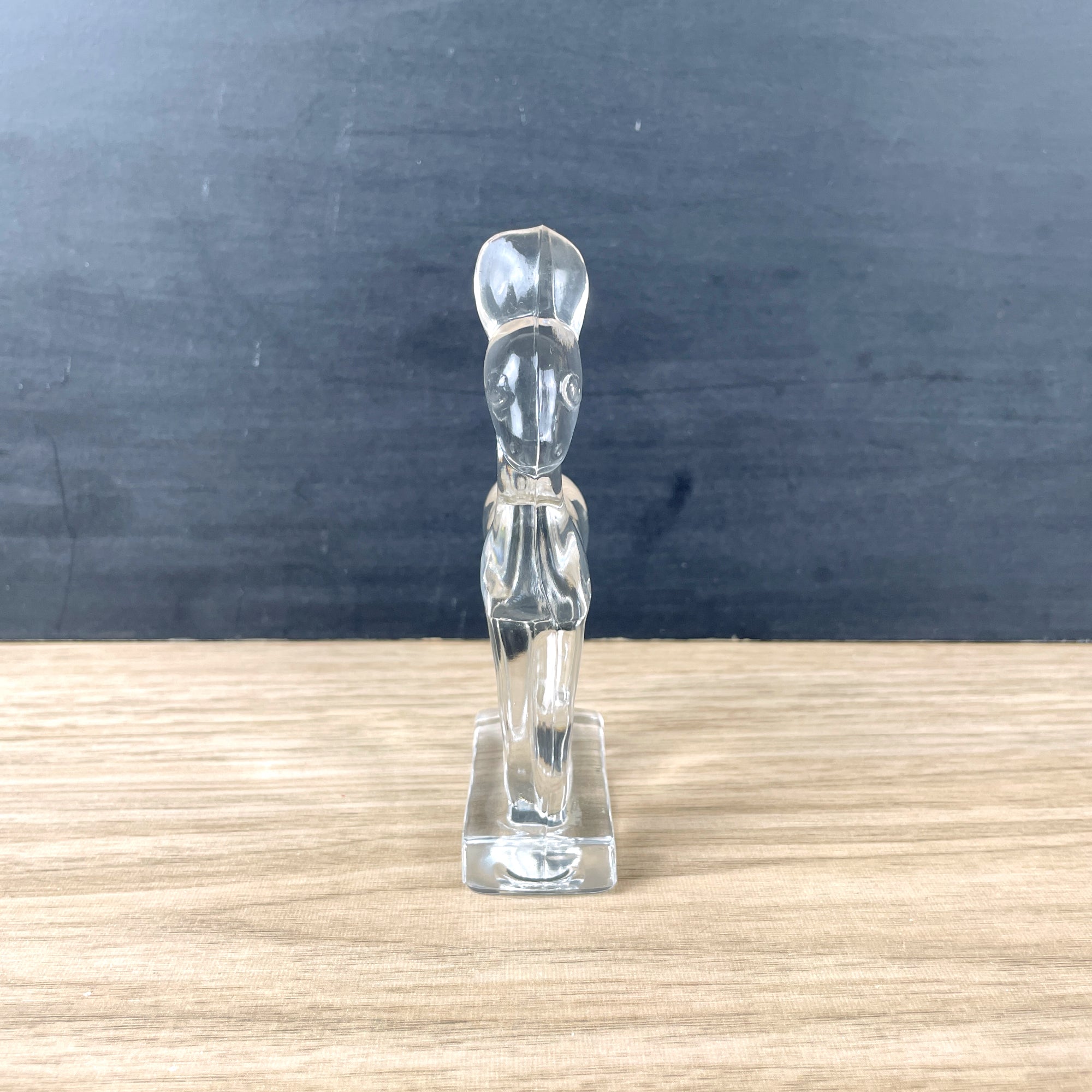 1940s Fostoria standing deer in clear glass. Small figure is a nice accent year round, but particularly lovely for the holidays.