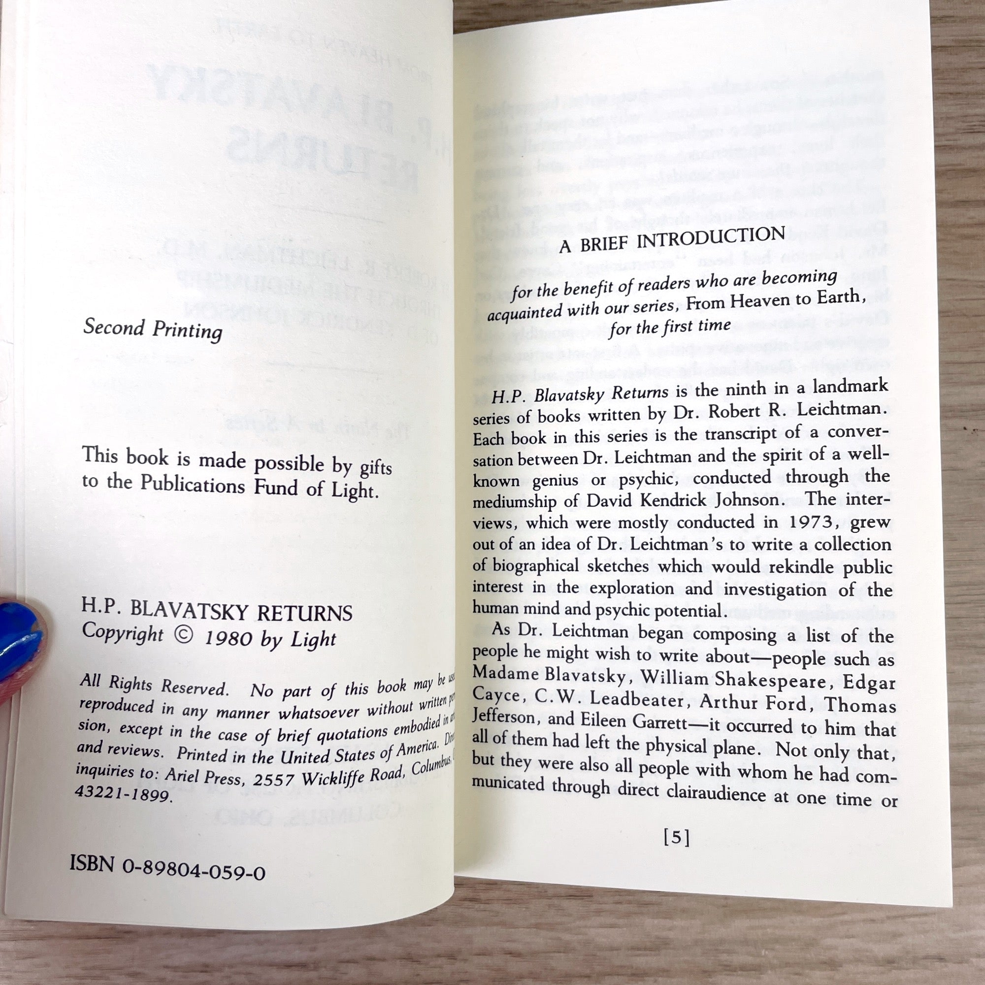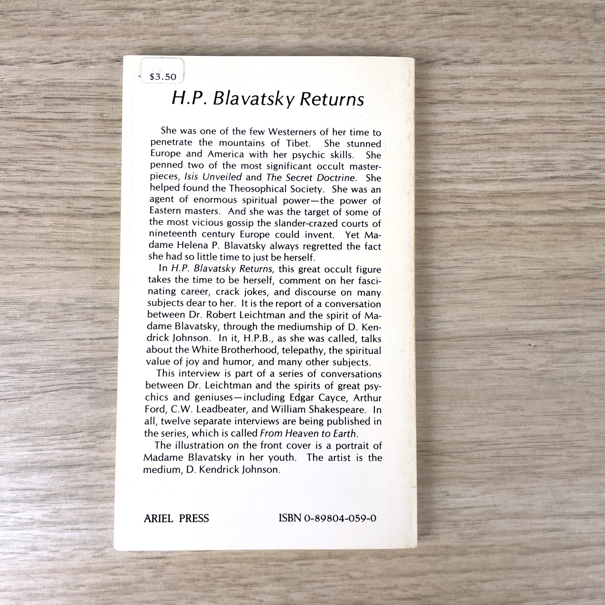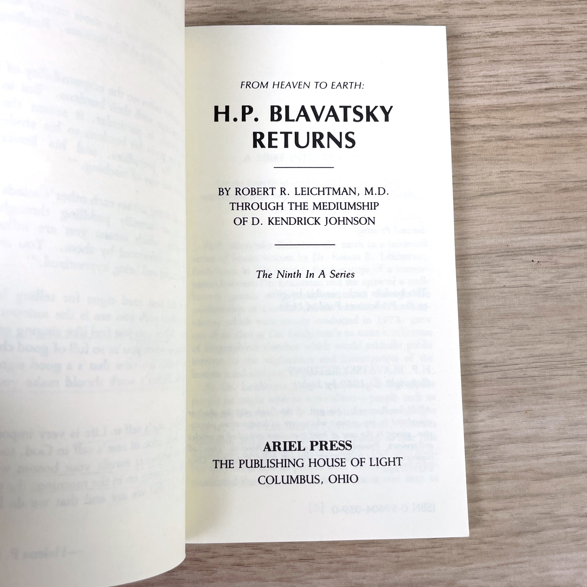 "From Heaven to Earth: H.P. Blavatsky Returns" by Robert R. Leichtman through the mediumship of D. Kendrick Johnson. Ninth in a series. 1980 second printing. Ariel Press. Paperback.