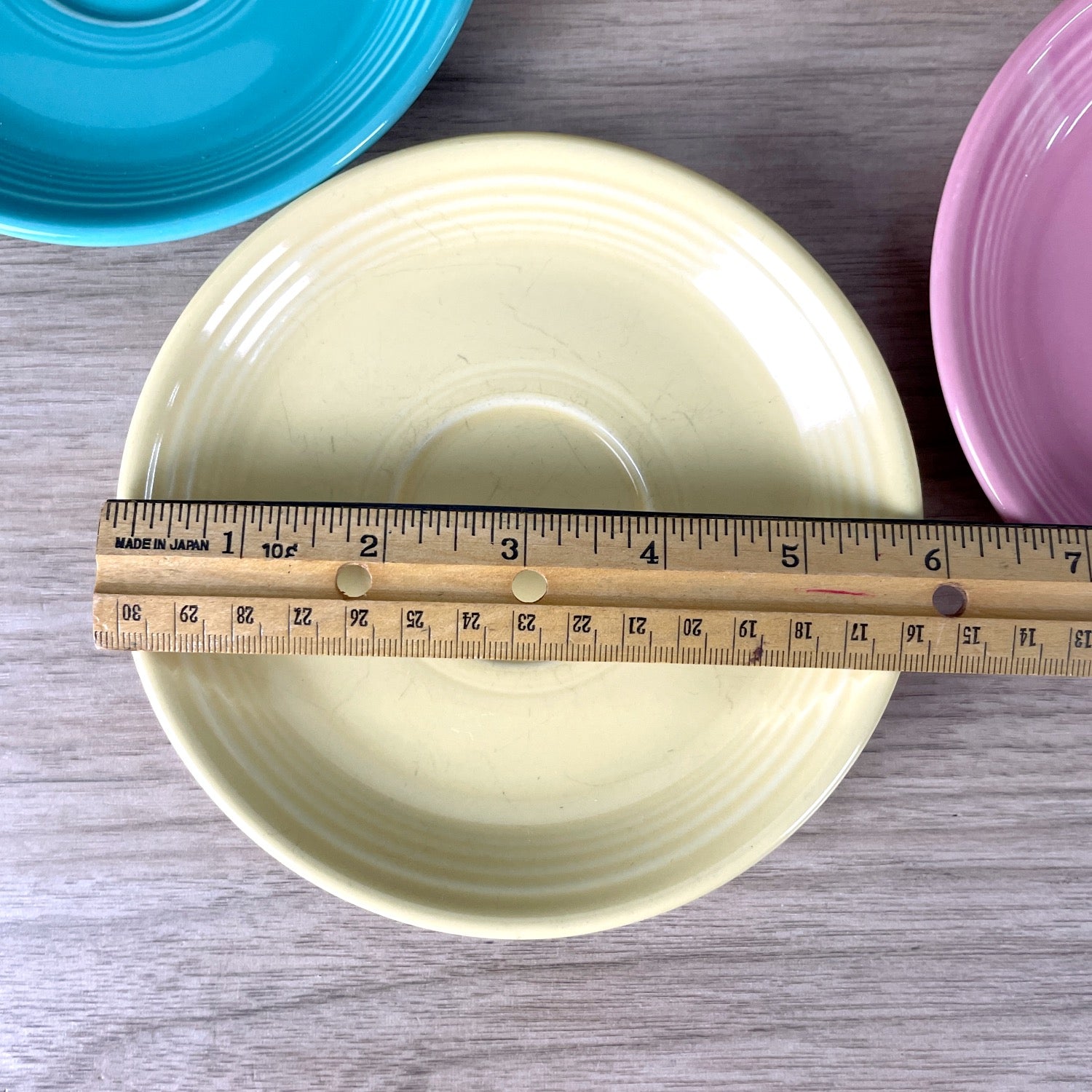 CONDITION Very Good. No breaks, chips or repairs. Yellow saucer has utensil scuffs.