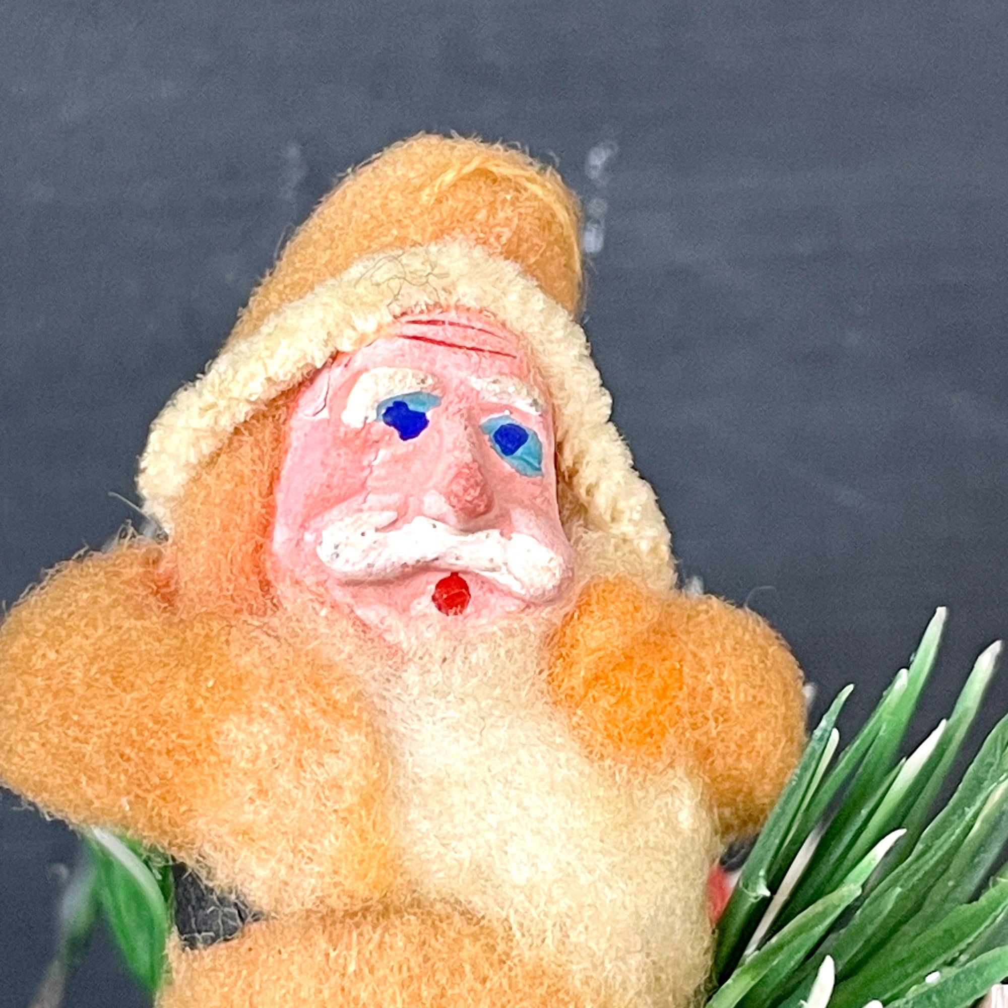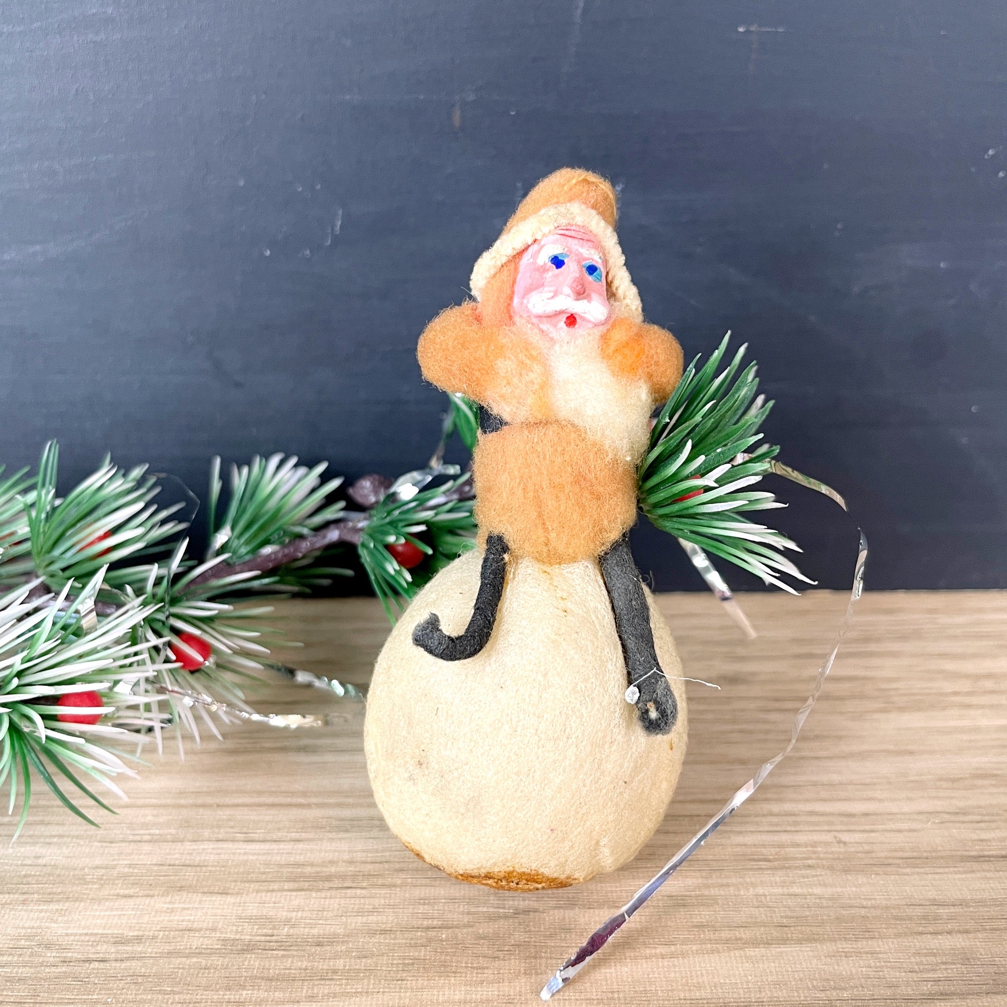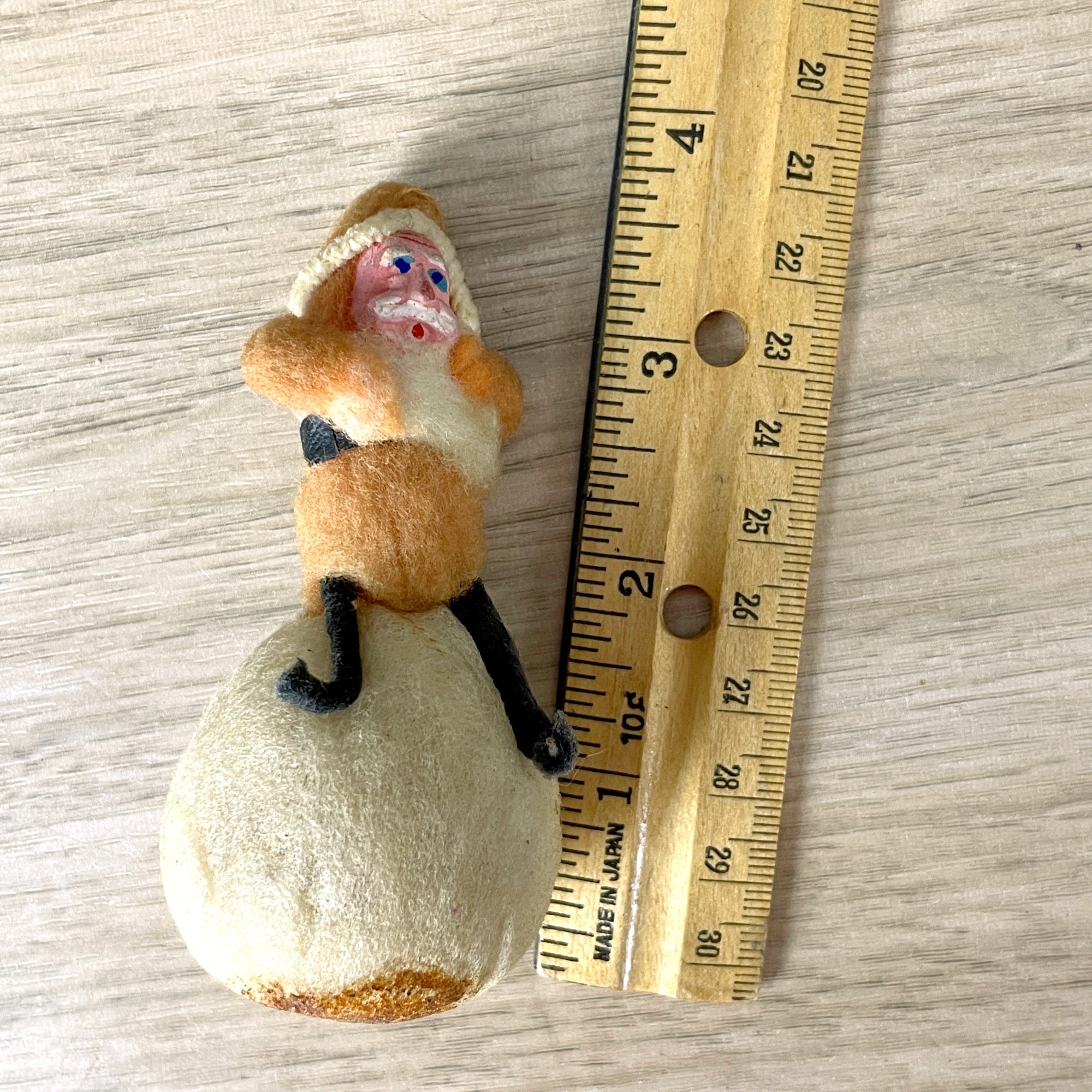 Antique German folk art Santa atop an egg. Made from spun cotton and composite.