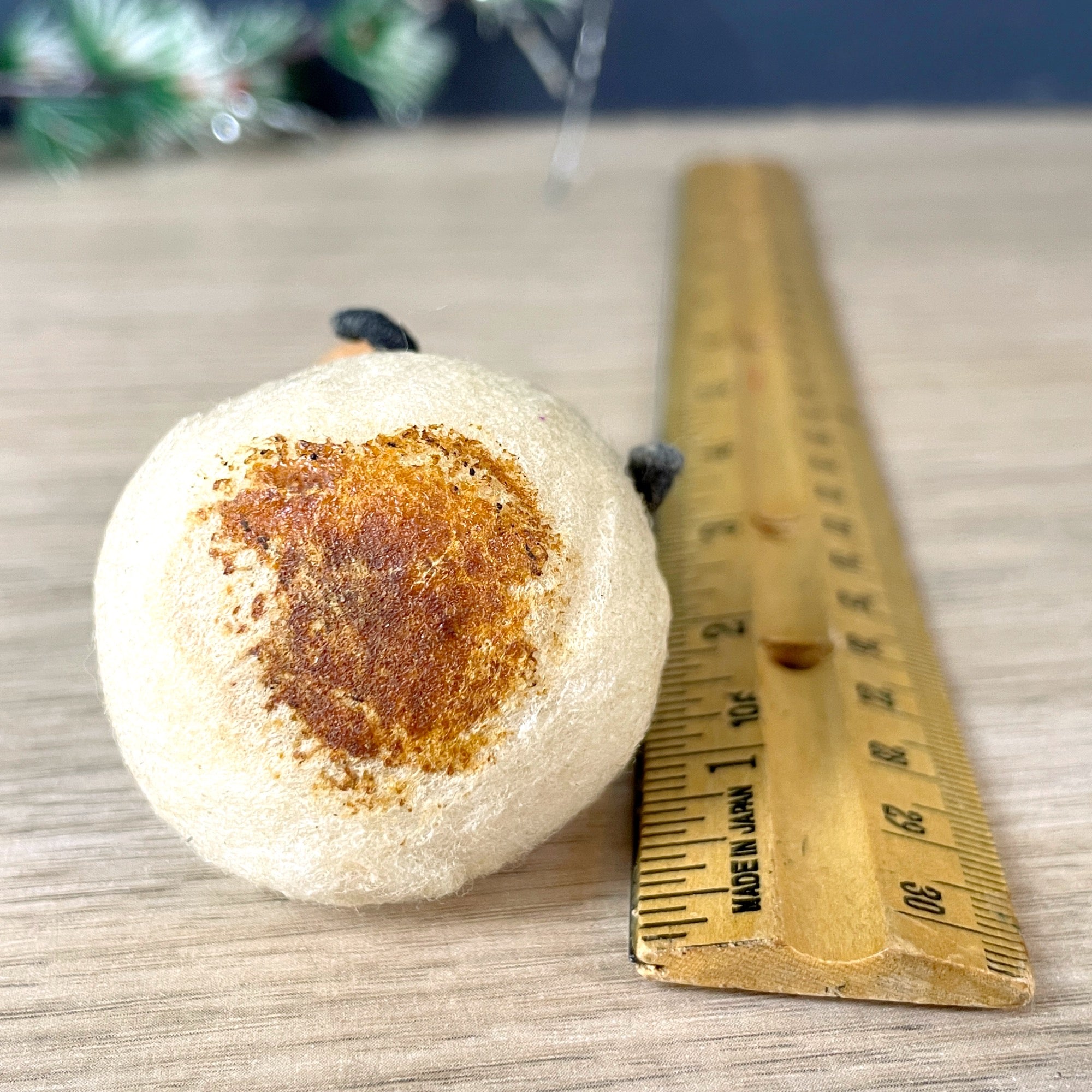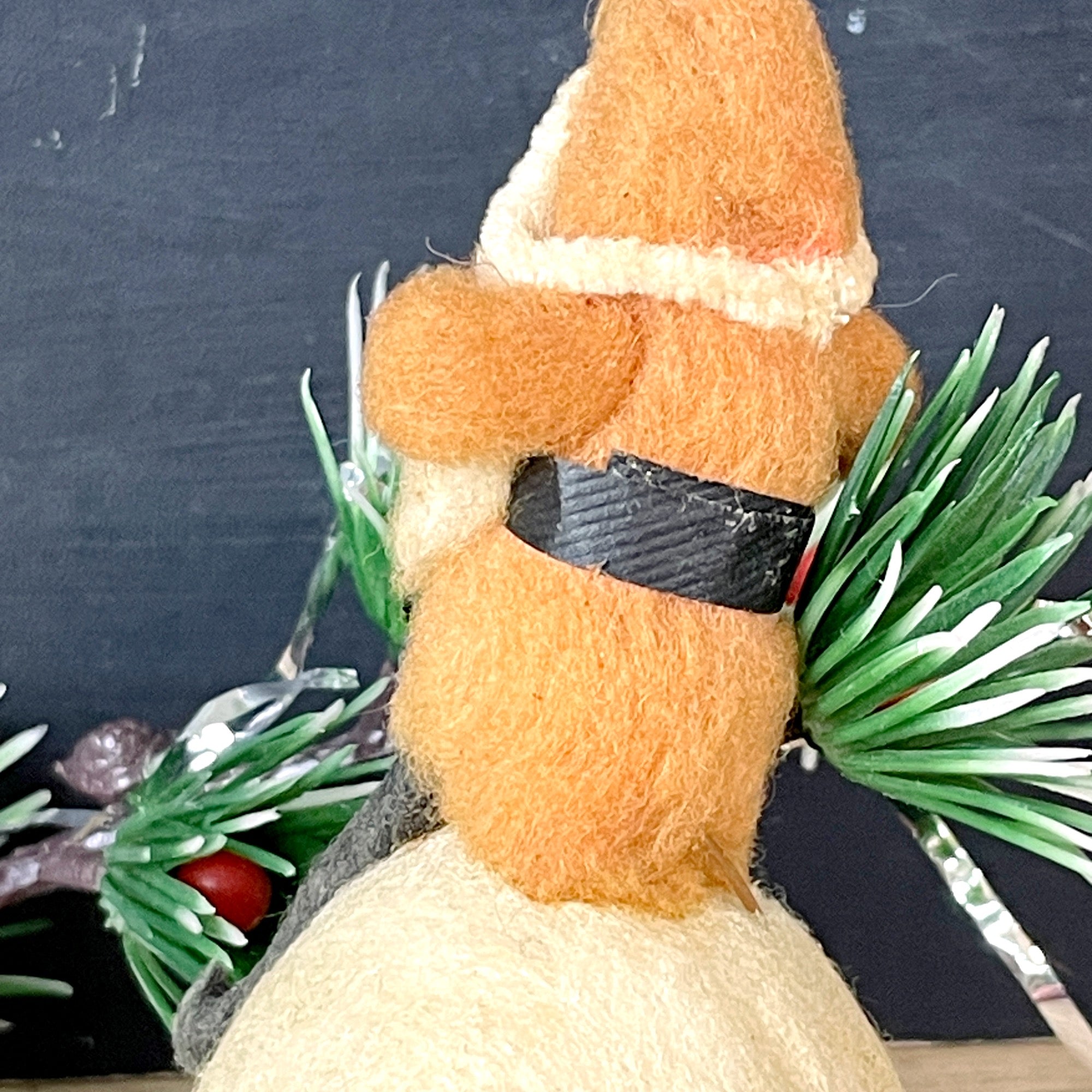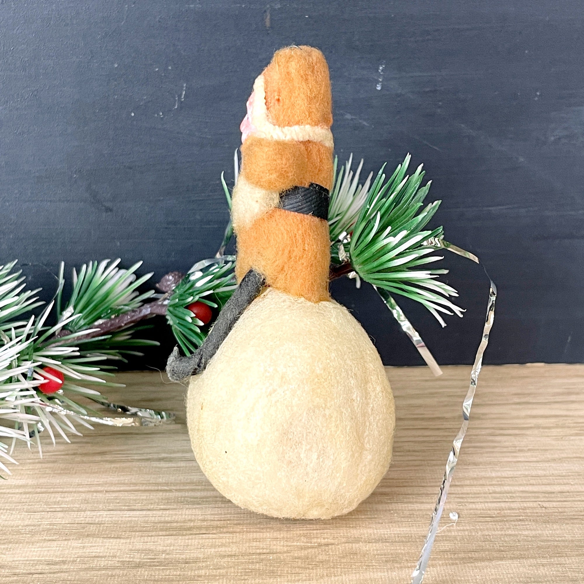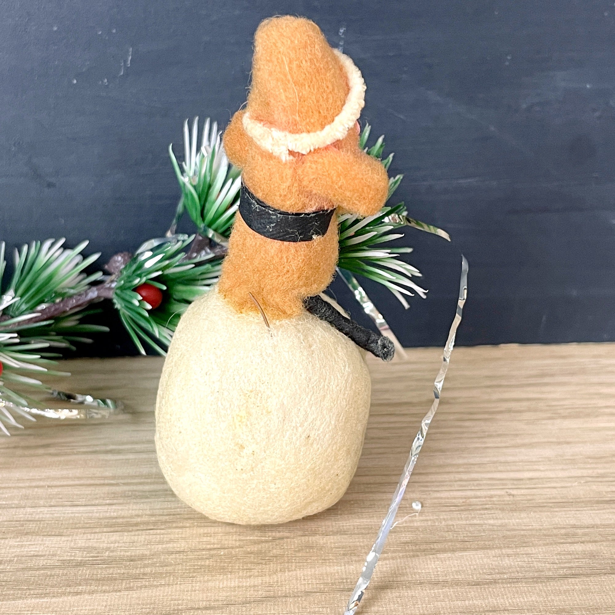 Antique German folk art Santa atop an egg. Made from spun cotton and composite.