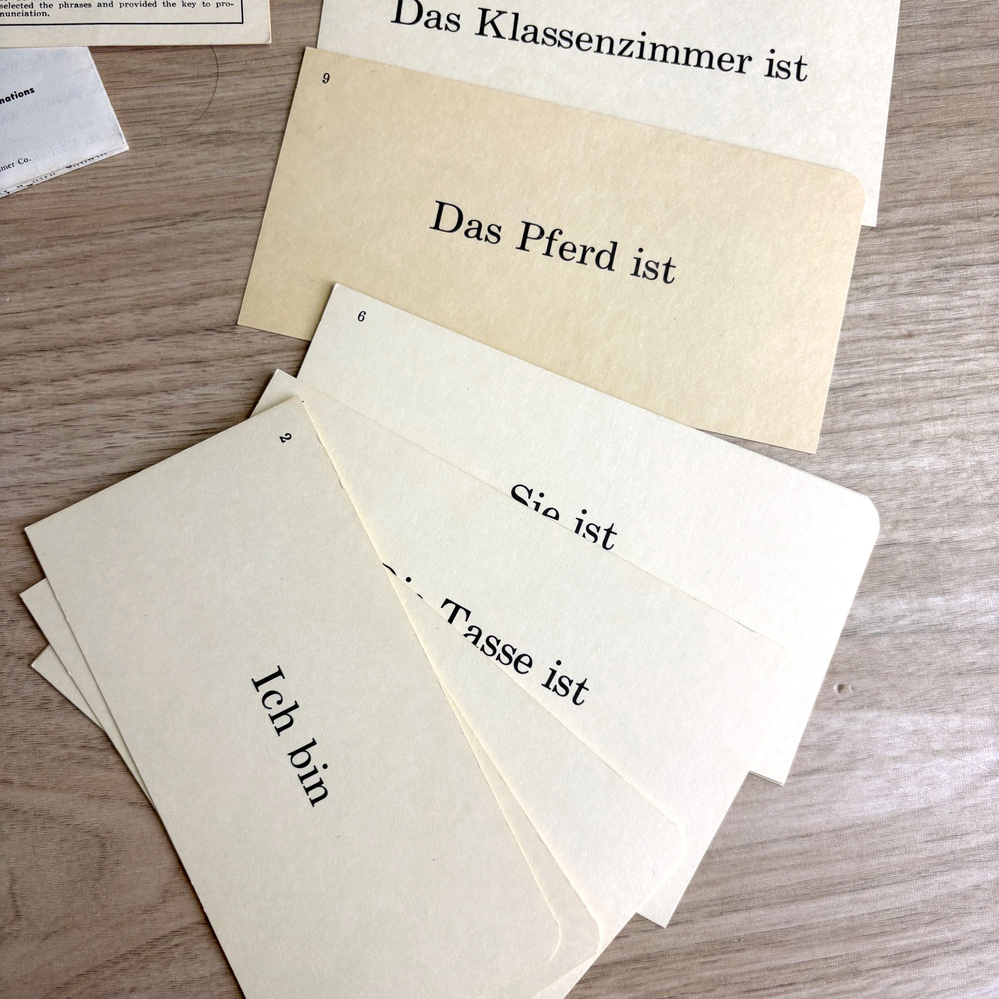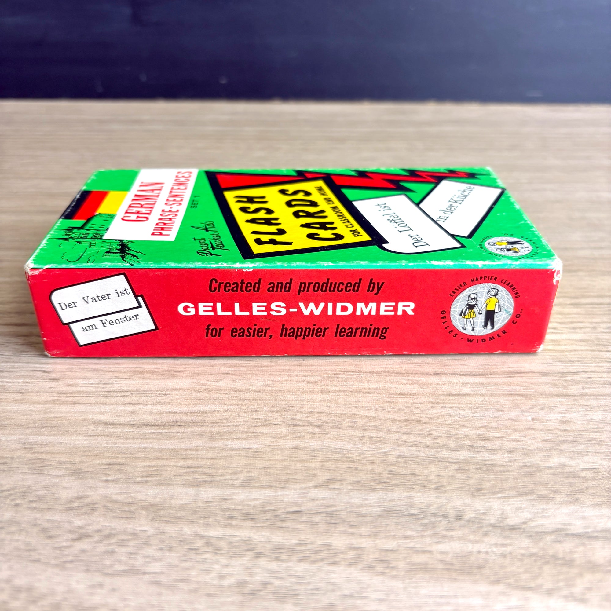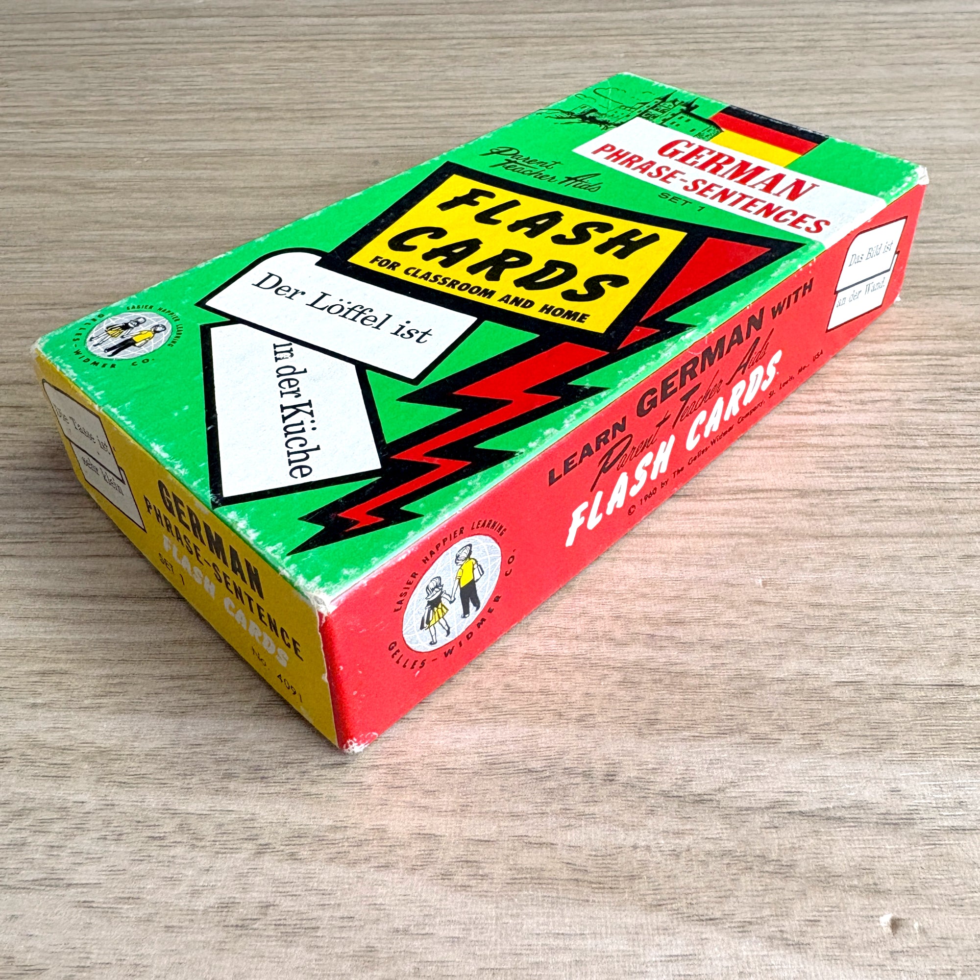 German phrase-sentences flash cards - 1960 vintage in box - Gelles-Widmer Co