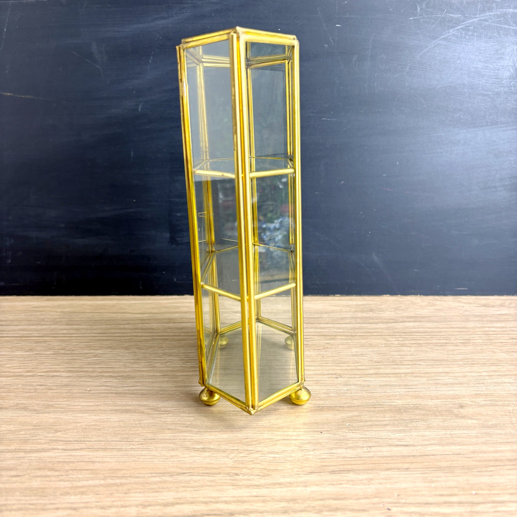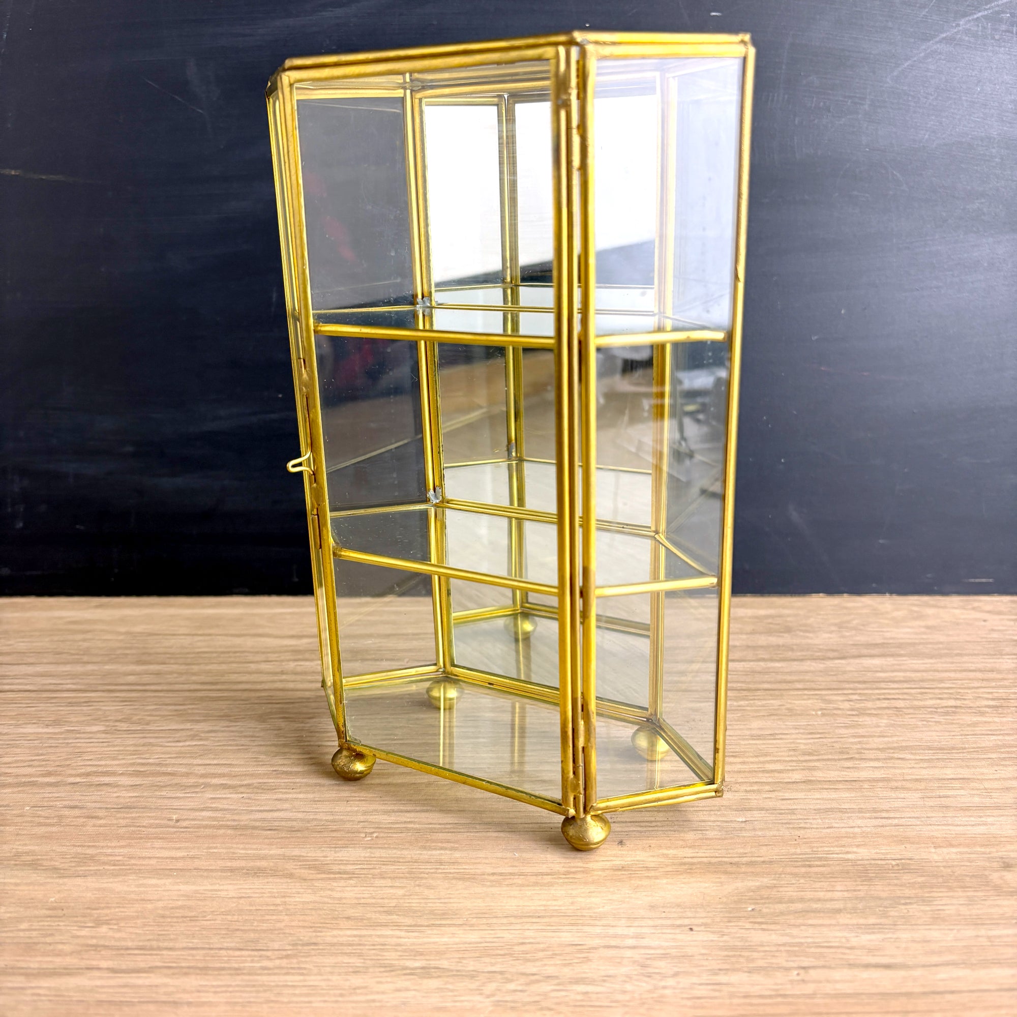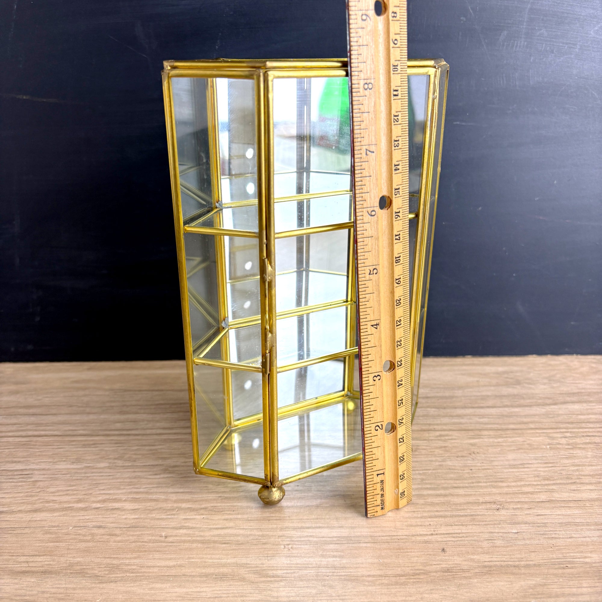Glass and brass mini display case with mirror back - vintage curio - 3 tier