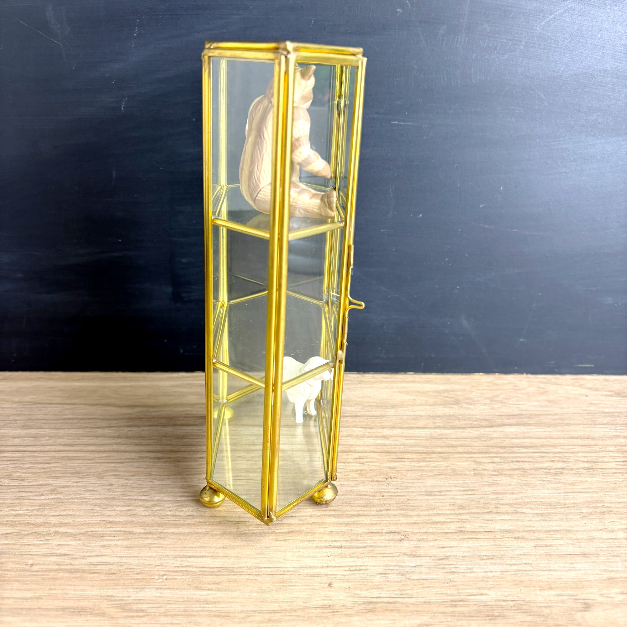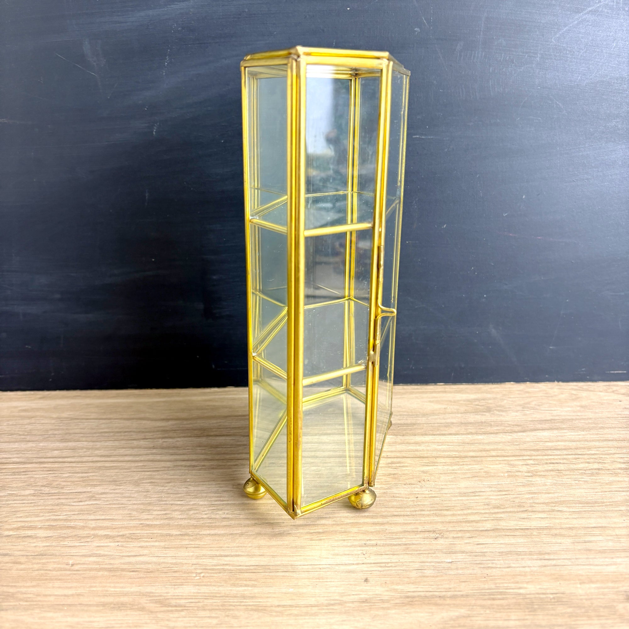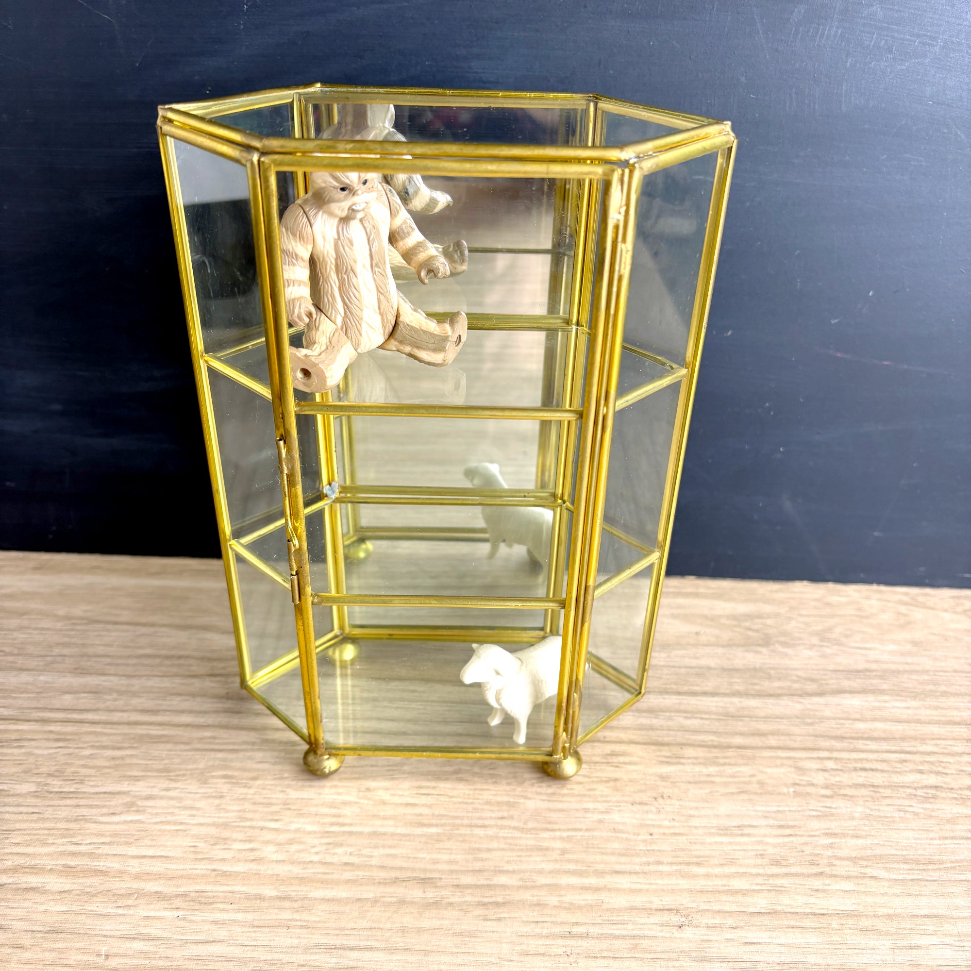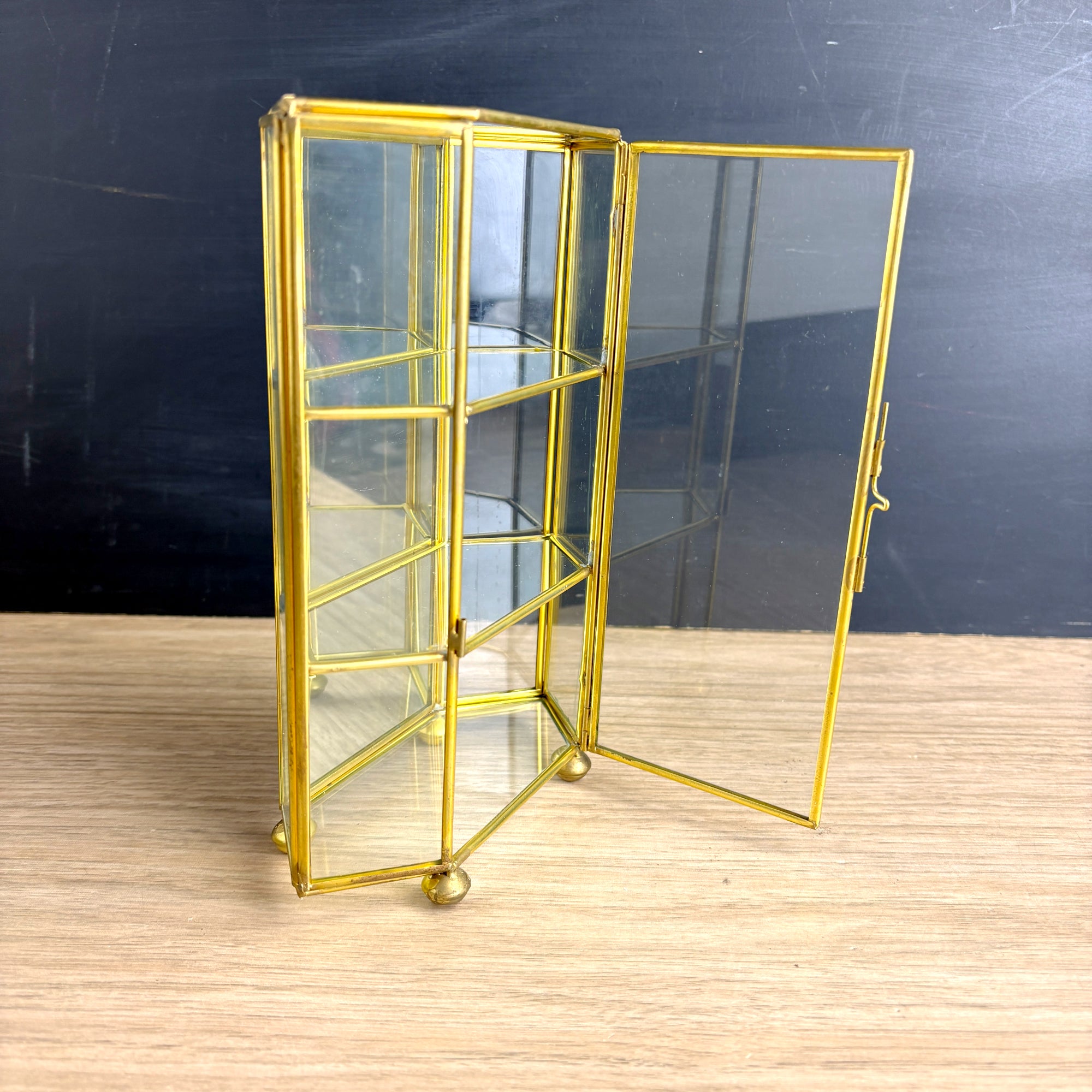 Glass and brass mini display case with mirror back - vintage curio - 3 tier