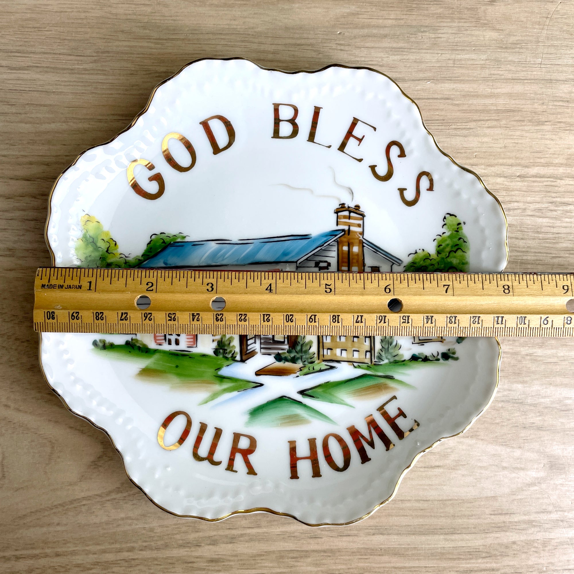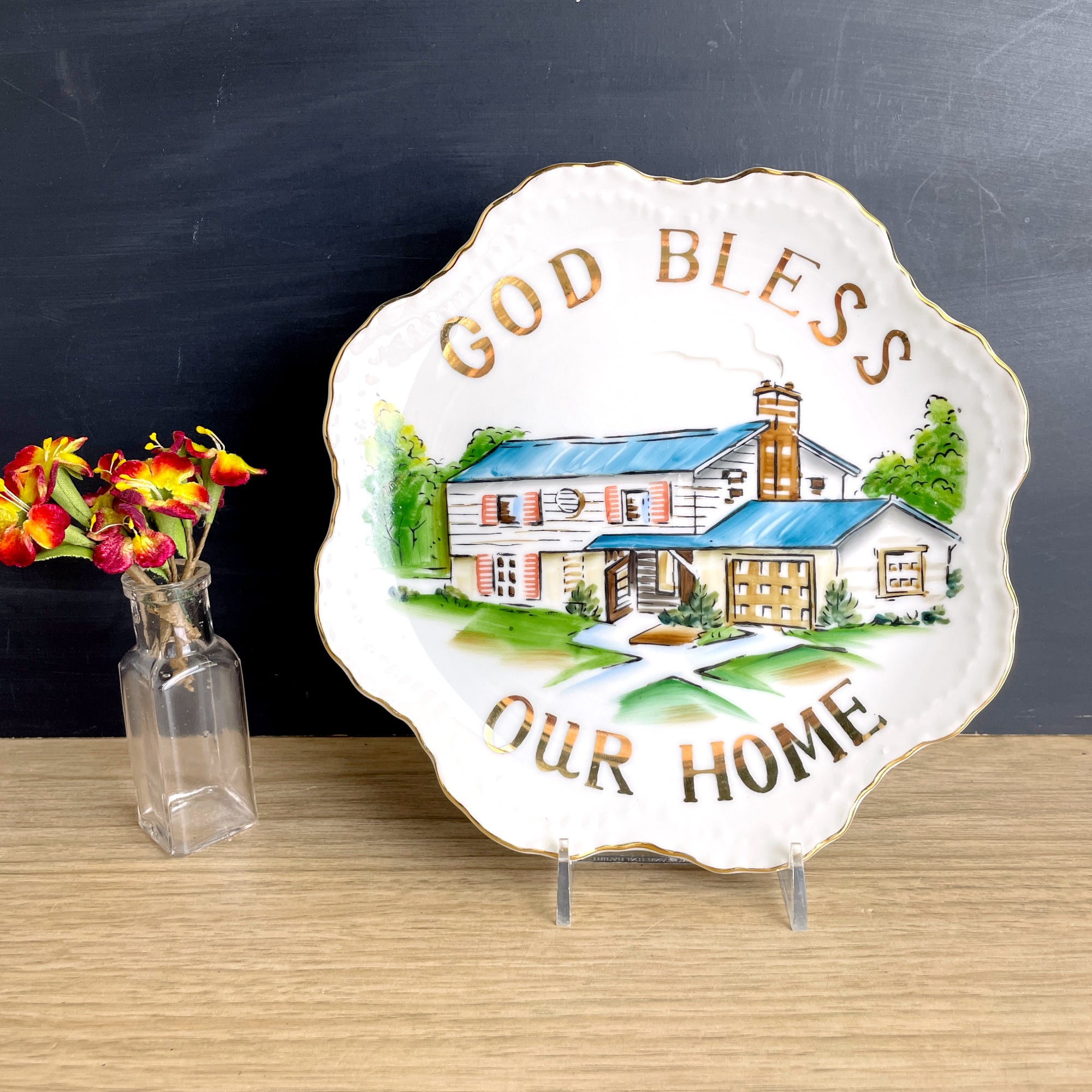 God Bless Our Home - 1960s vintage Lefton wall plate