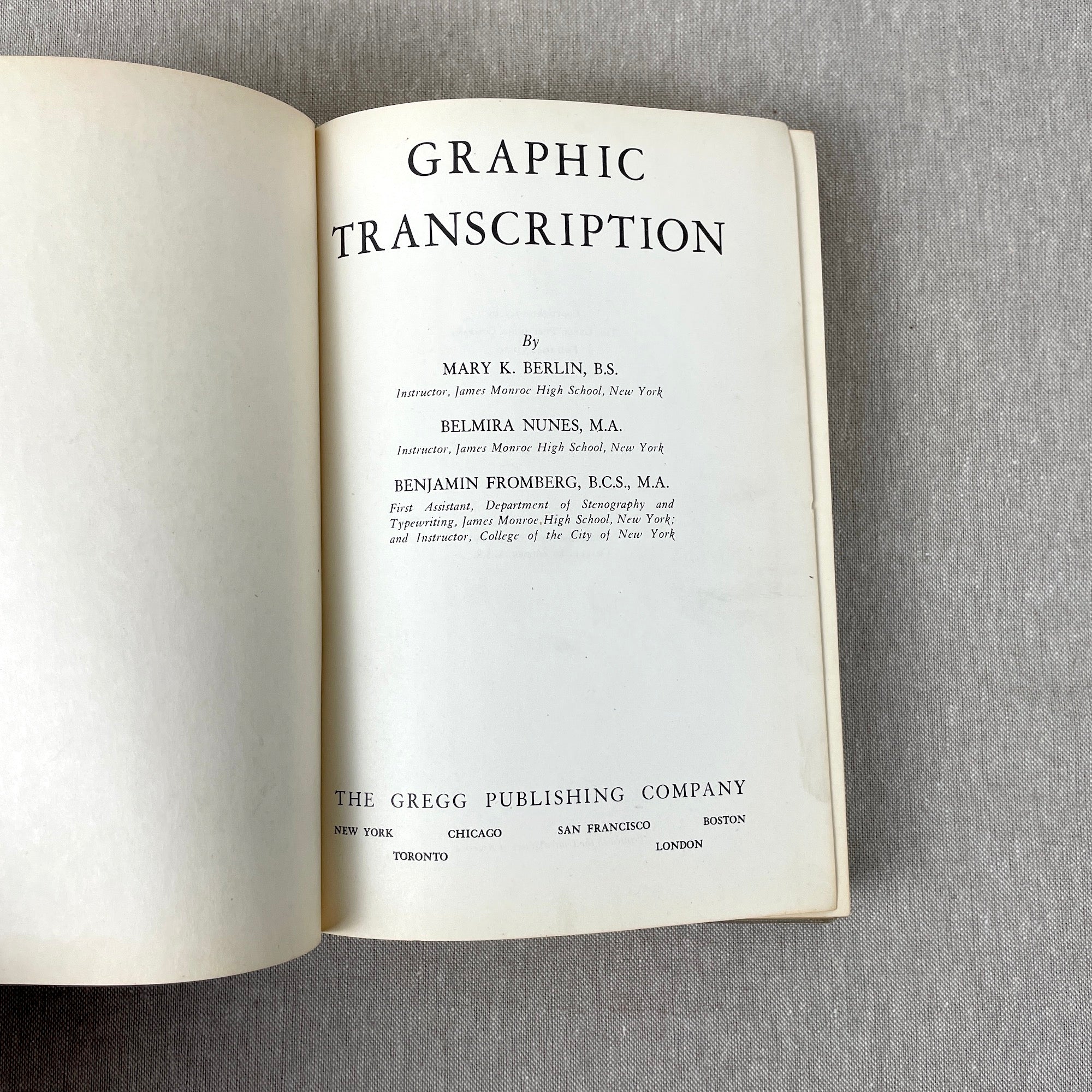 "Graphic Transcription" by Mary K. Berlin, Belmira Nunes and Benjamin Fromberg. 1943 hardcover first edition. The Gregg Publishing Company.