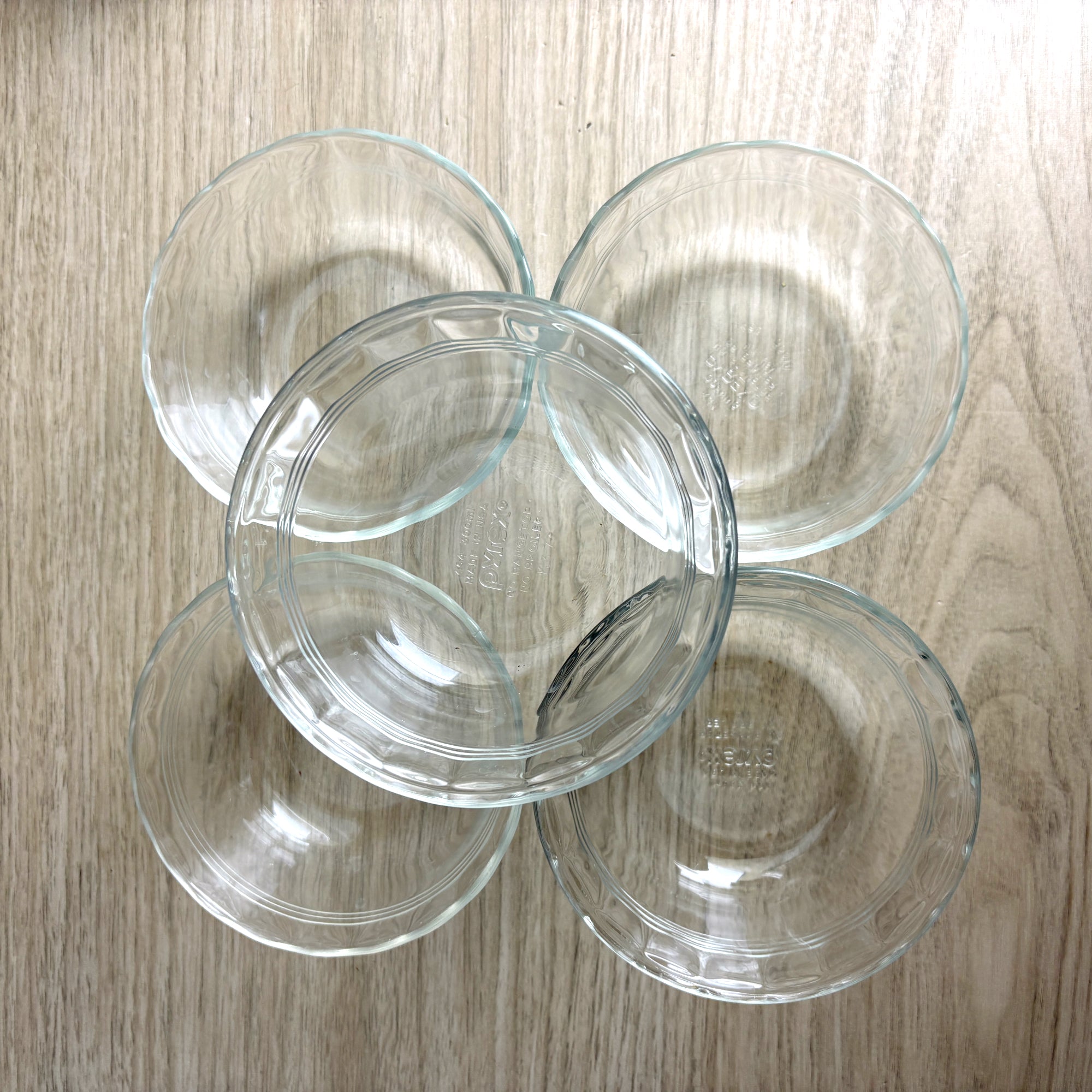 SIZE Pyrex bowls hold 9.5 ounces and measure 2" tall x 4.75" diameter at the rim. Overall size of the server is 9.5" x 9.5"