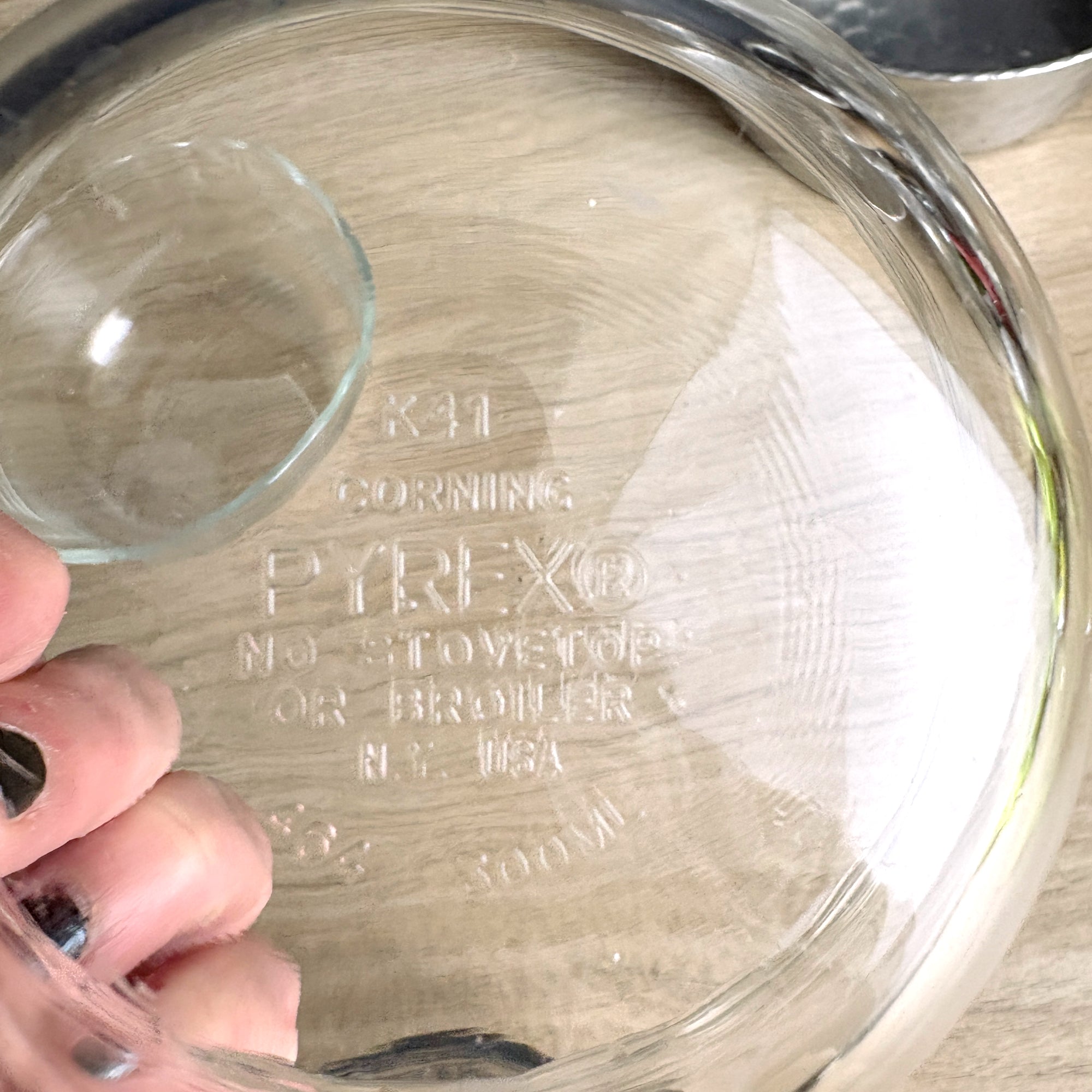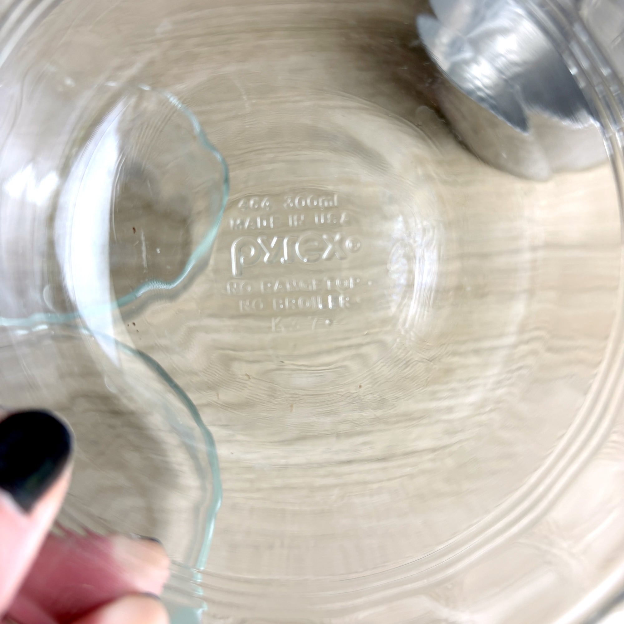 Aluminum server is from the 1960s. Pyrex custard cup bowls are a mix of 1960s and 1970s, with three different marks. But wait, there's more. You get 5 Pyrex custard cups, so there's a spare for when one of your tipsy guests tries to help you with cleaning up and it goes poorly.