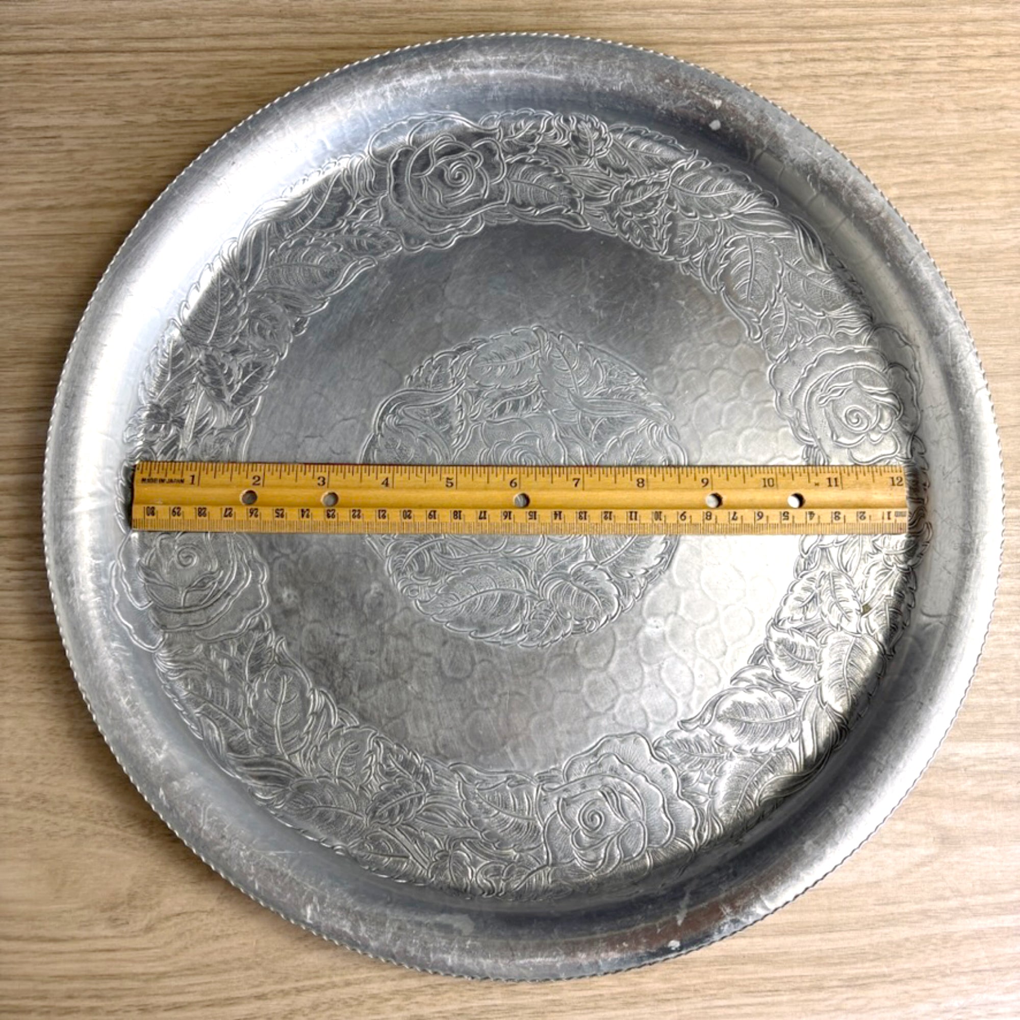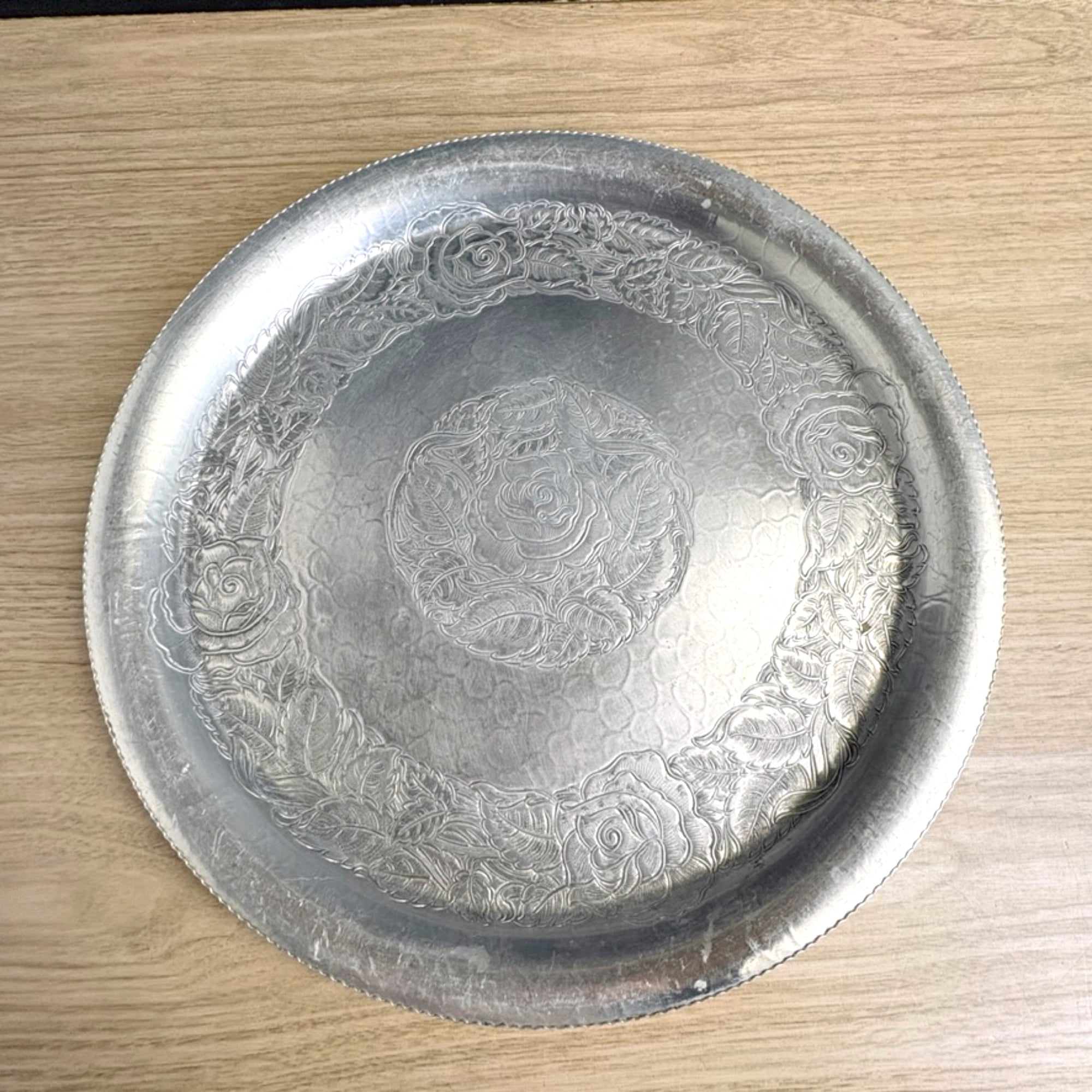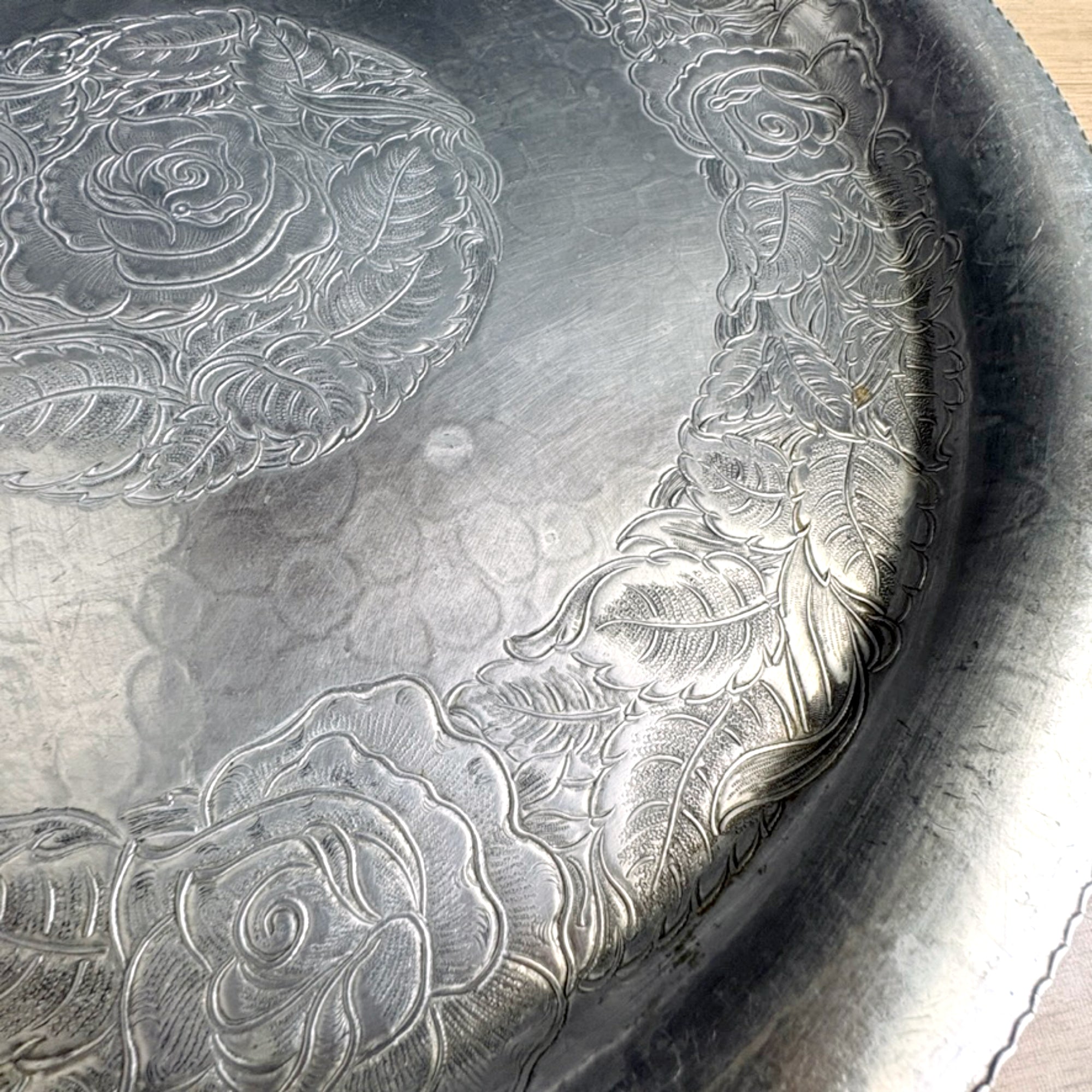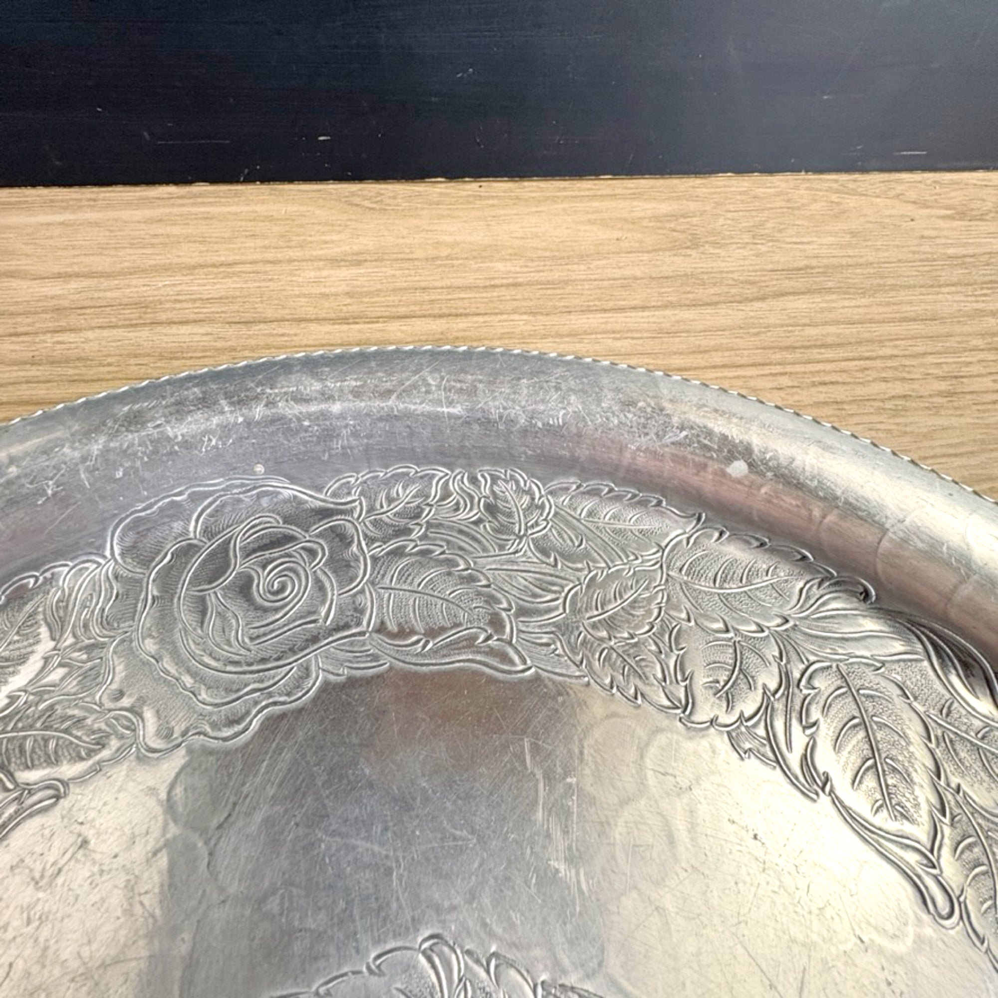Hammered Aluminum Lazy Susan and matching tray - vintage 1950s Gailstyn roses