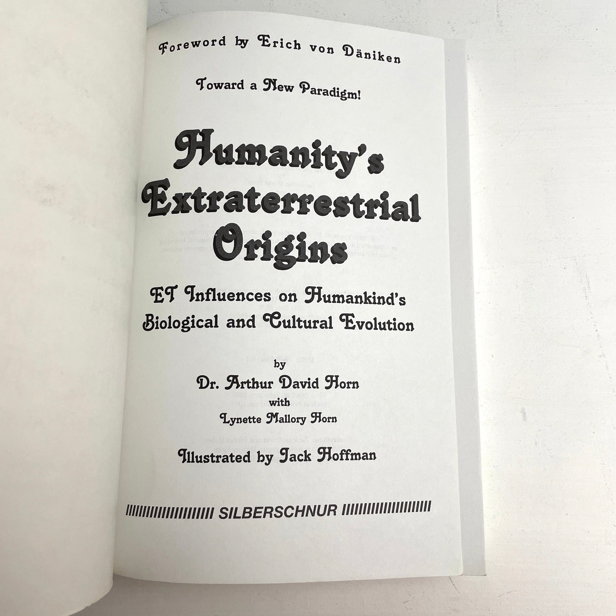 "Humanity's Extraterrestrial Origins: ET Influences on Humankind's Biological and Cultural Evolution," by Dr. Arthur David Horn with Lynette Anne Mallory-Horn. Illustrated by Jack Hoffman. 1997. 2nd printing. Silberschnur.
