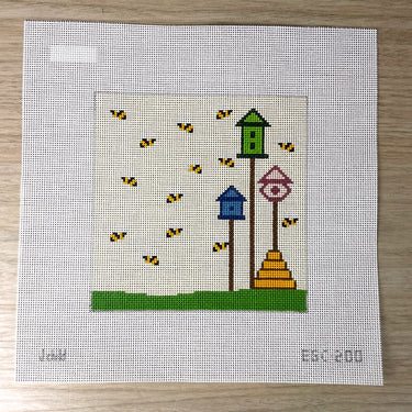 J Child bees and birdhouses eyeglass case needlepoint canvas #EGC200