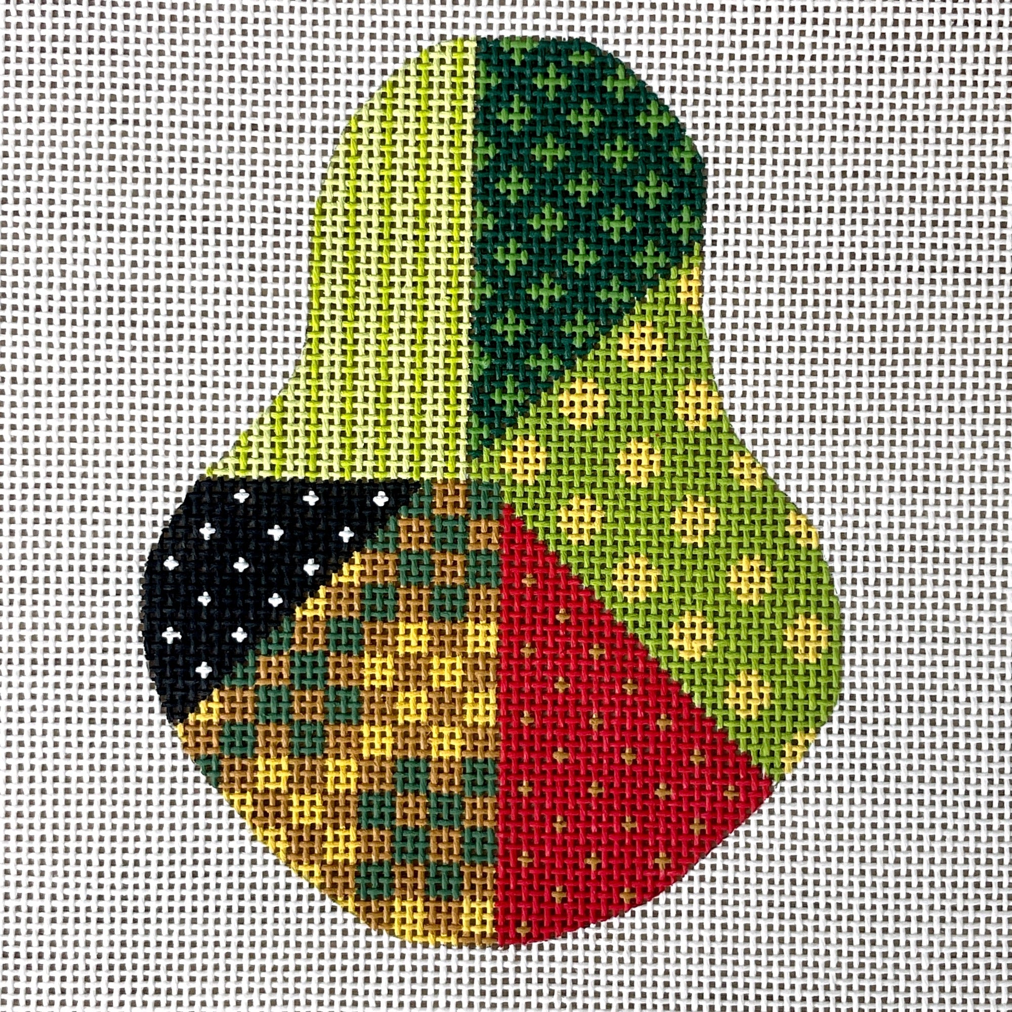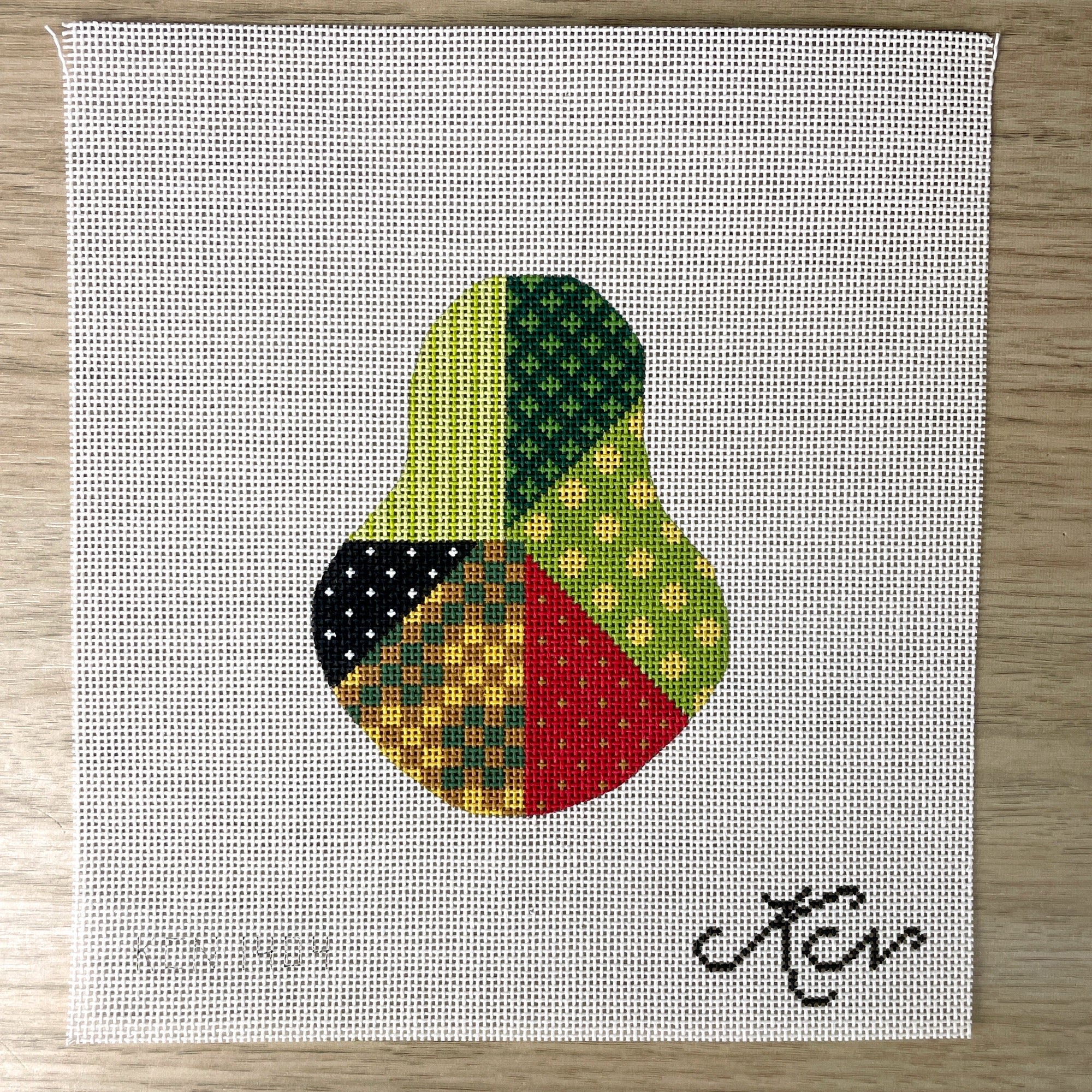 Kelly Clark Crazy Quilt Pear ornament needlepoint canvas #KCN1404