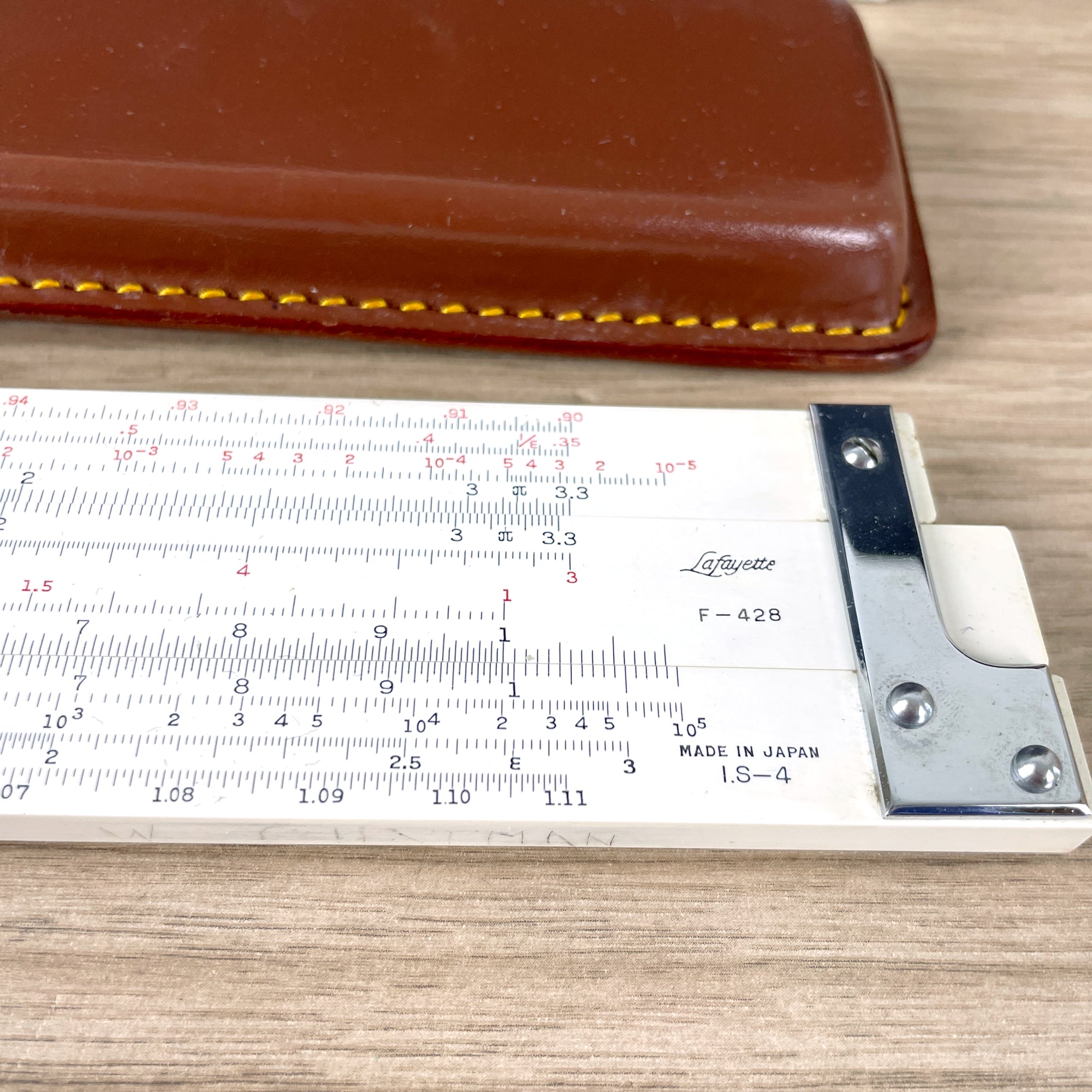Vintage LaFayette F-428 slide rule with leather case in original box.  Made in Japan.