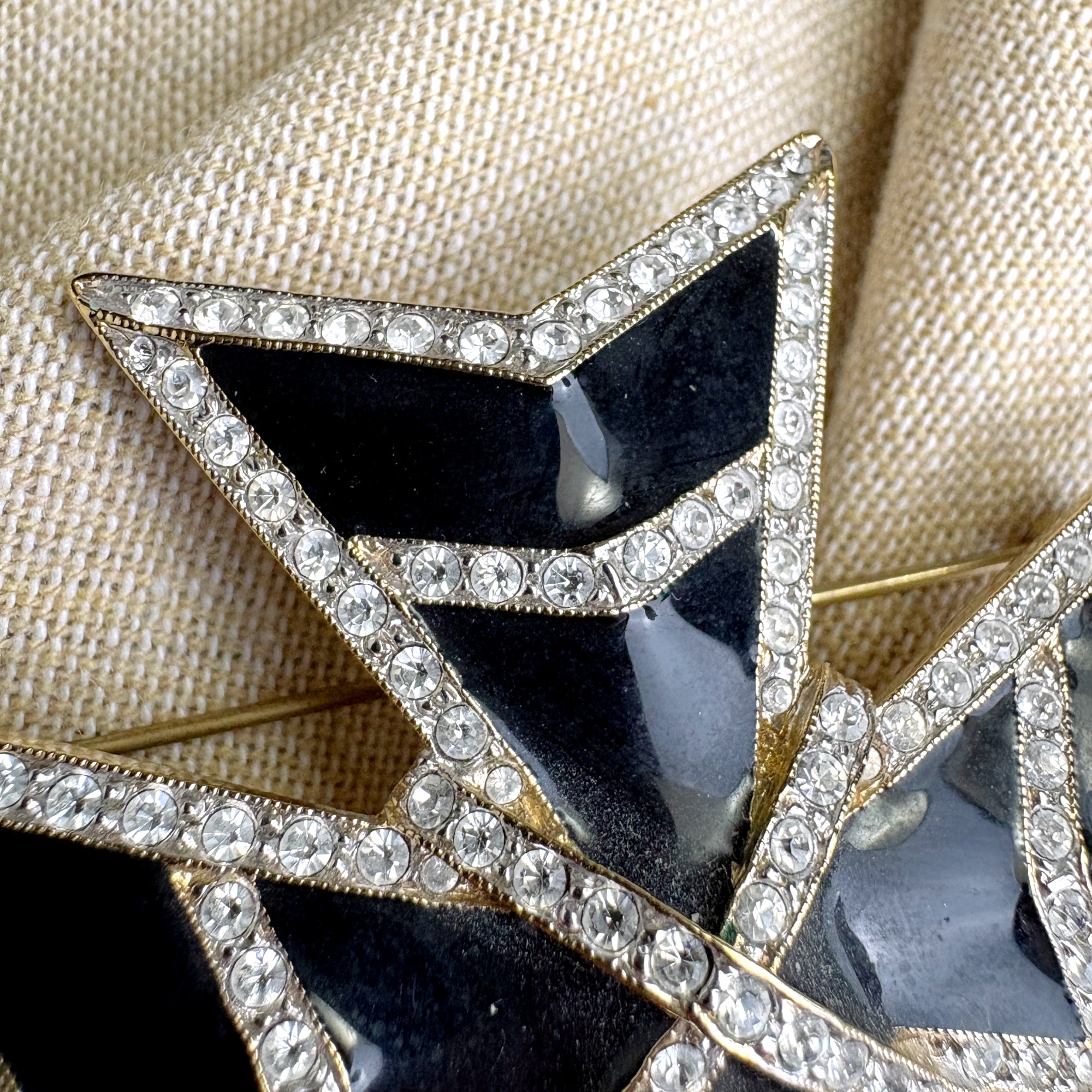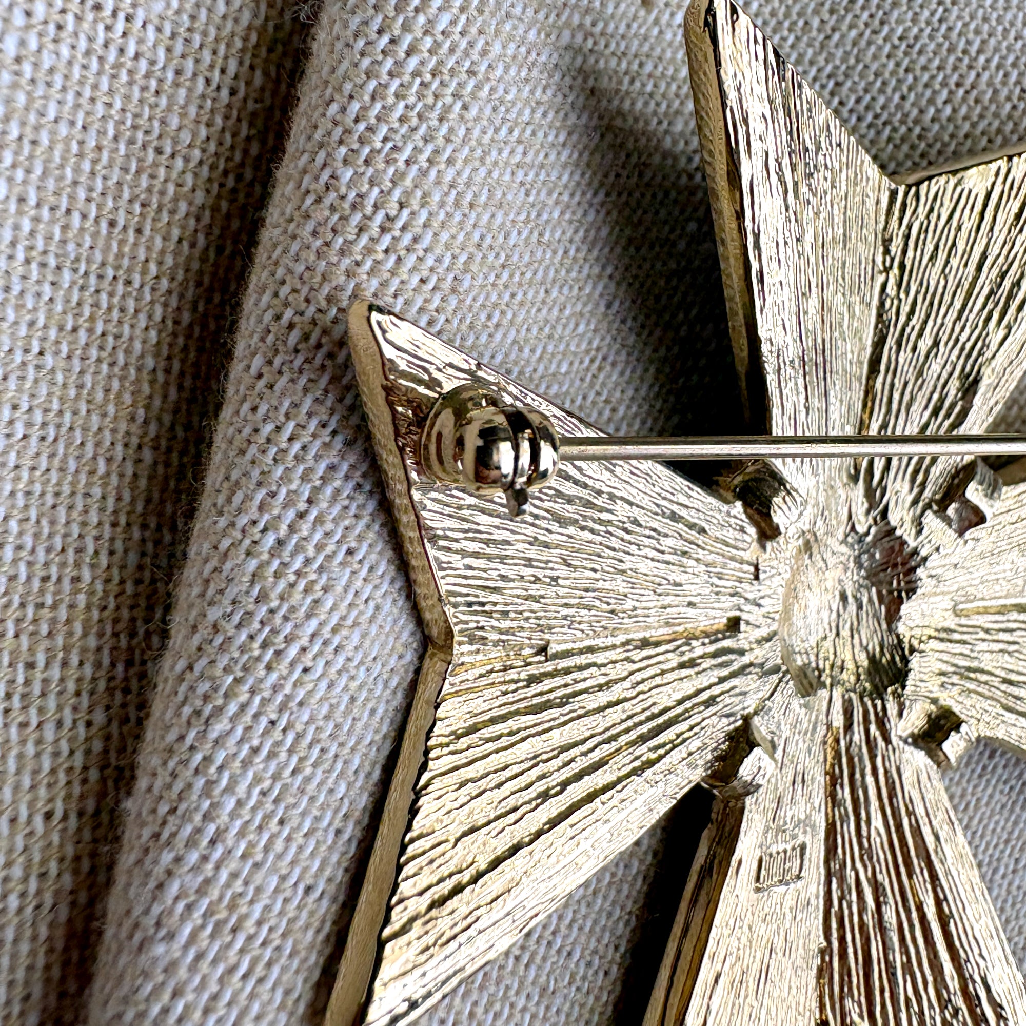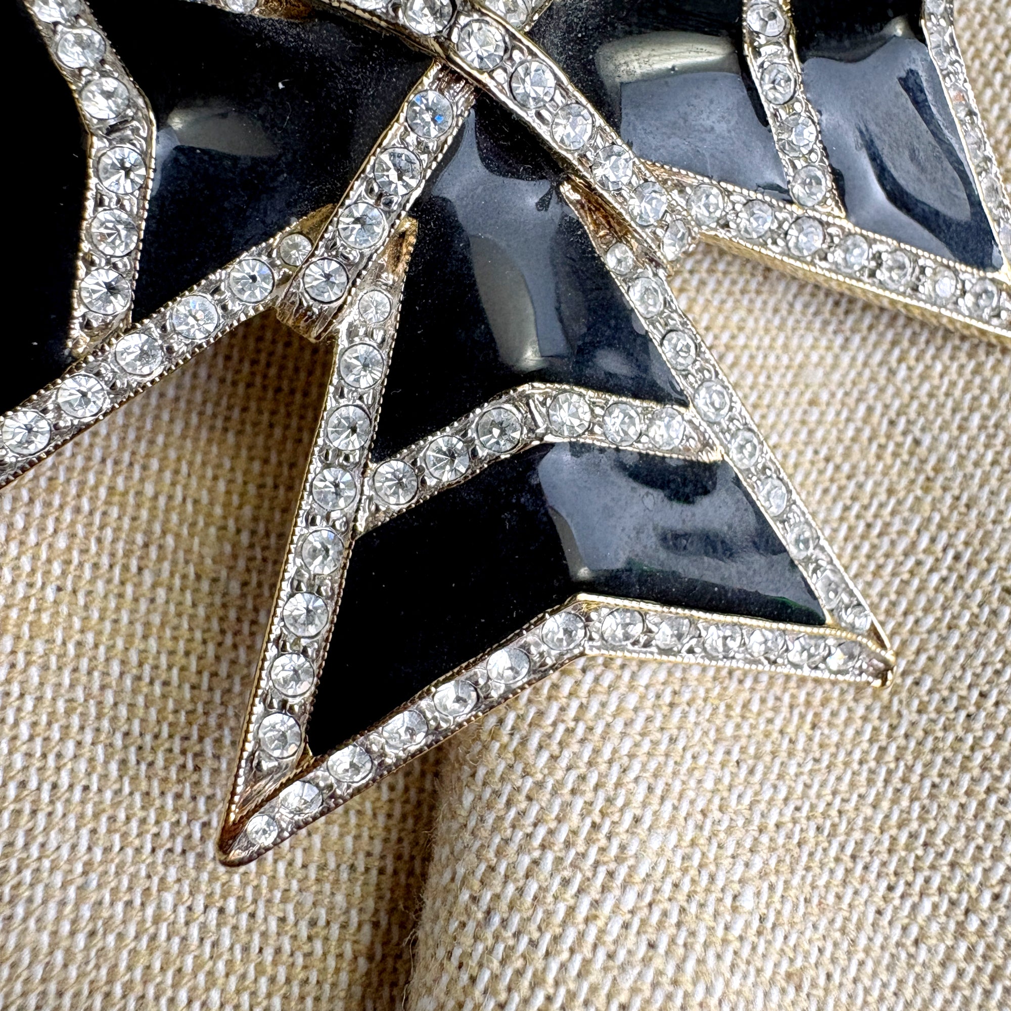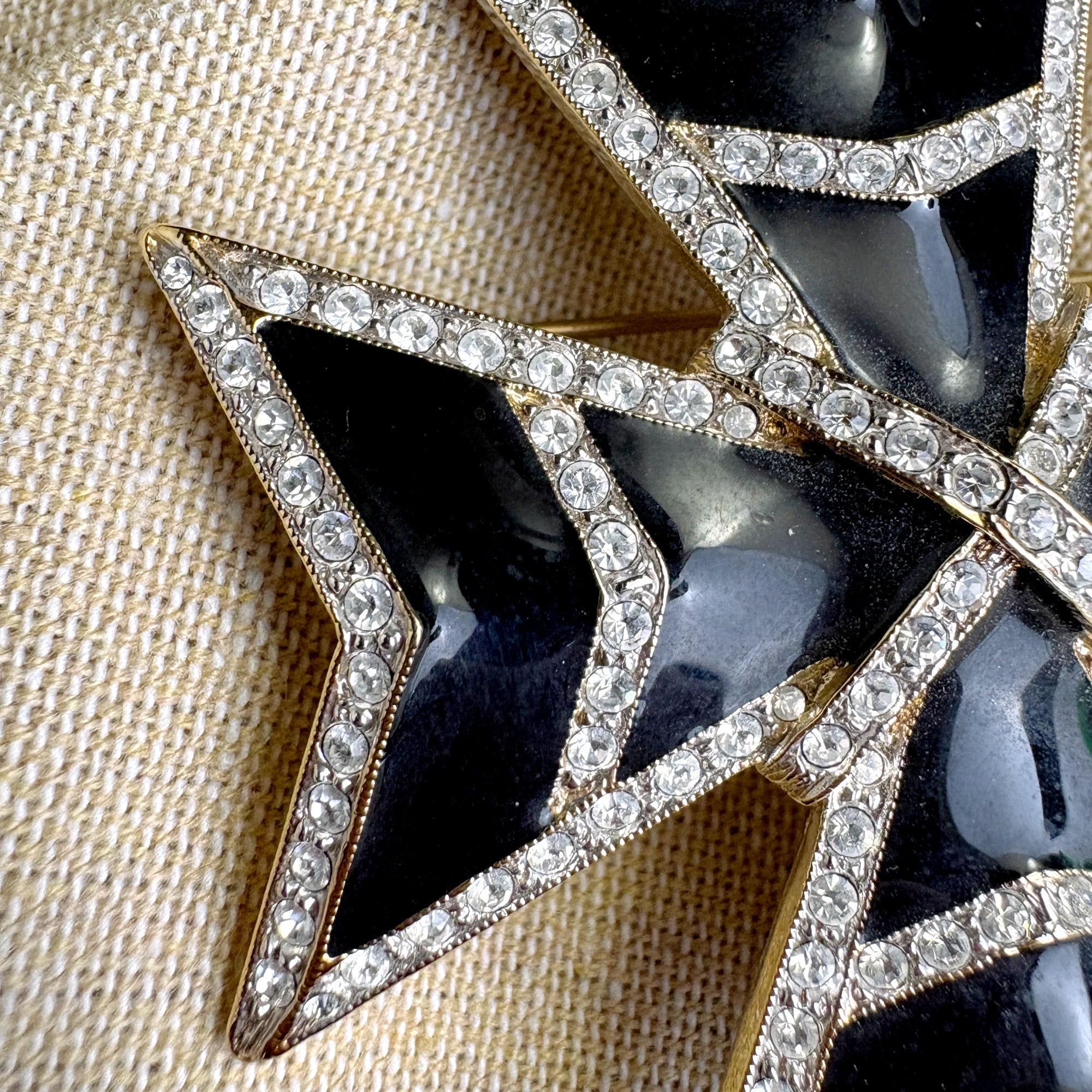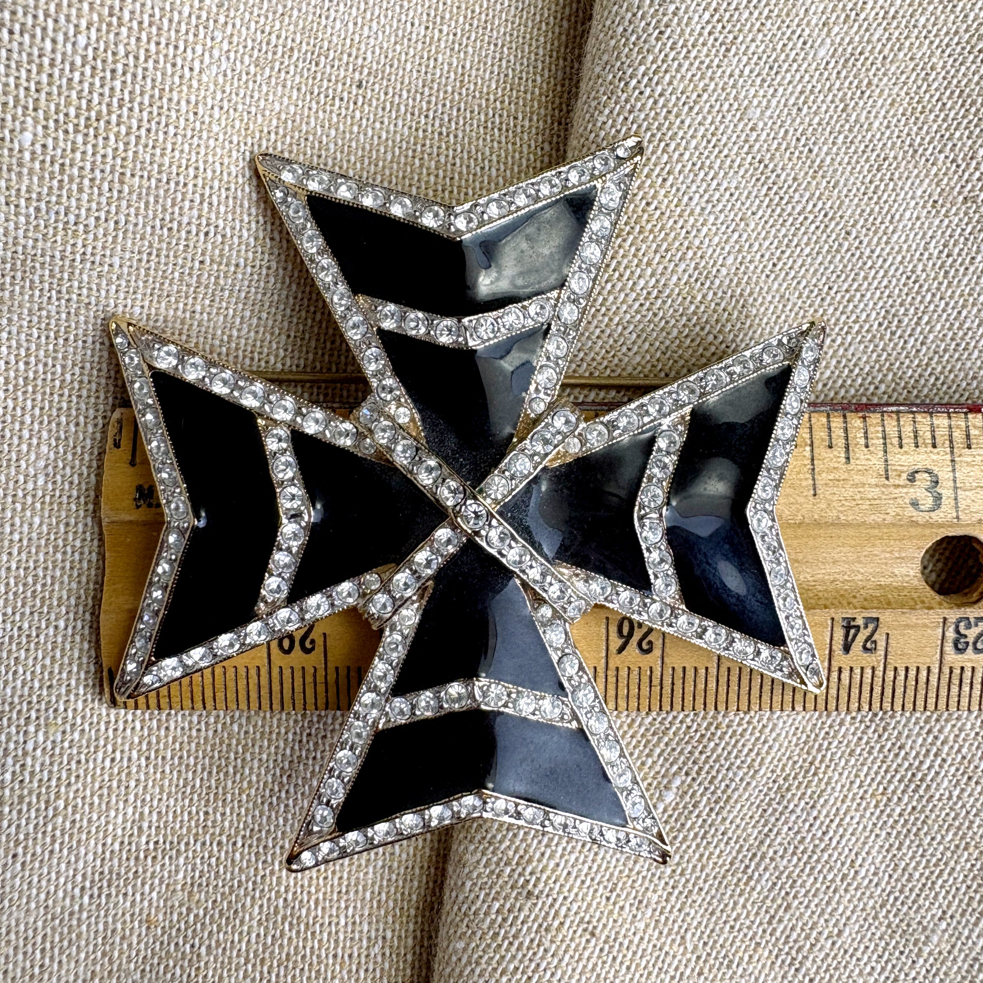 Landau crystal and black enamel / resin Maltese Cross brooch