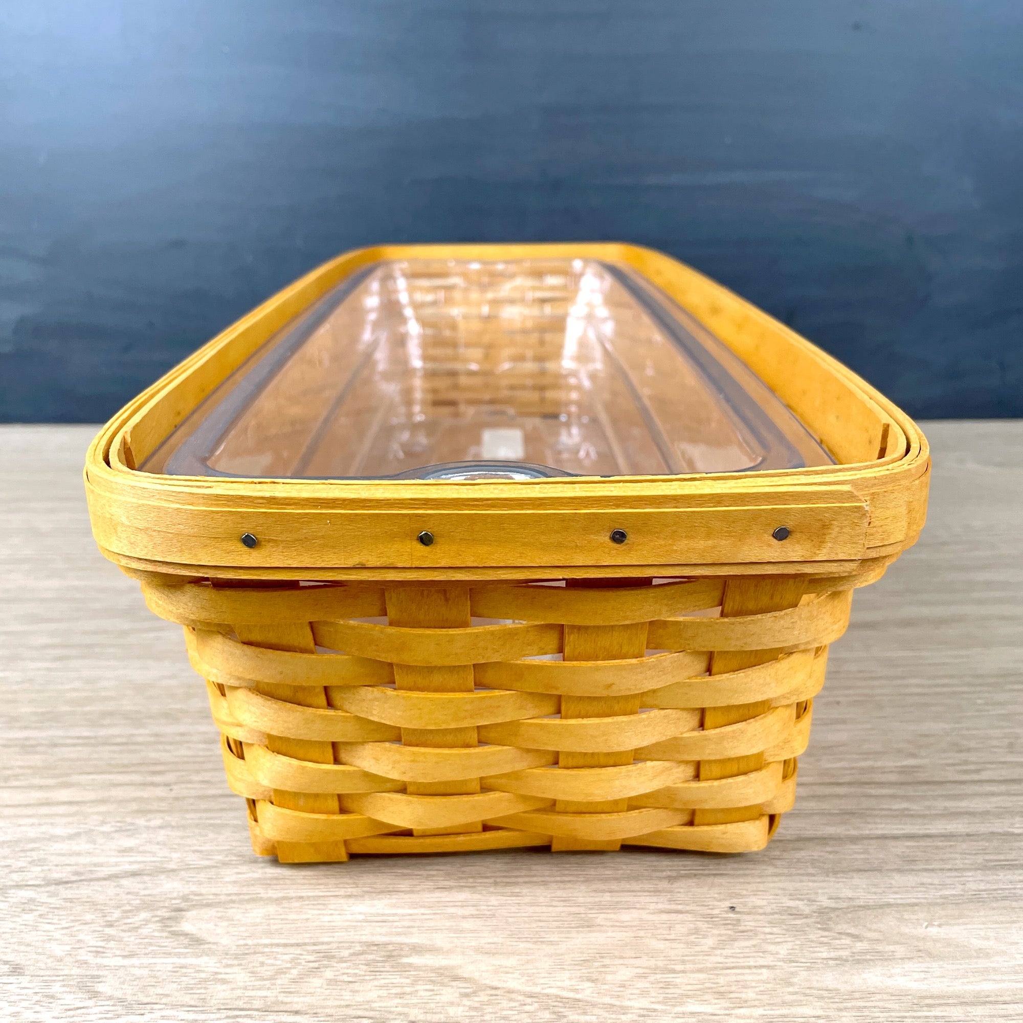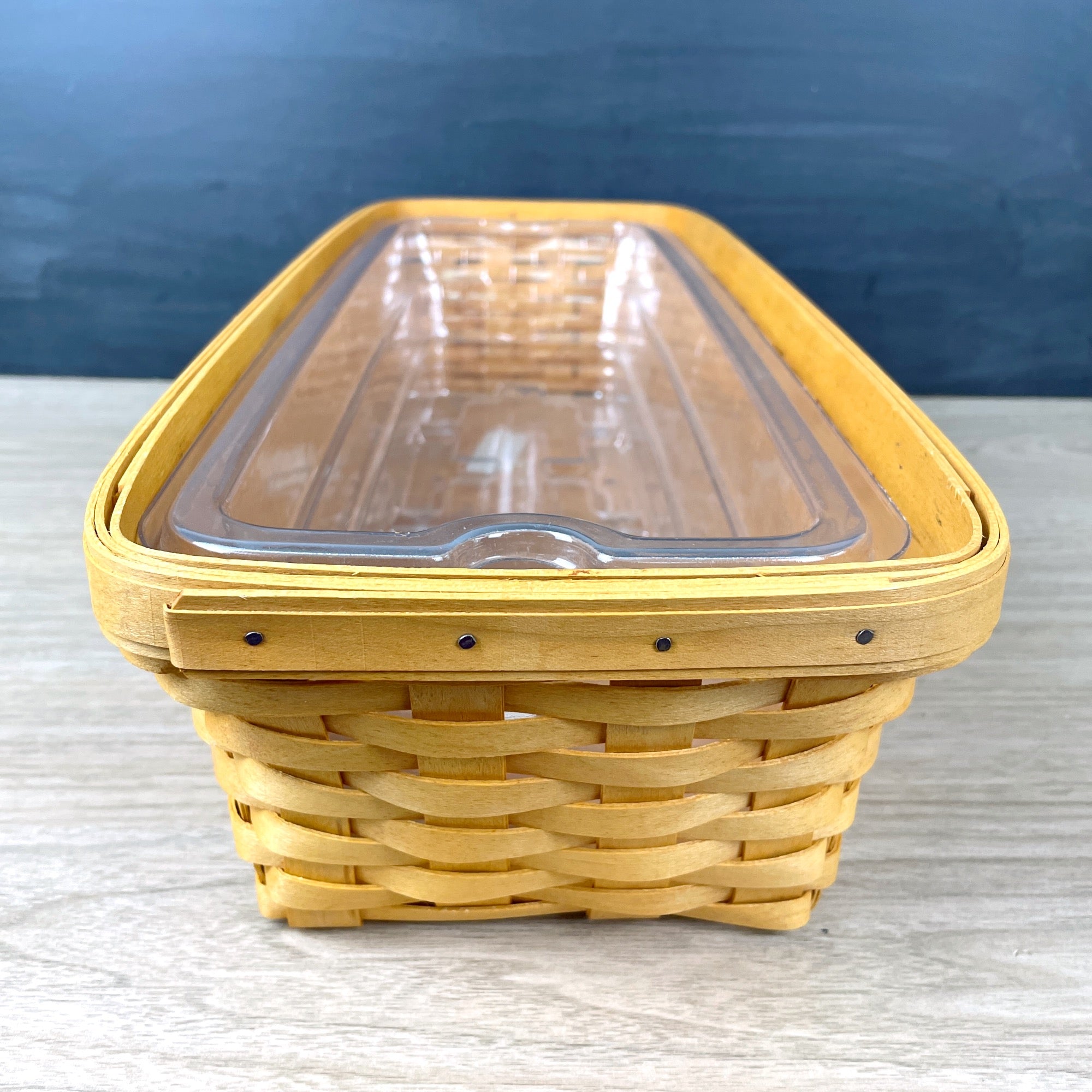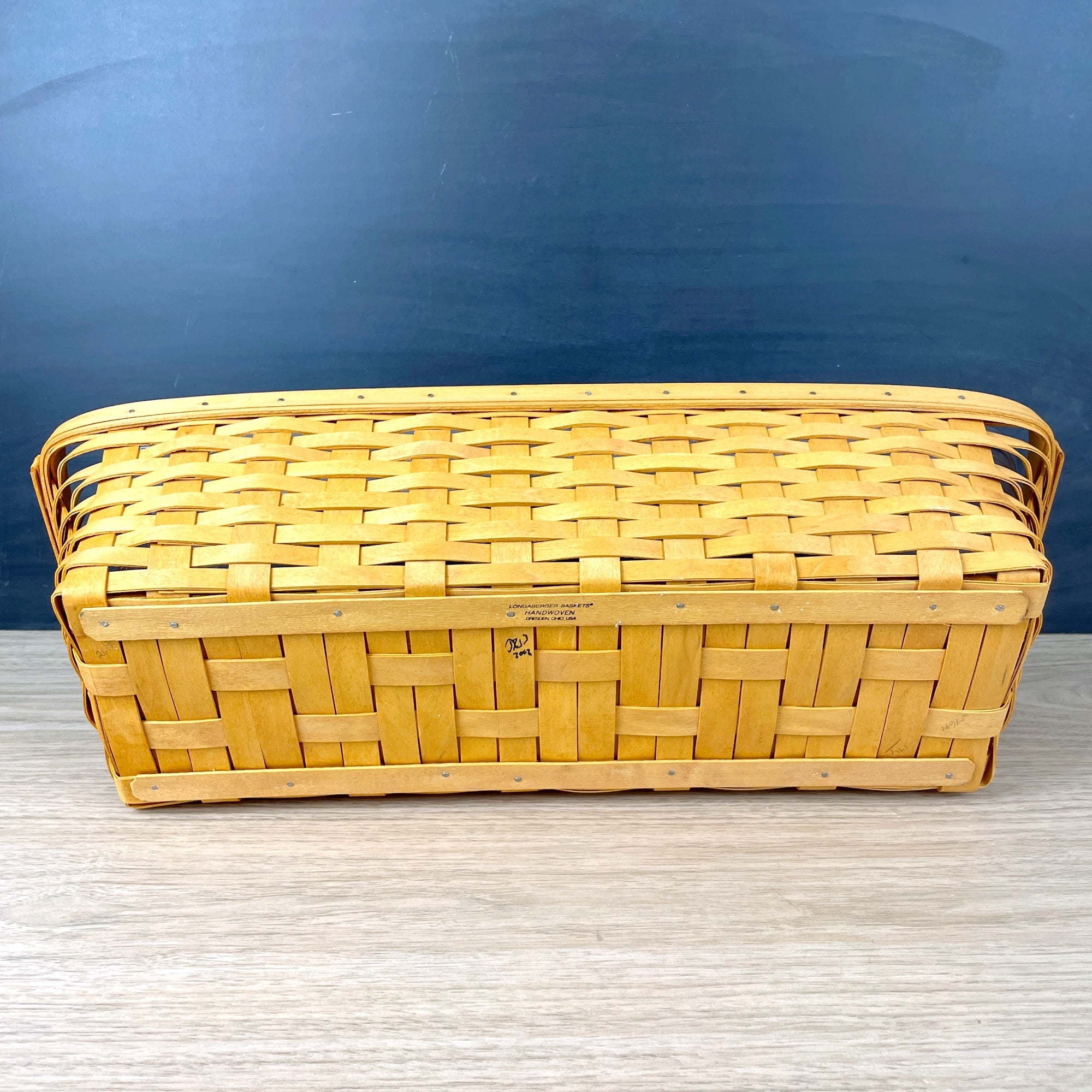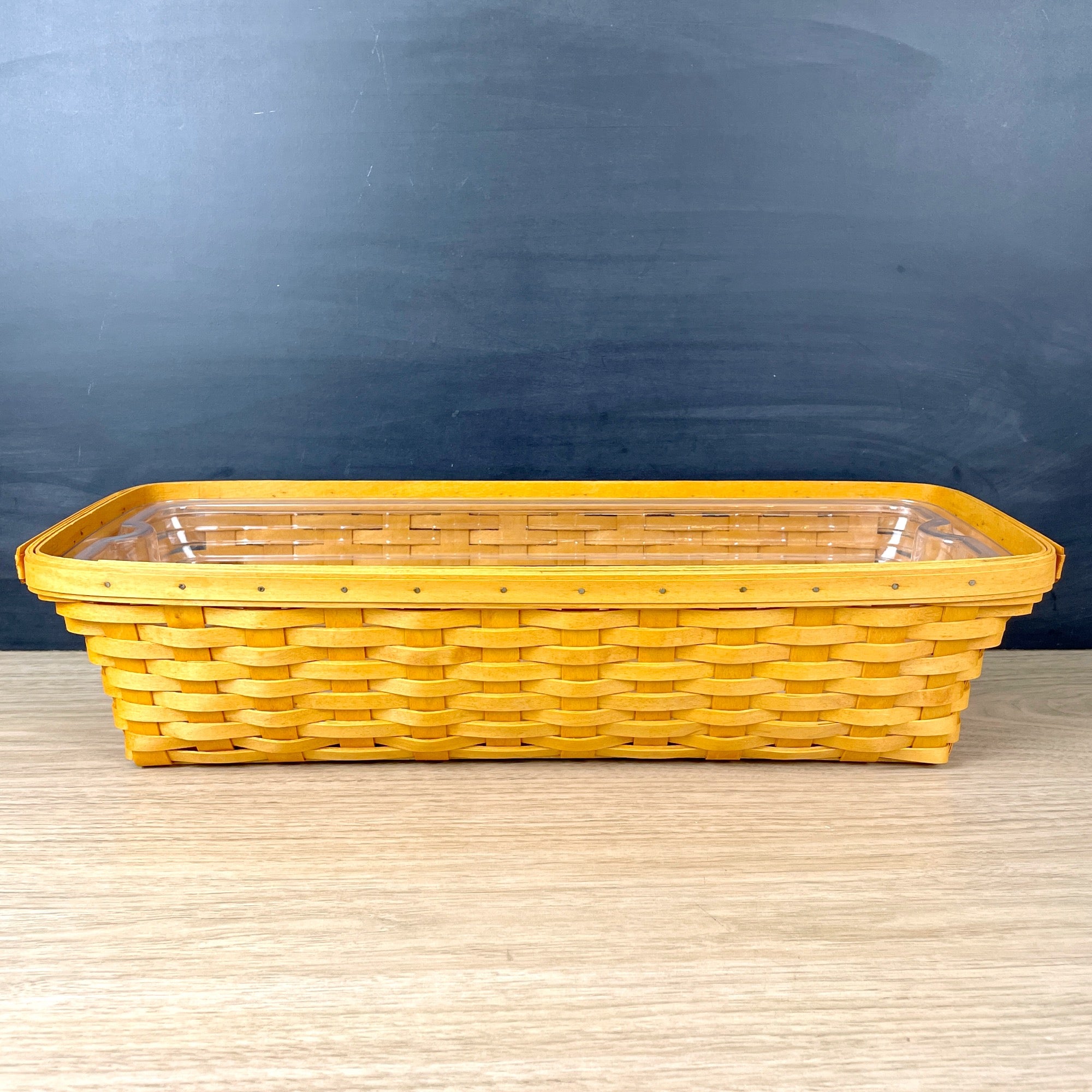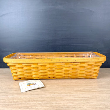 Unused Longaberger hand woven window box basket with planting insert protector. Basket is product #16977.