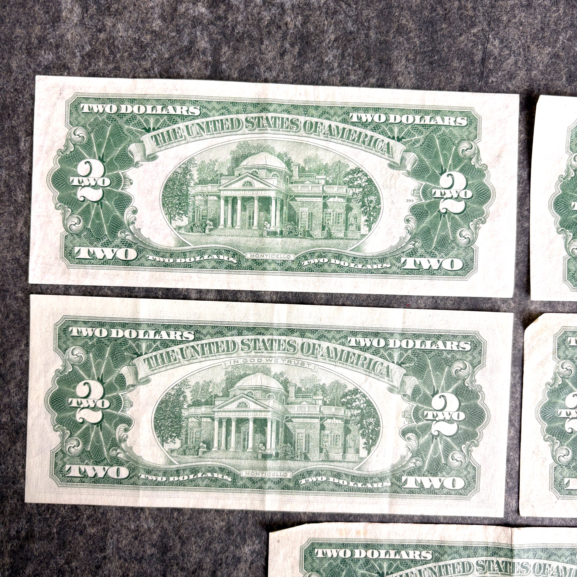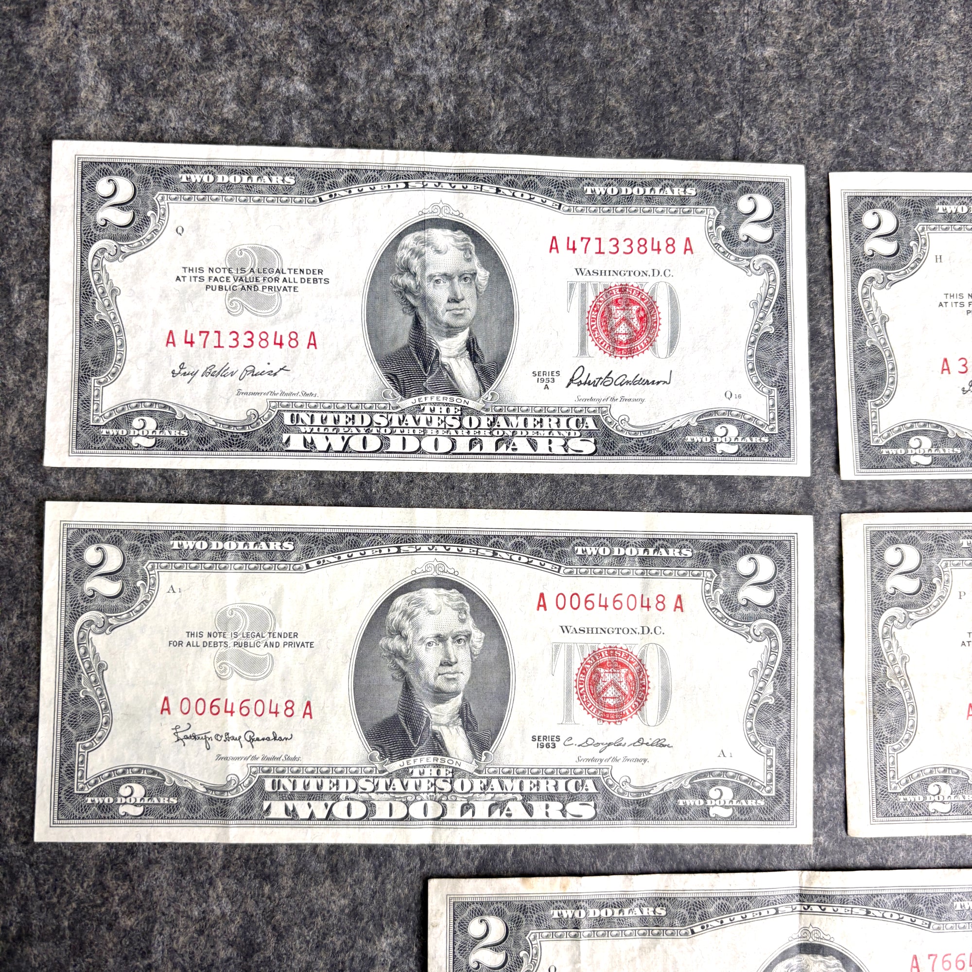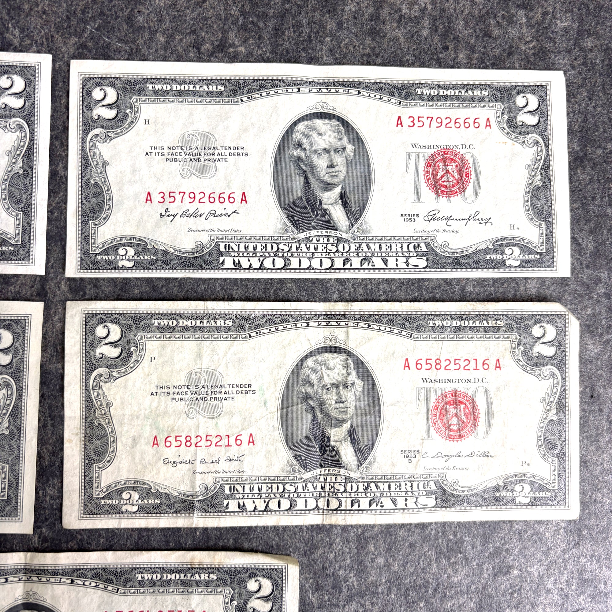 5 Vintage Red Seal $2 Bills – 1953 to 1963 Series – U.S. Note Circulated Legal Tender