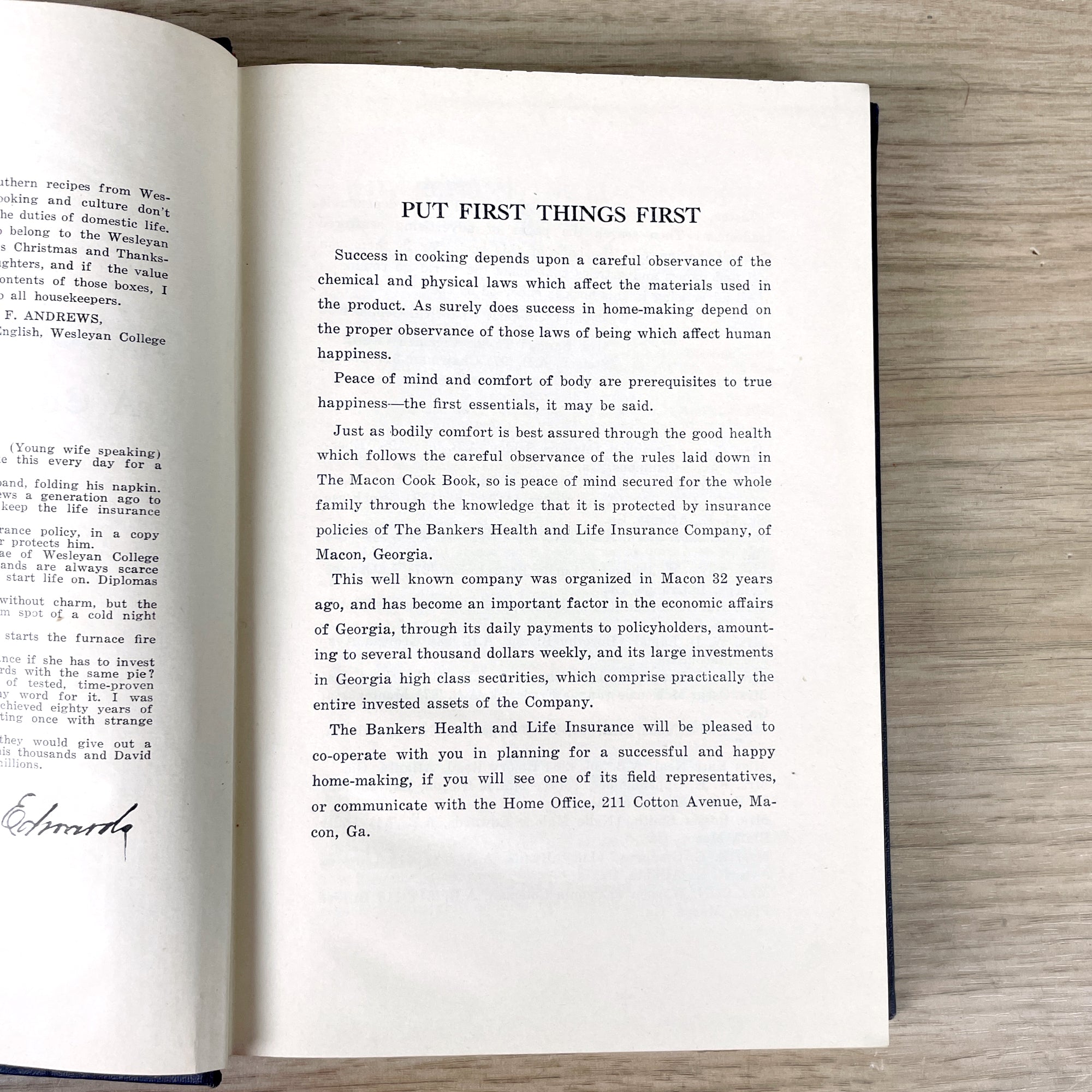 Macon Cook Book - Wesleyan College Alumnae - 1936 hardcover