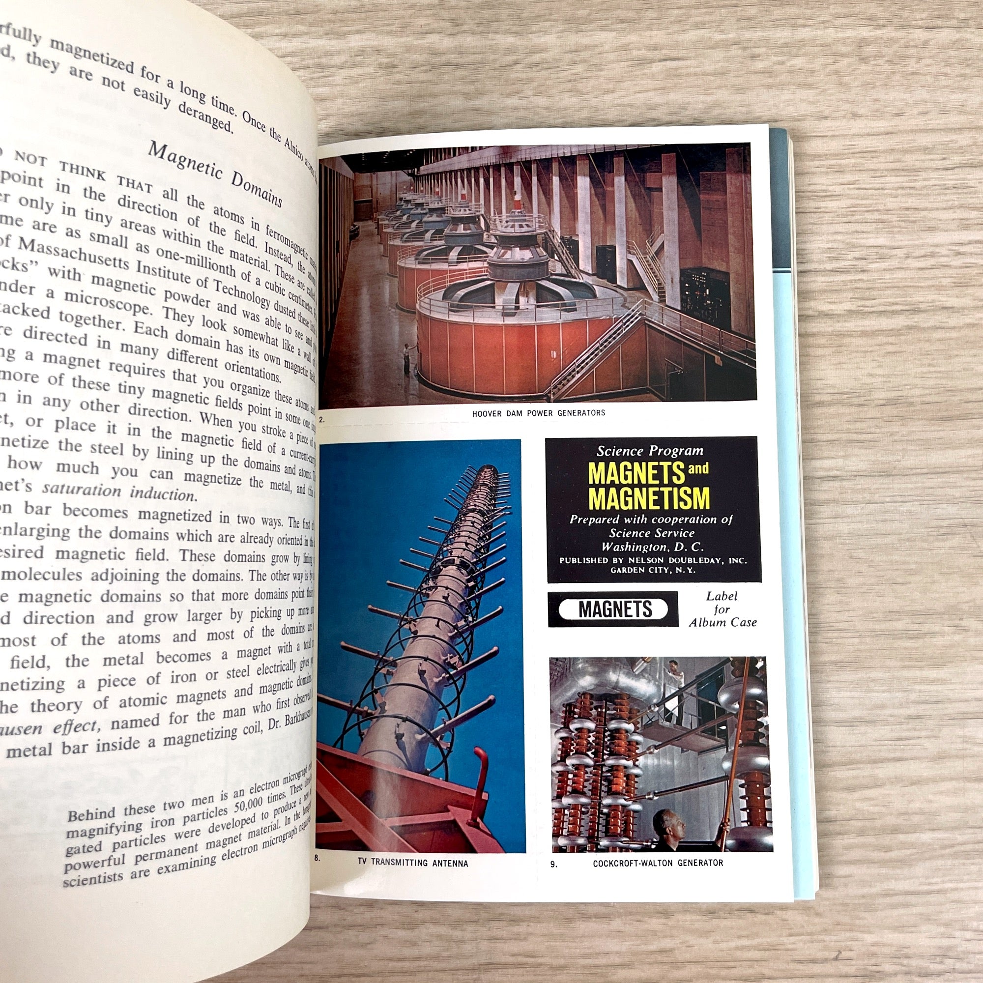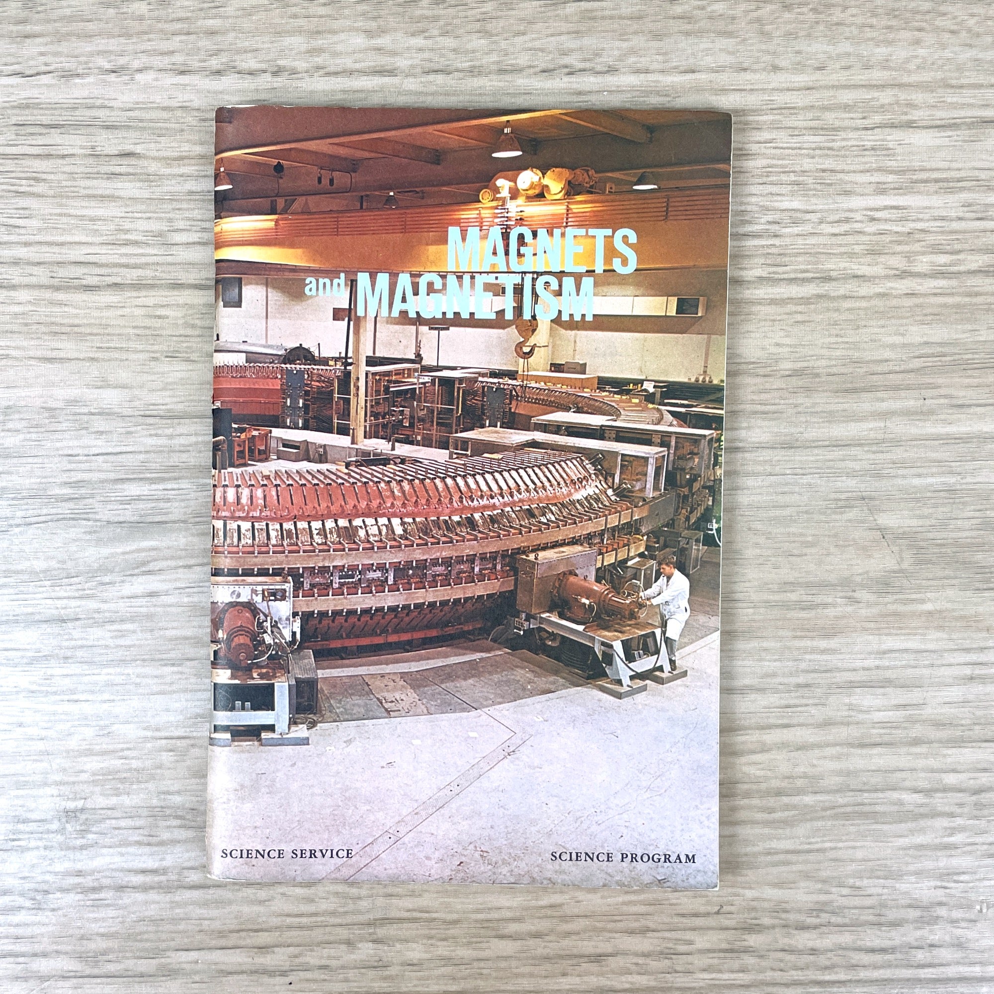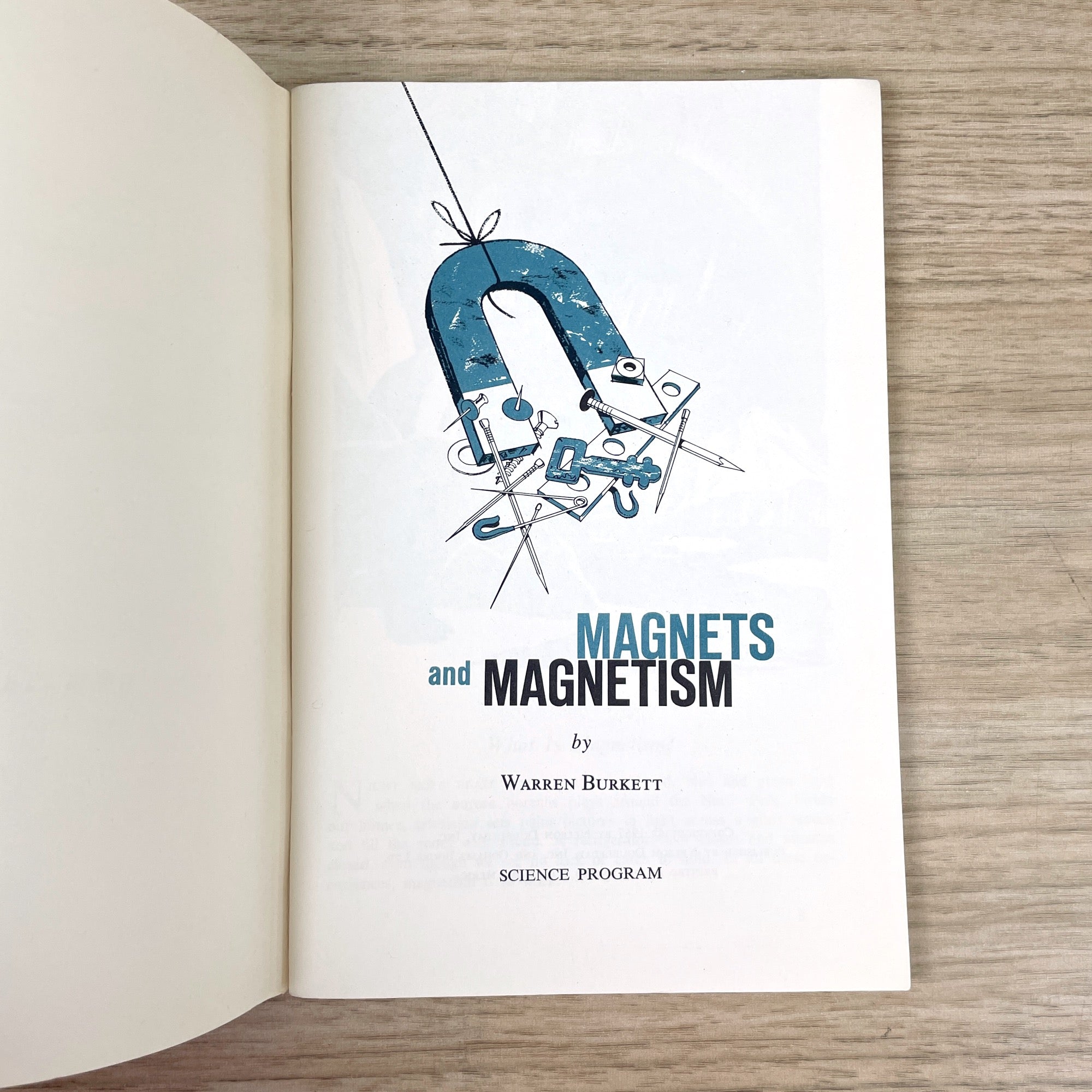 "Magnets and Magnetism" by Warren Burkett. Part of the Science Service Science Program. 1967. Nelson Doubleday, Inc. Paperback booklet with saddle staples. Sticker page insert.