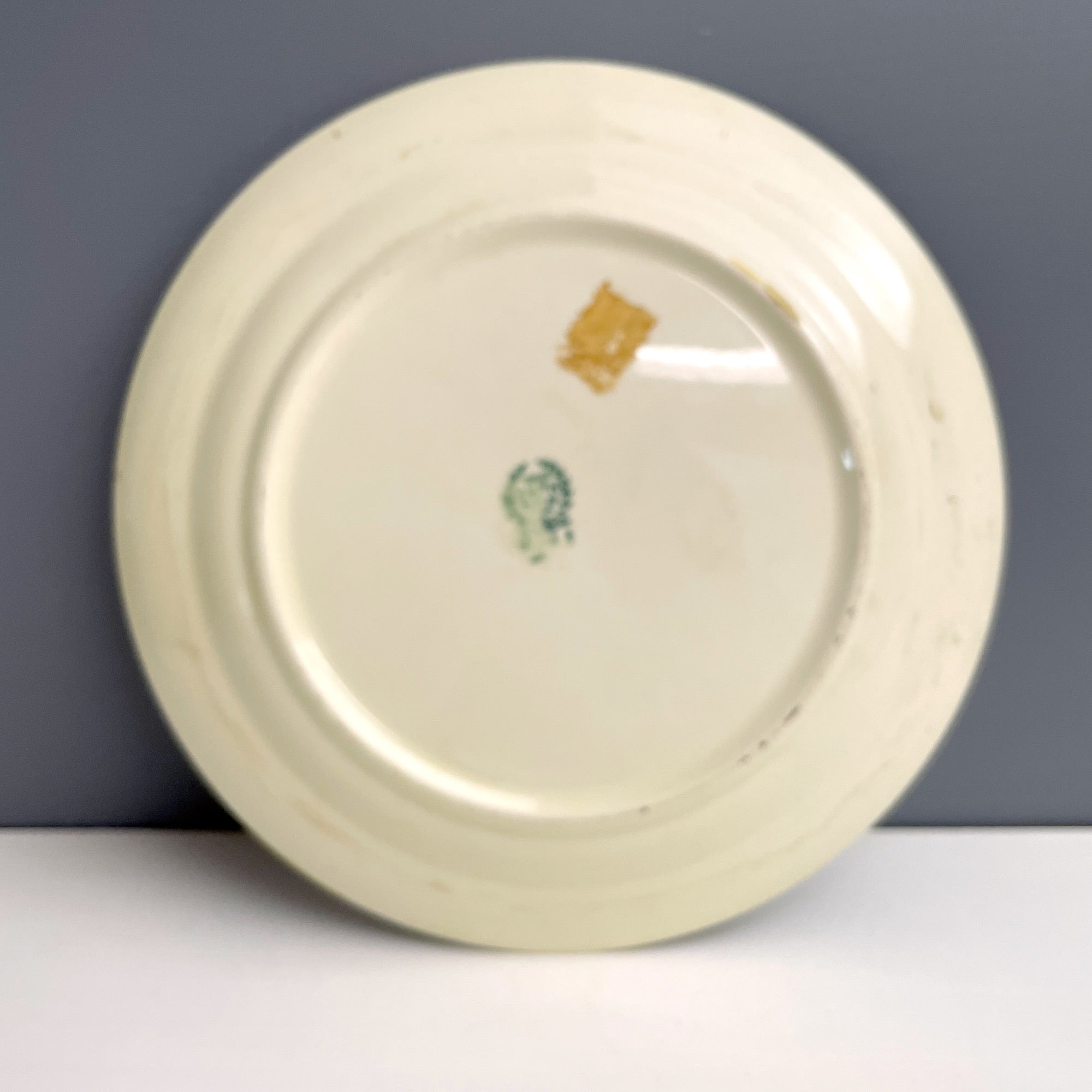 Creamy white plate with forest green border stamped with gold filigree. Taylor Smith Taylor plate.