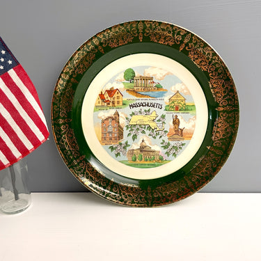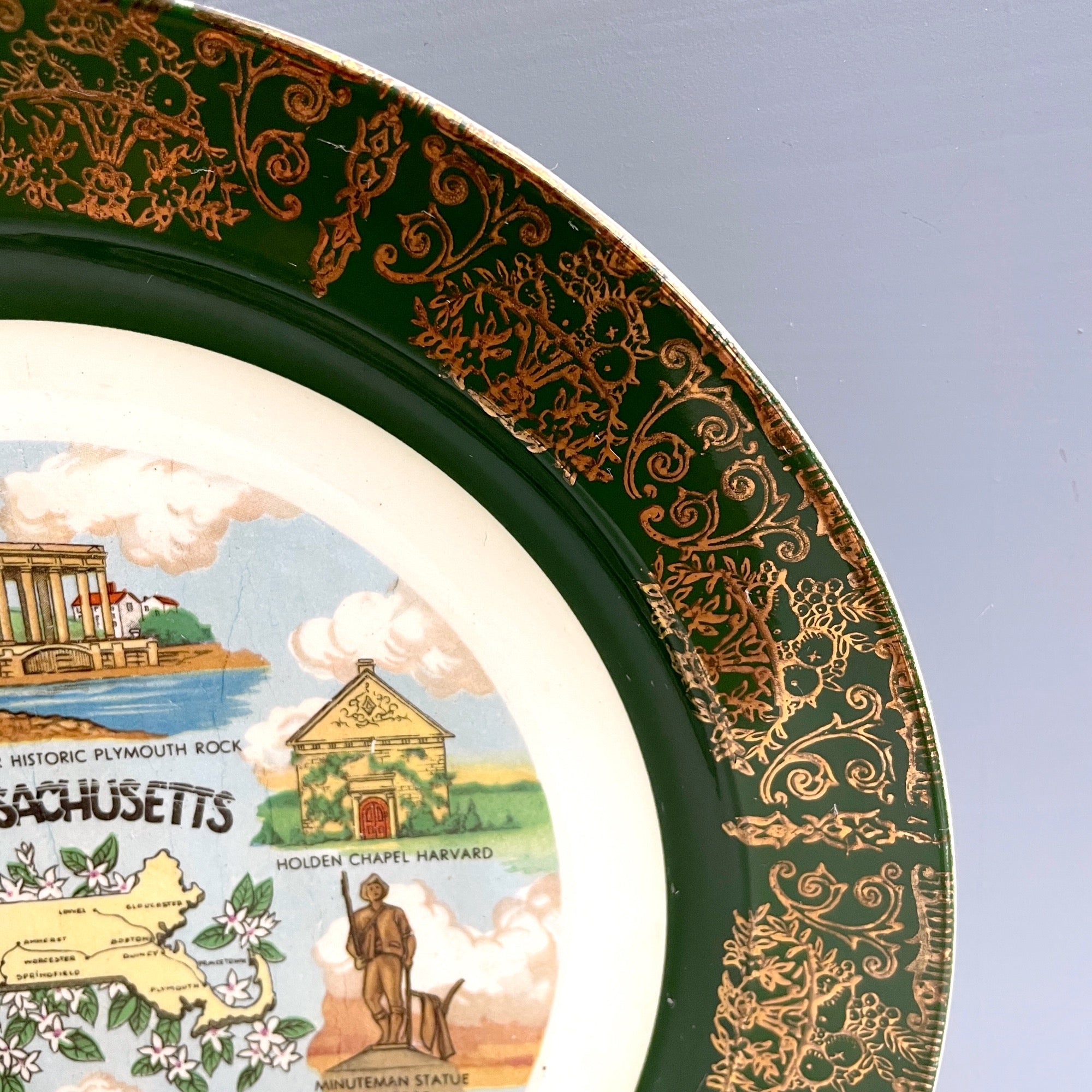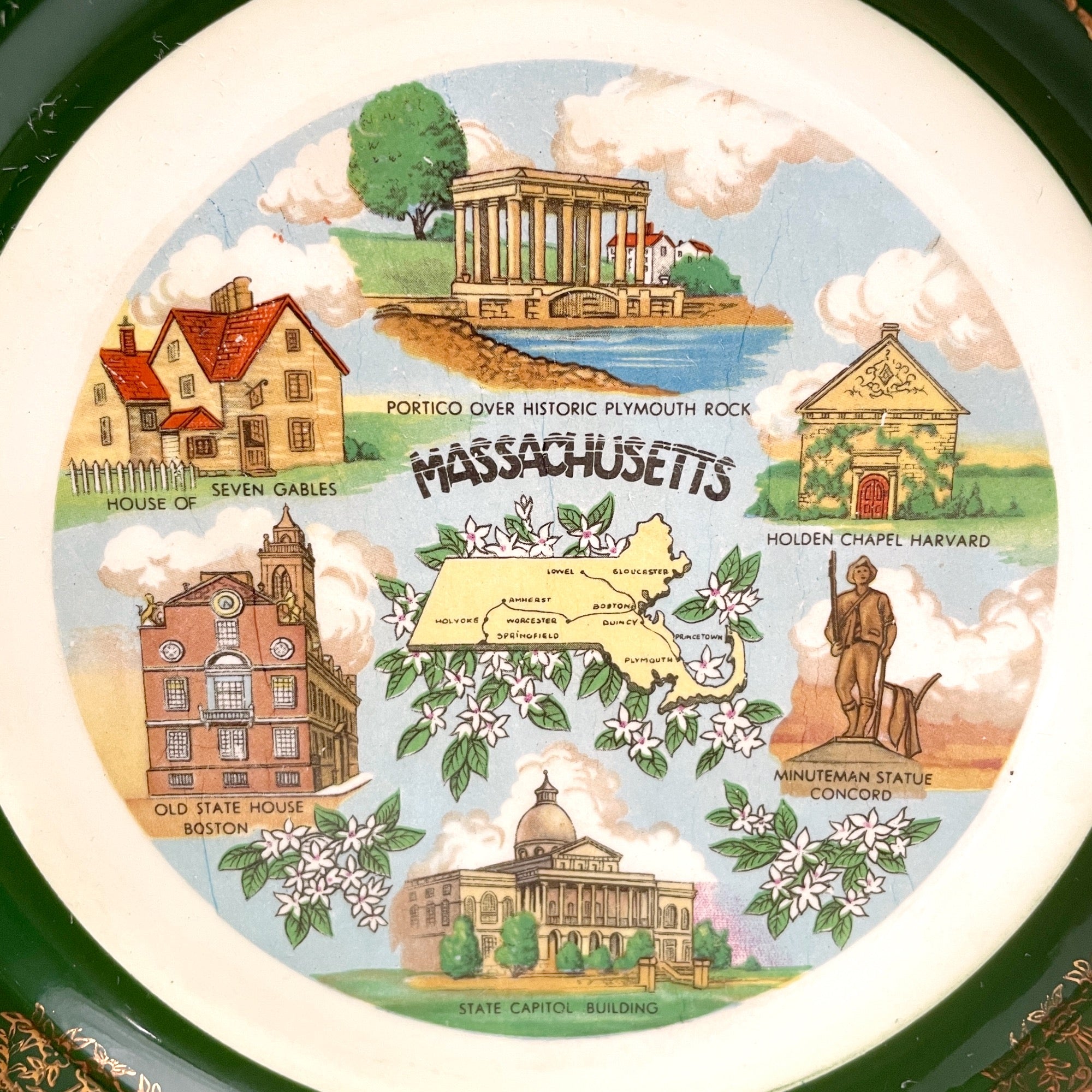 Massachusetts souvenir state plate - 1950s road trip souvenir