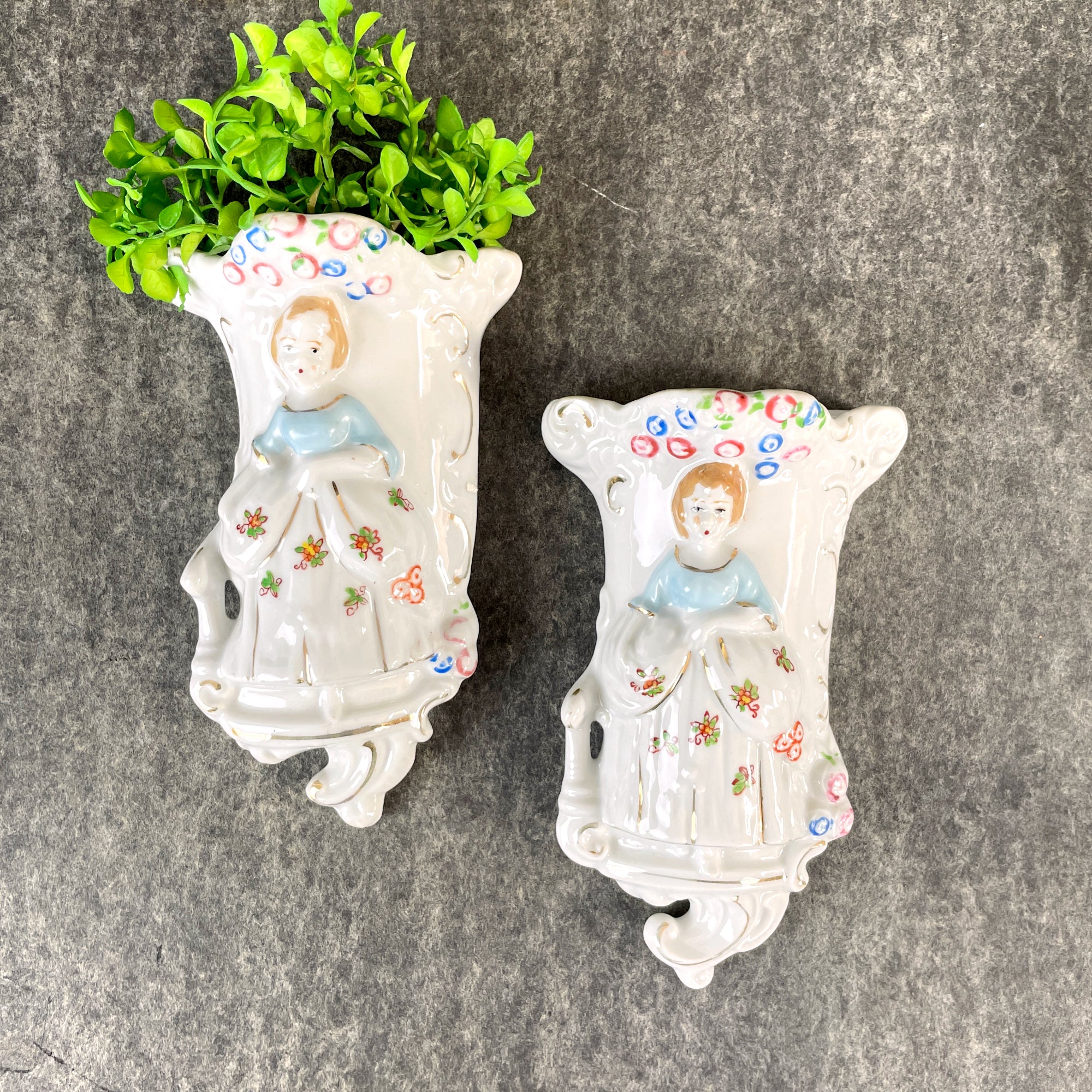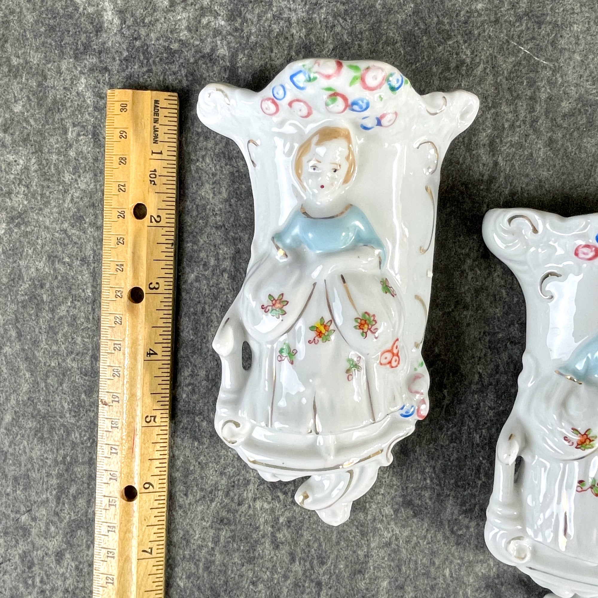 Matching crinoline lady wall pockets - 1950s vintage made in Japan