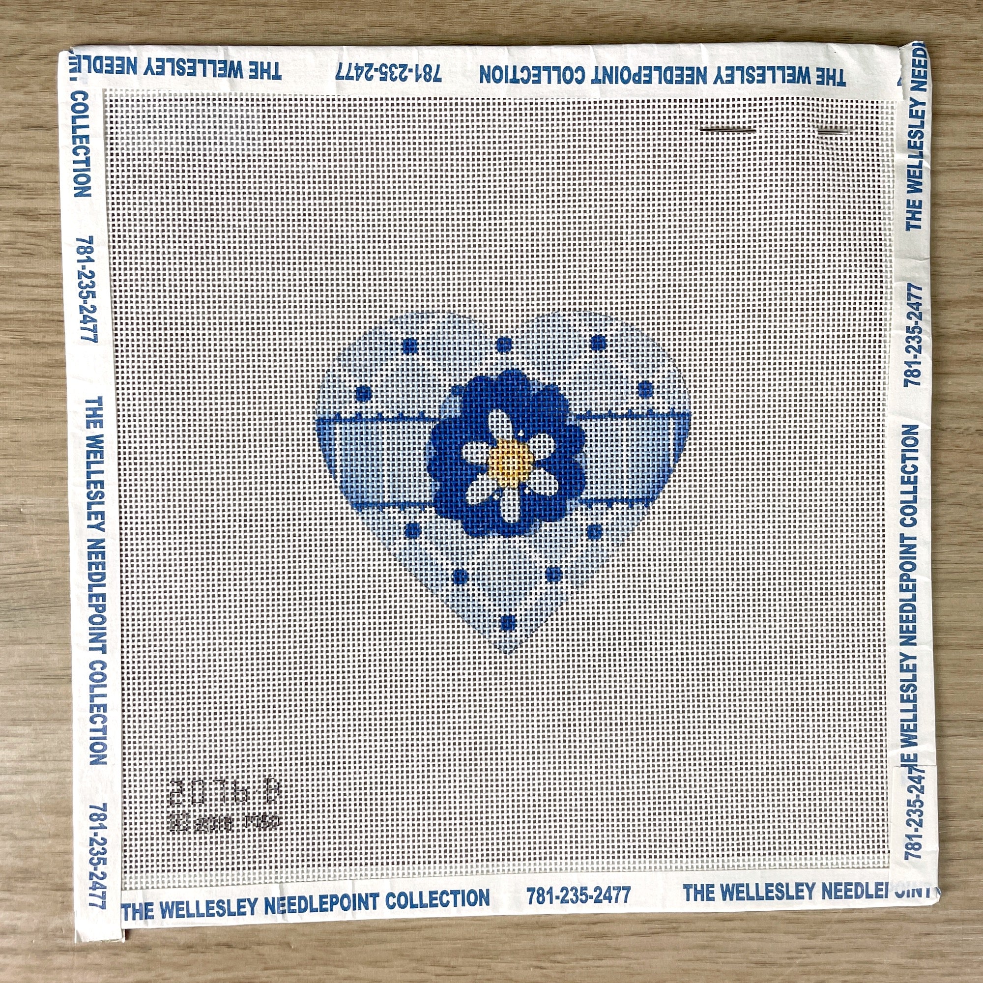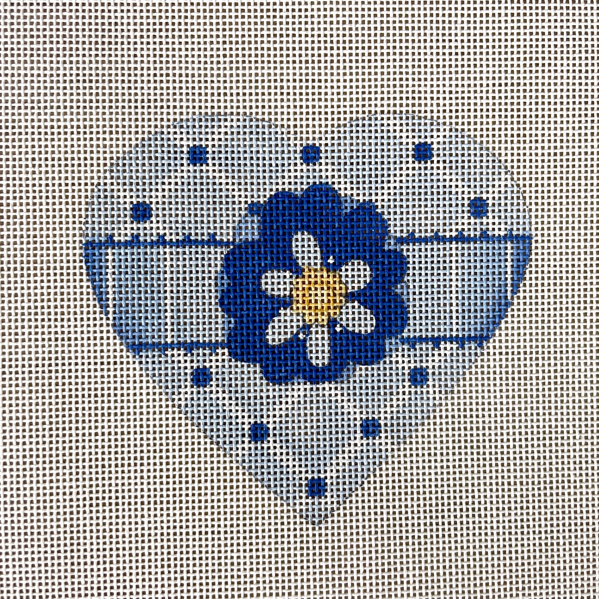 Blue floral heart needlepoint canvas, #2076B, by Melissa Shirley.