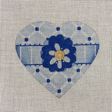 Melissa Shirley blue flower heart needlepoint canvas - 2076B