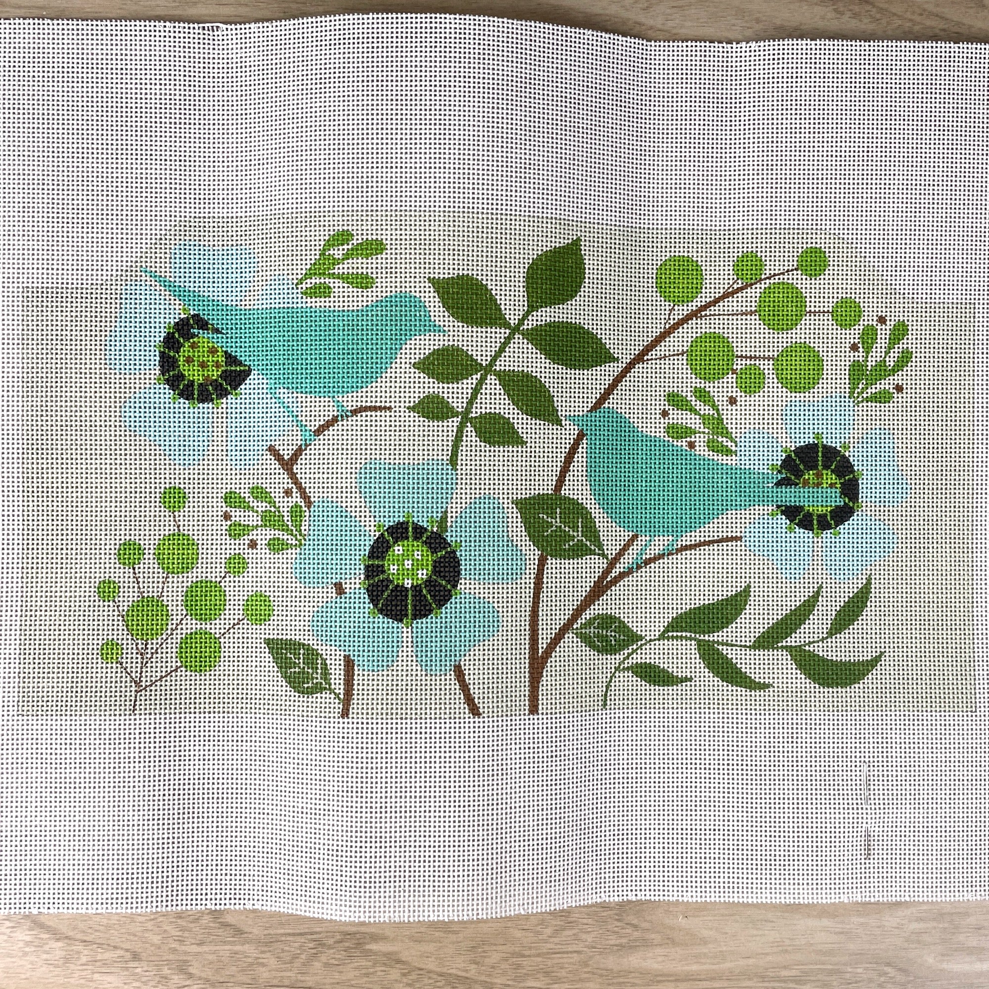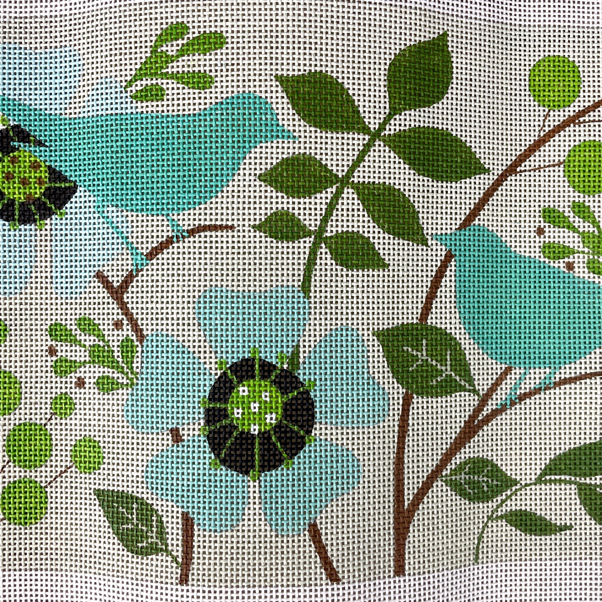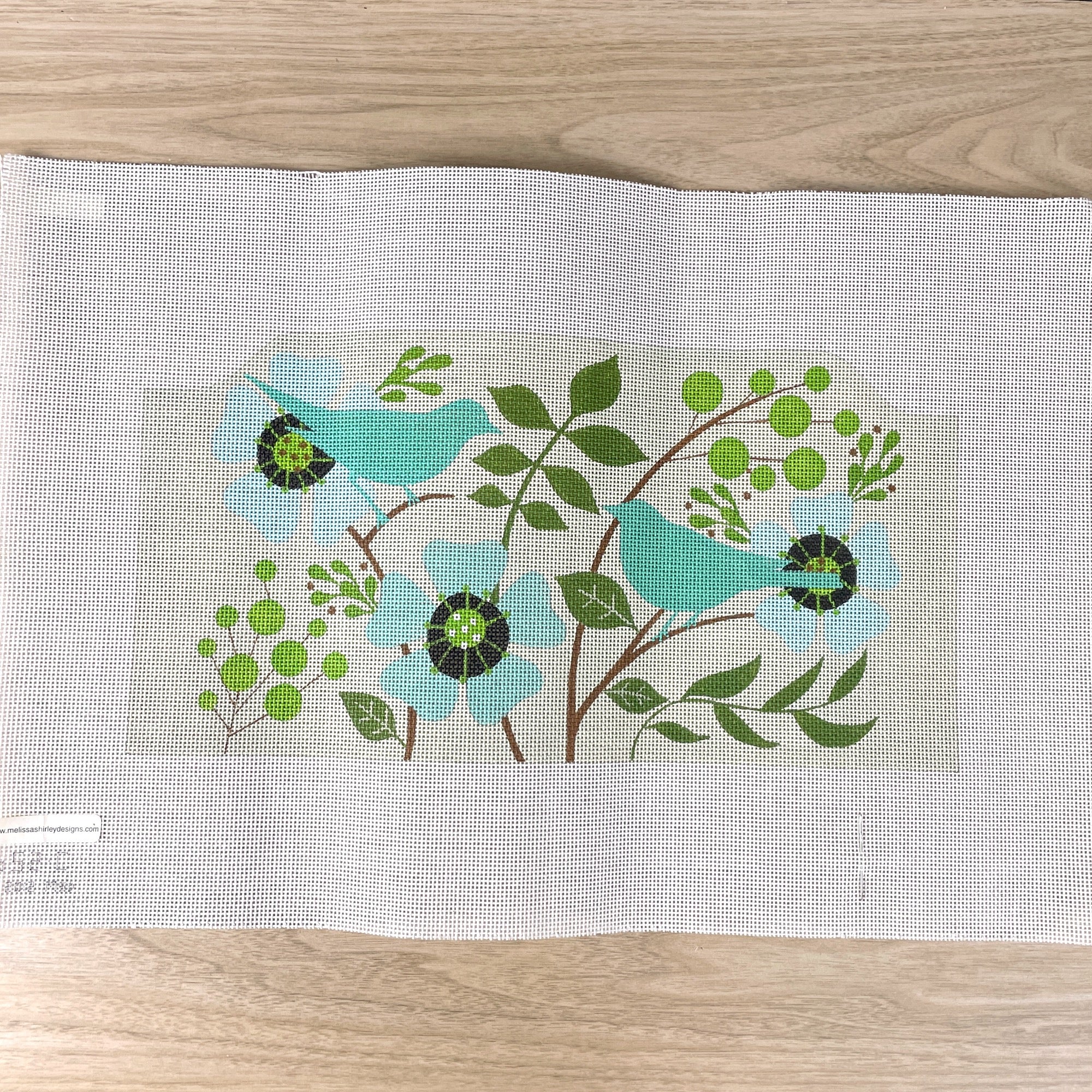 Teal Bird Garden Purse handpainted needlepoint canvas by Melissa Shirley, #1652C. Retail $265.