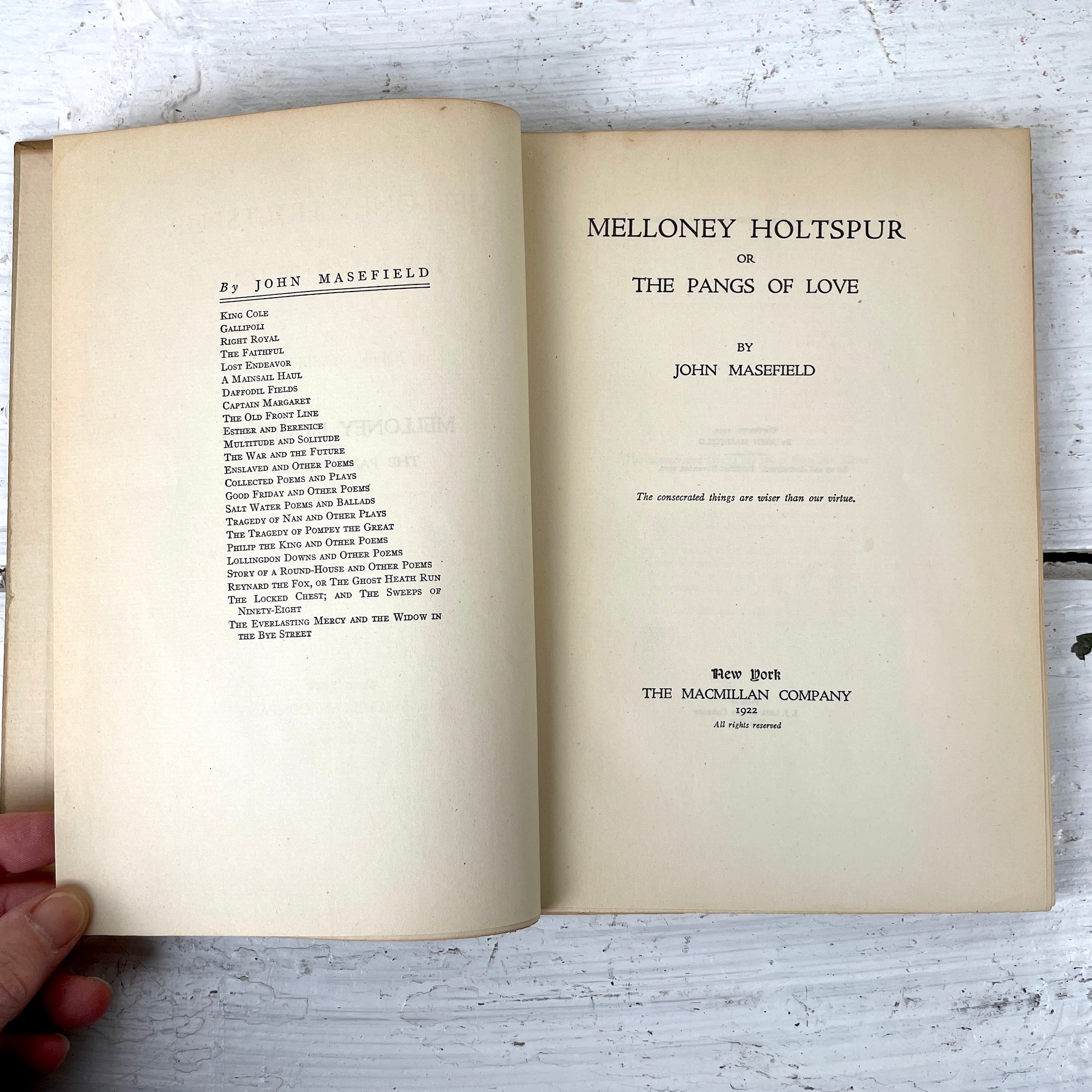 "Melloney Holtspur or The Pangs of Love" by John Masefield. 1922 hardcover. The Macmillan Company.