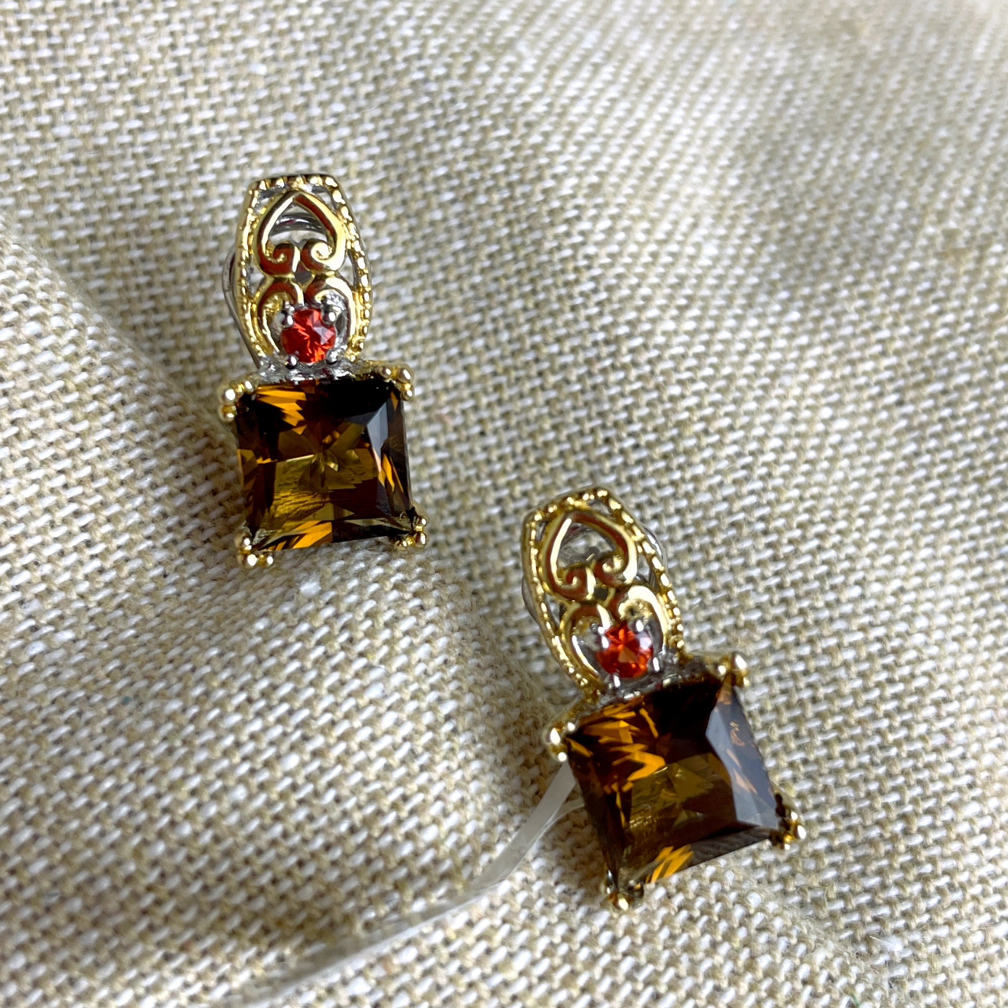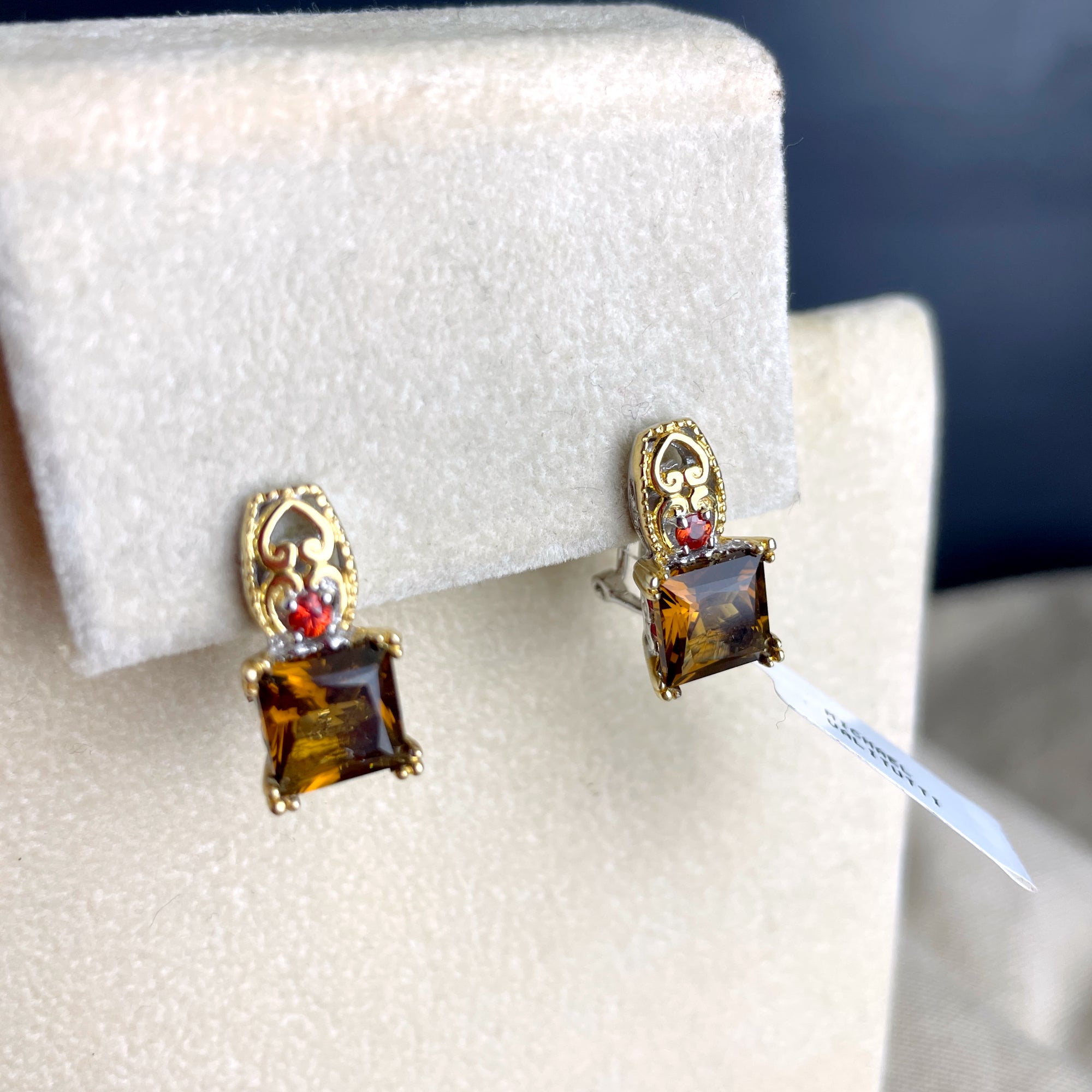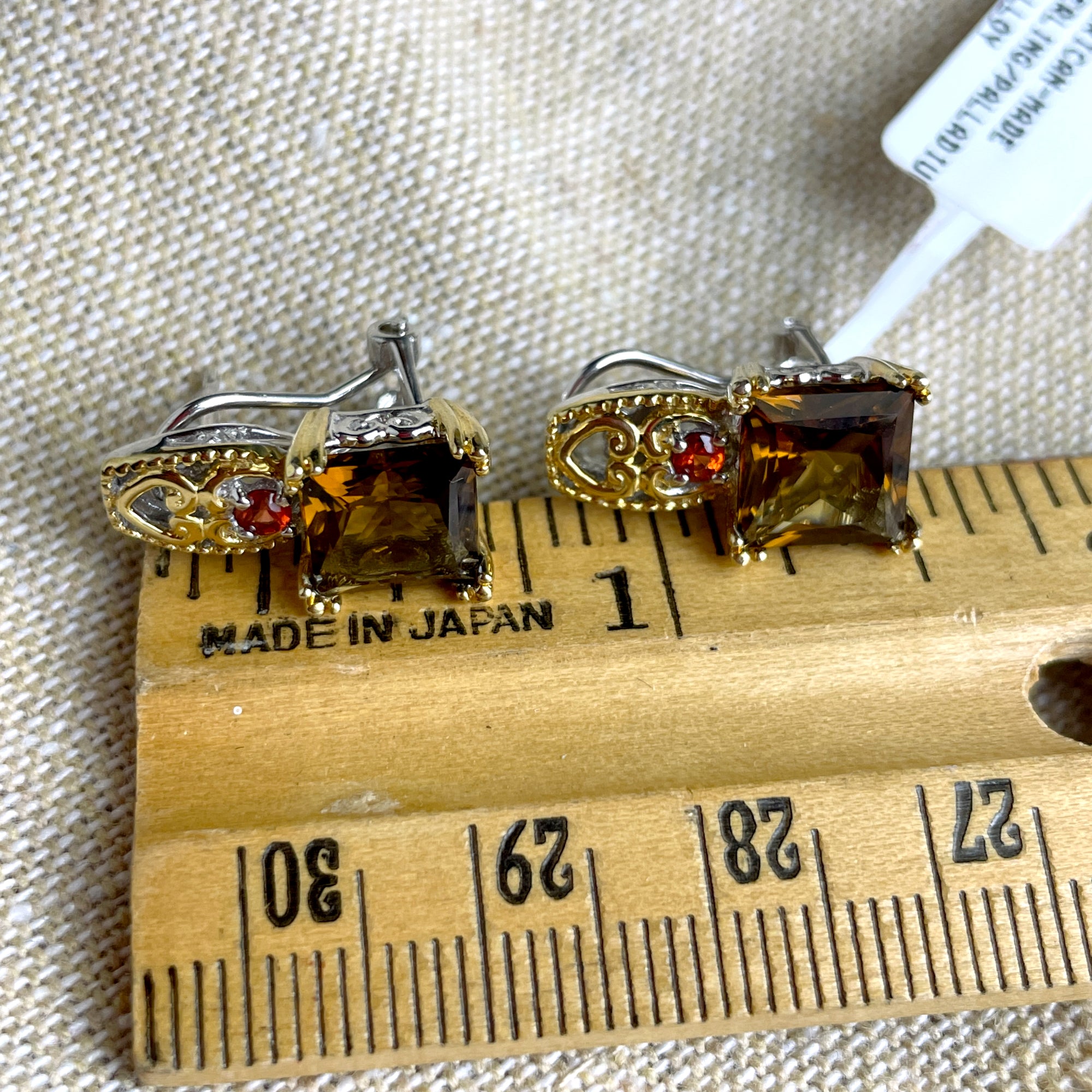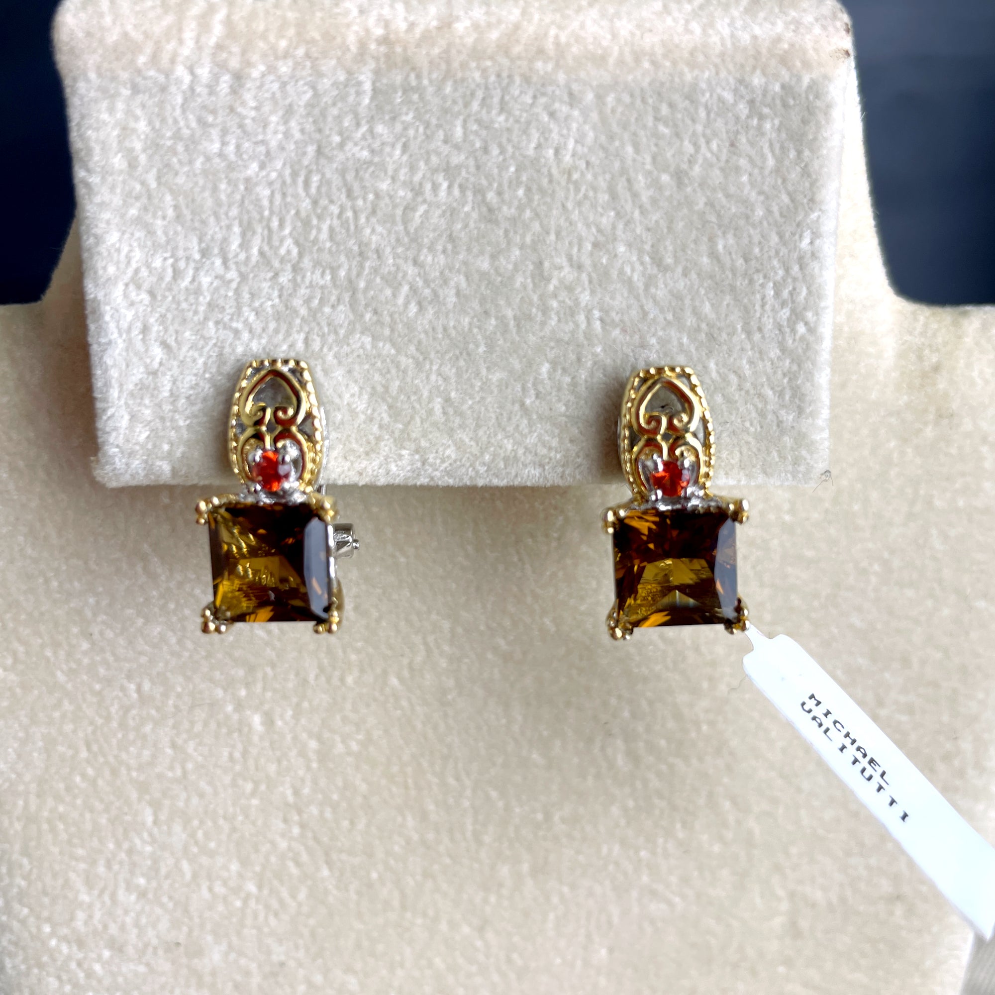 Michael Valitutti post pierced earrings with a prong set square citrine and smaller accent gemstones, one in the shape of a heart. New with tag. Made in US.