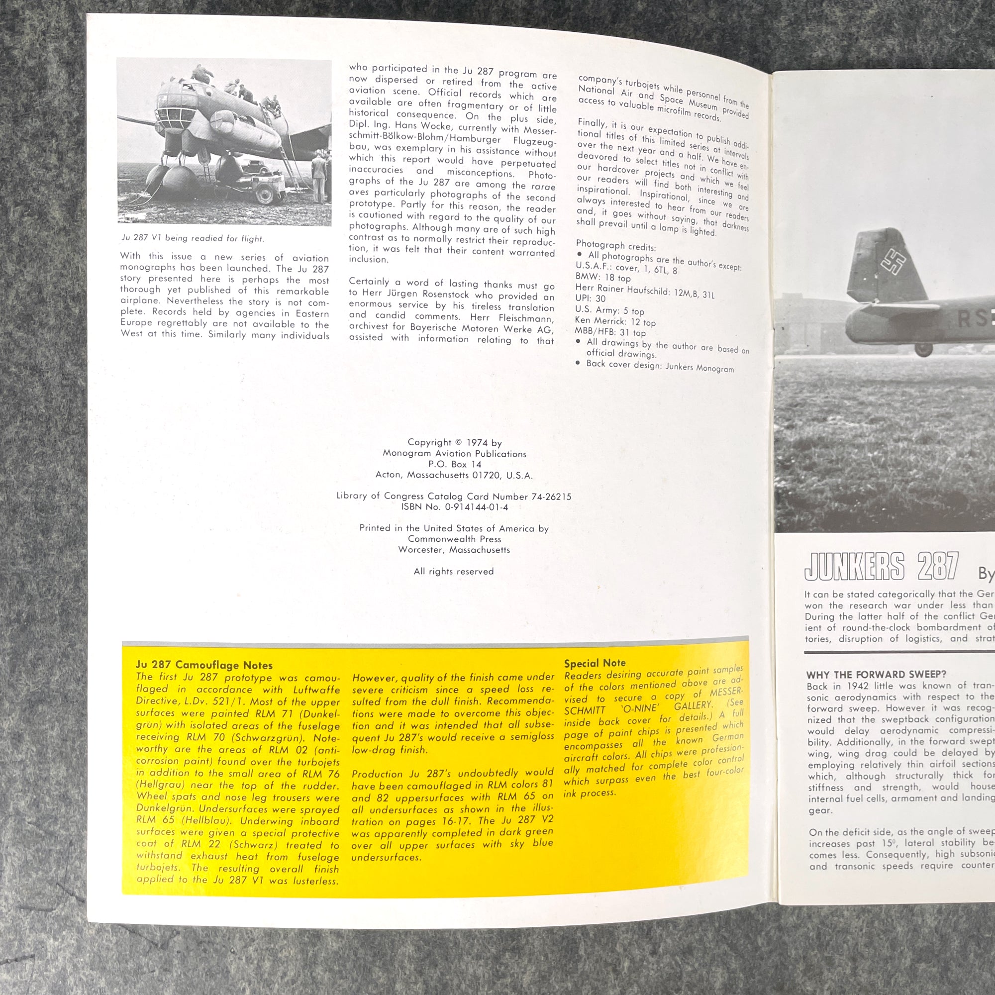 Monogram Close-up 1 Junkers 287 - 1974 airplane history