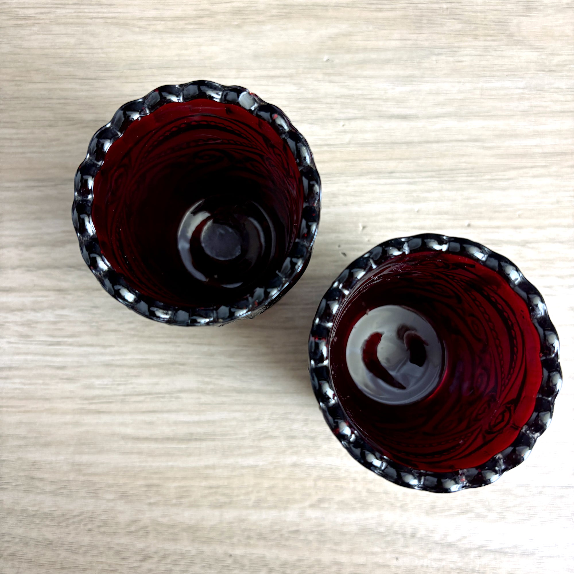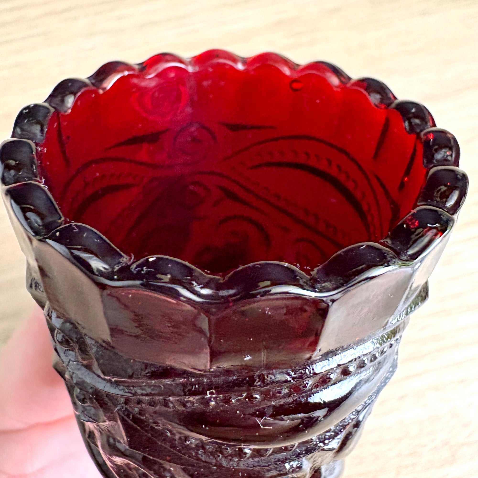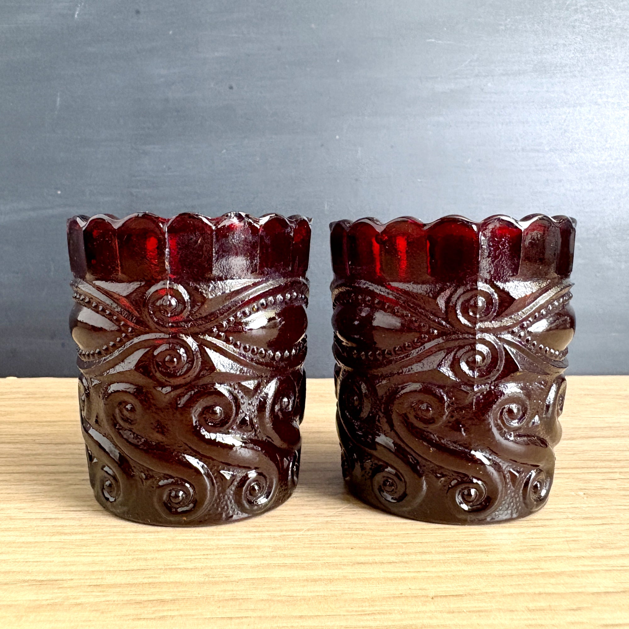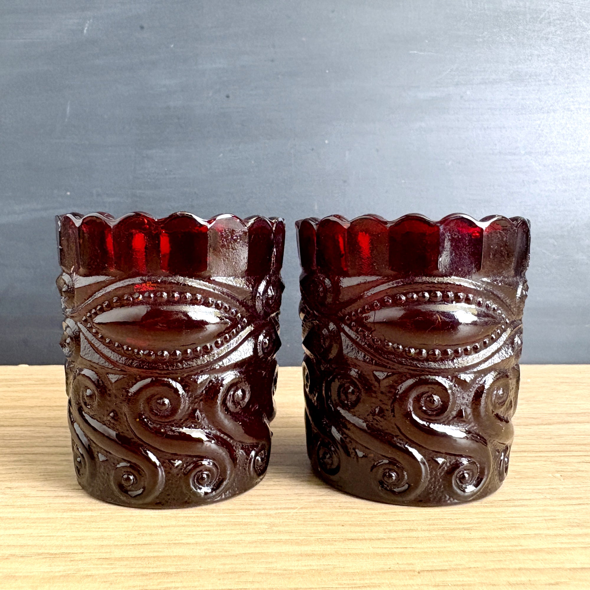 Mosser ruby red Eyewinker toothpick holders - set of 2 - vintage pressed glass