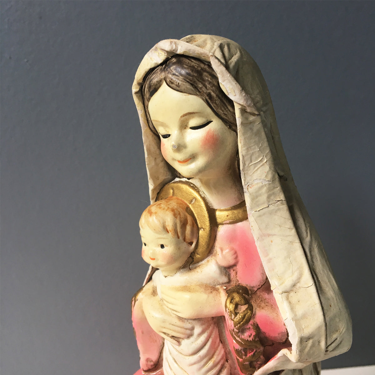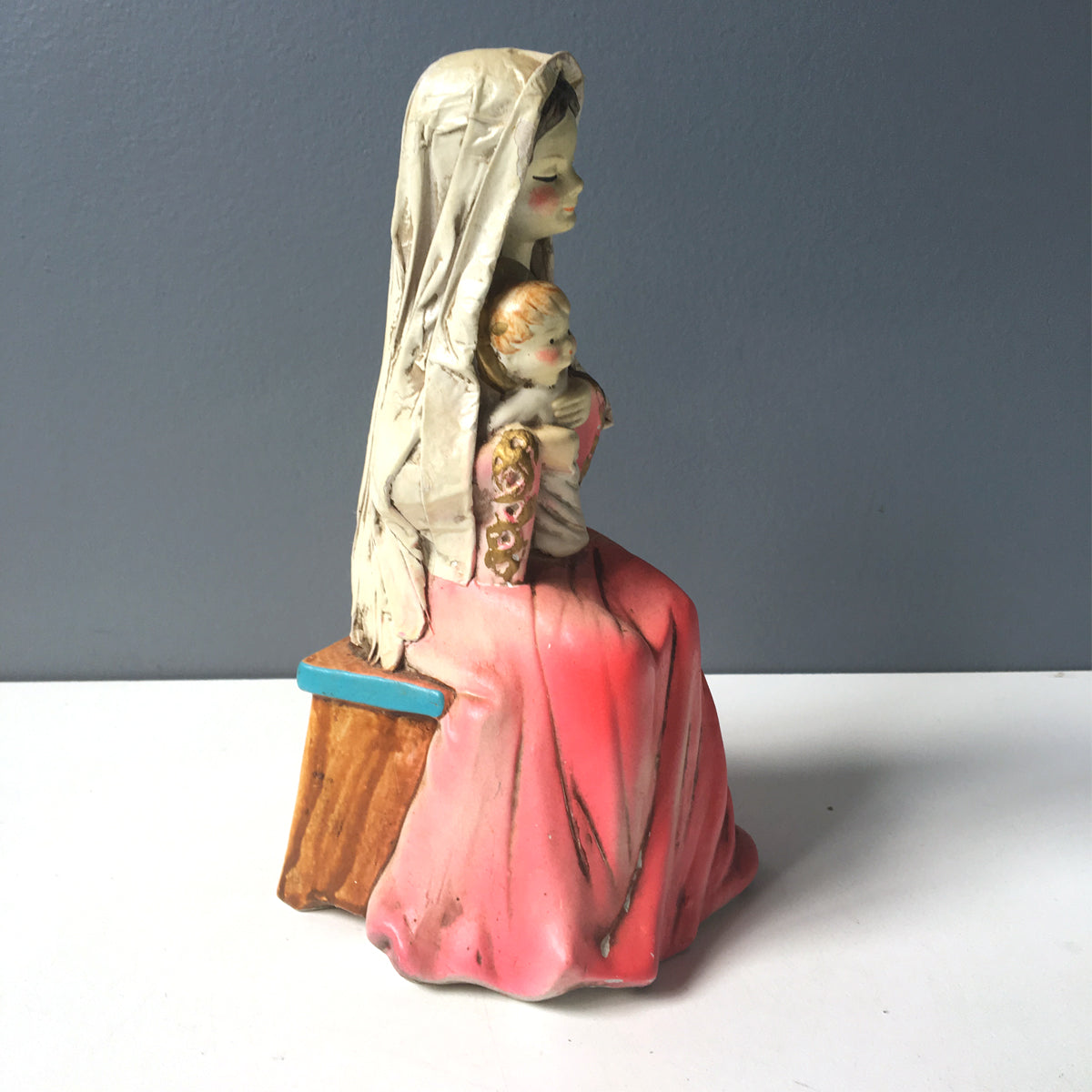 Mother Mary and Baby Jesus paper mache figurine - 1960s vintage